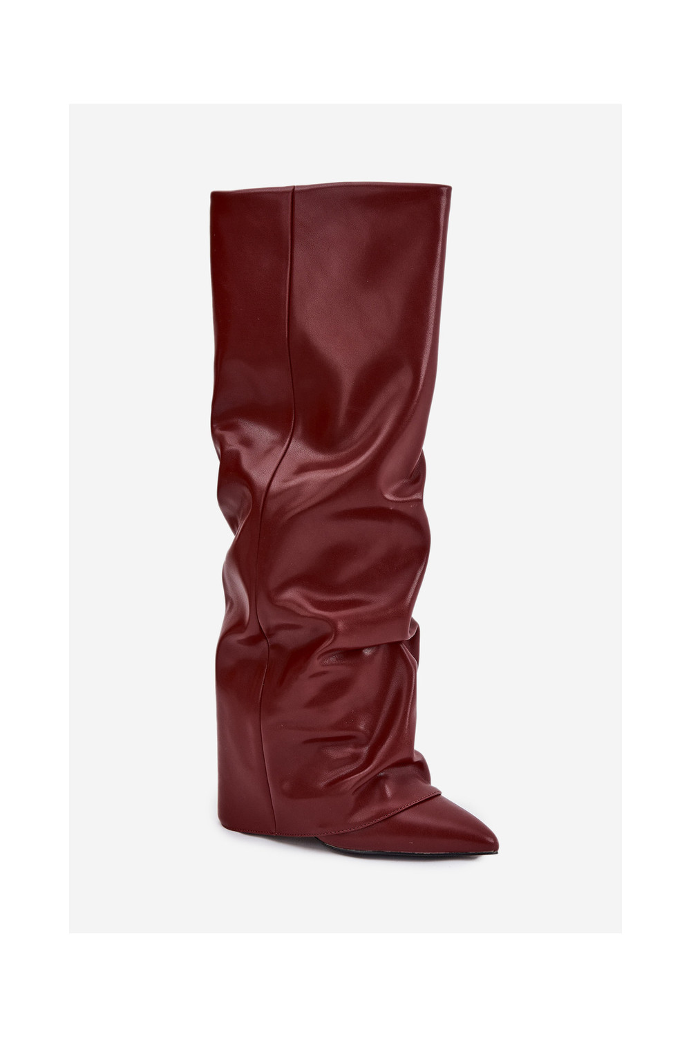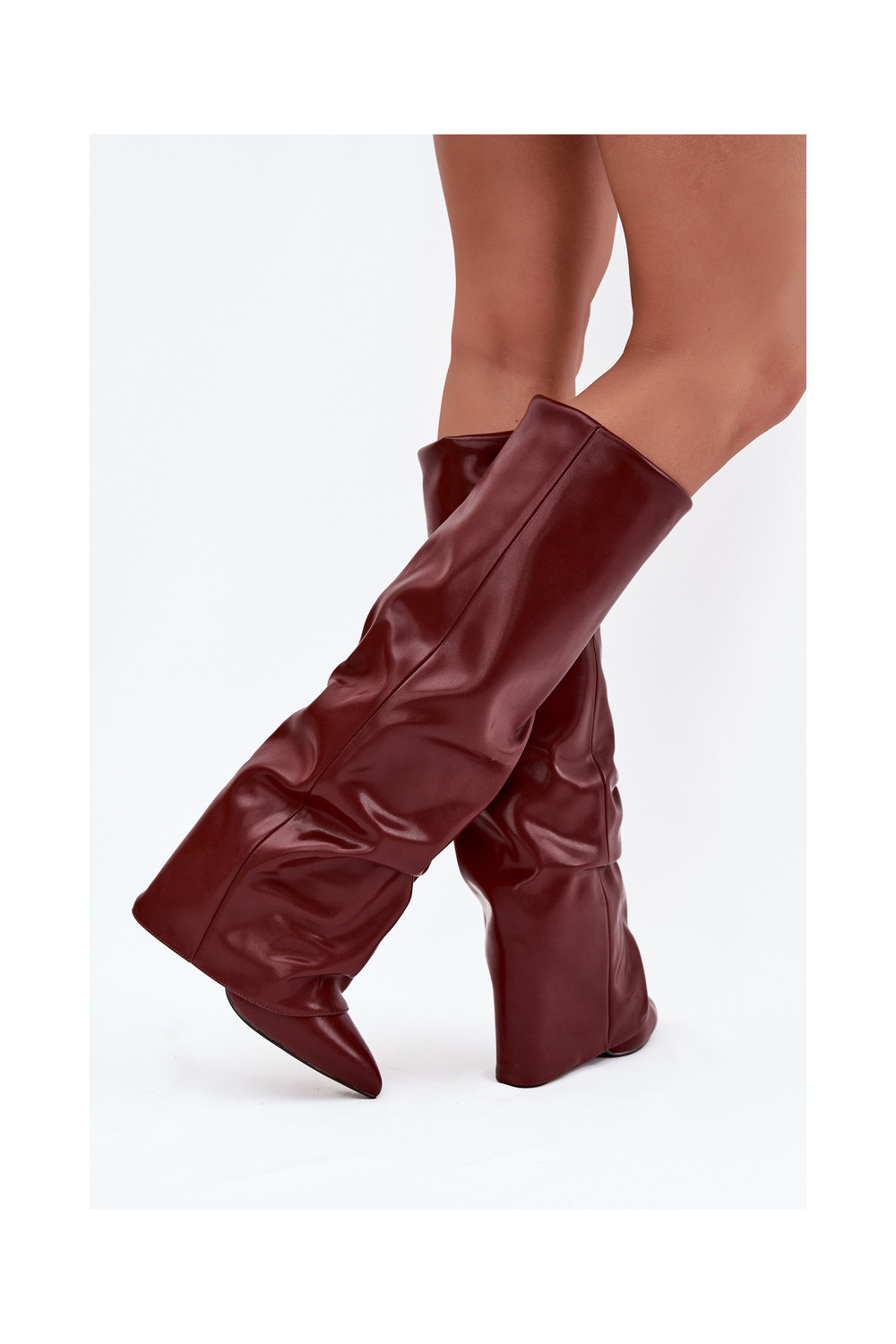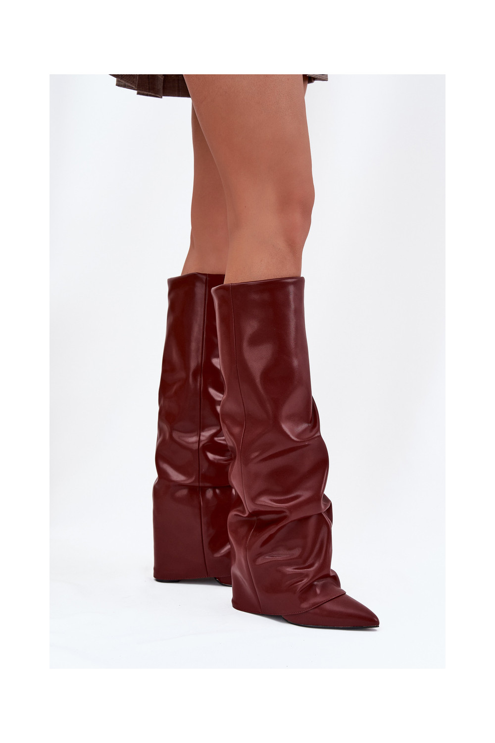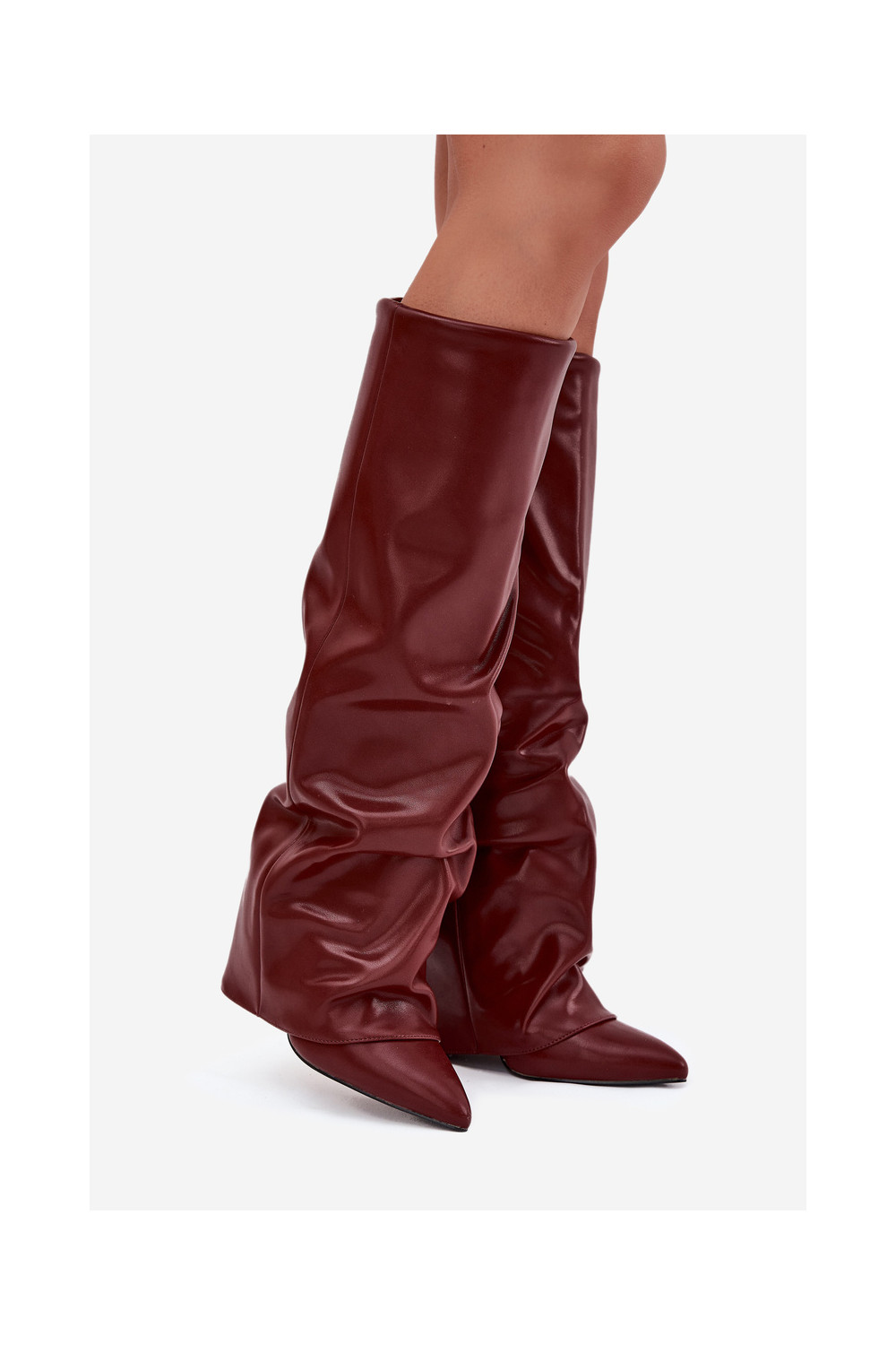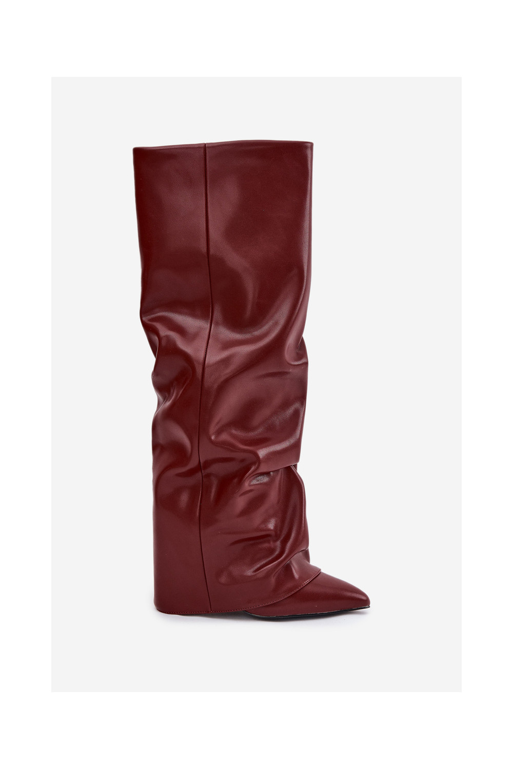 Siltināti sieviešu garie zābaki ar iešūtu šņori un papēžiem, bordo krāsā, Elivira