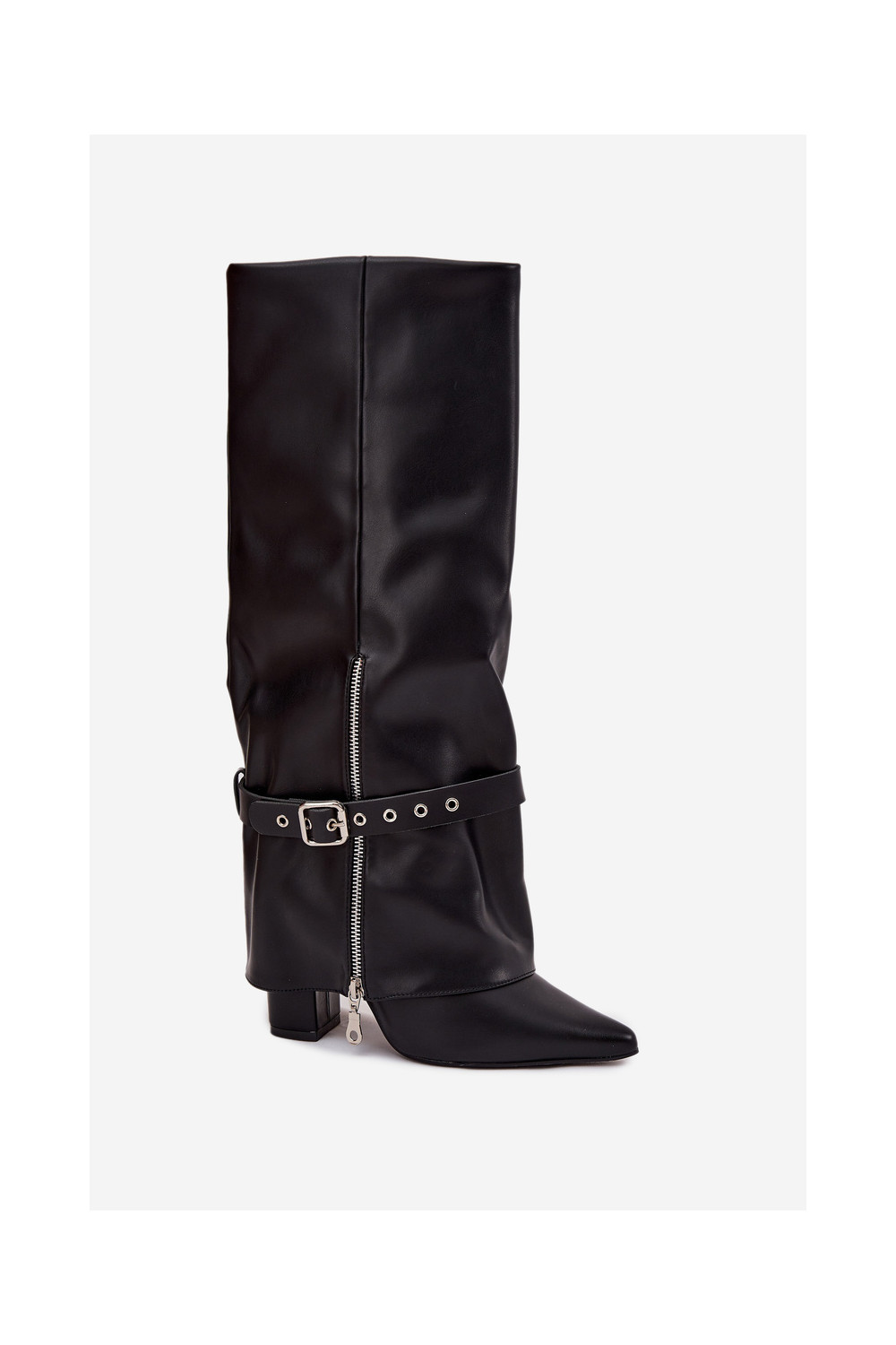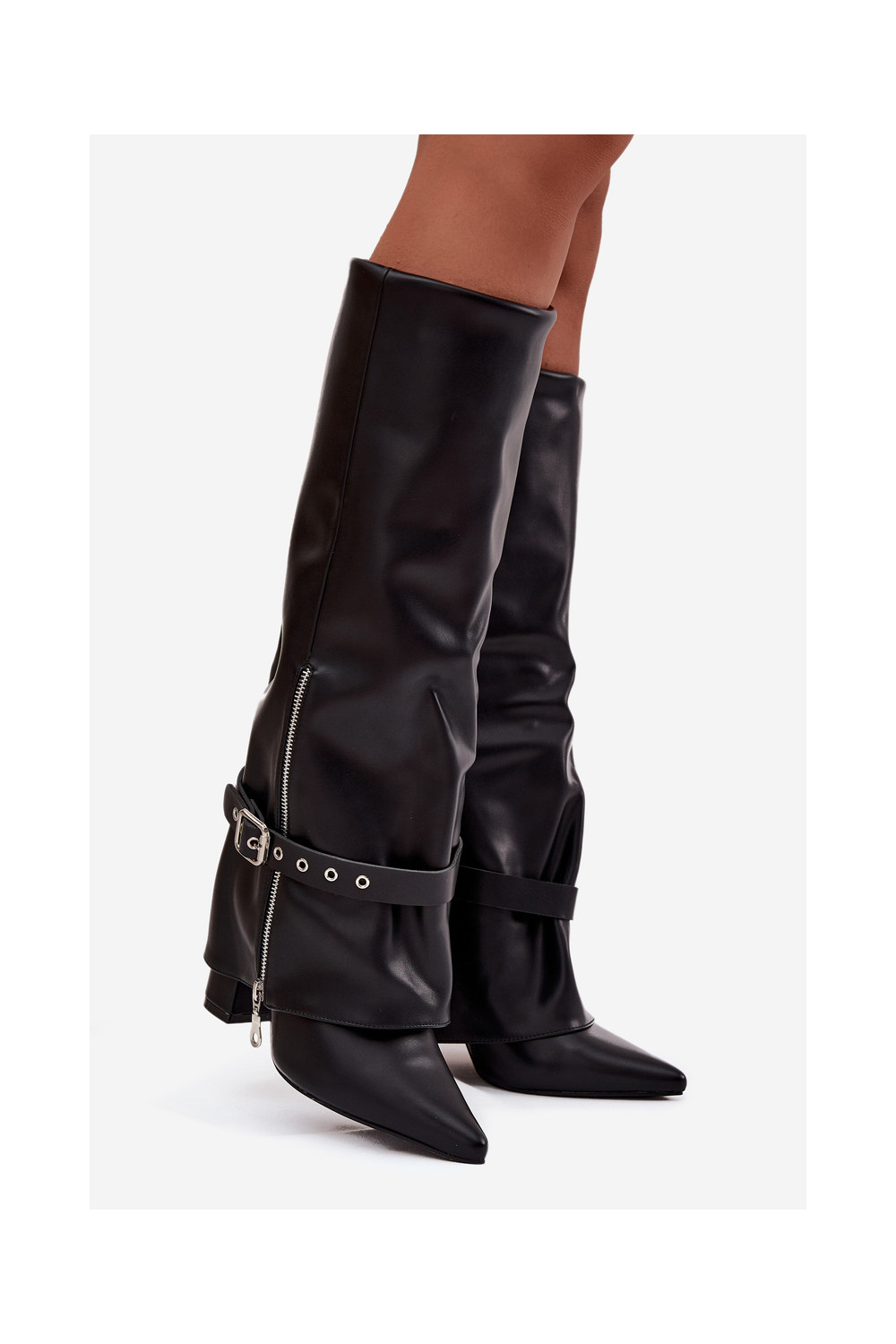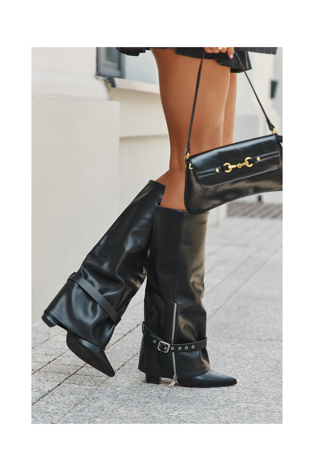 Sieviešu garie zābaki iekāpjamā modeļa ar papēžiem, ar dekorētiem papēžiem no eko ādas melnā krāsā Jolivine