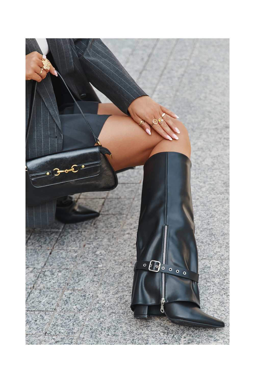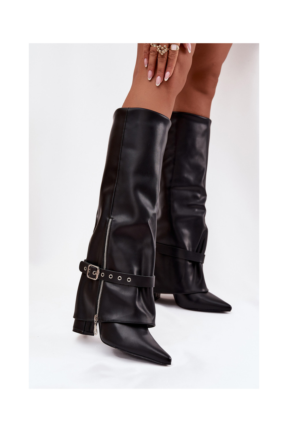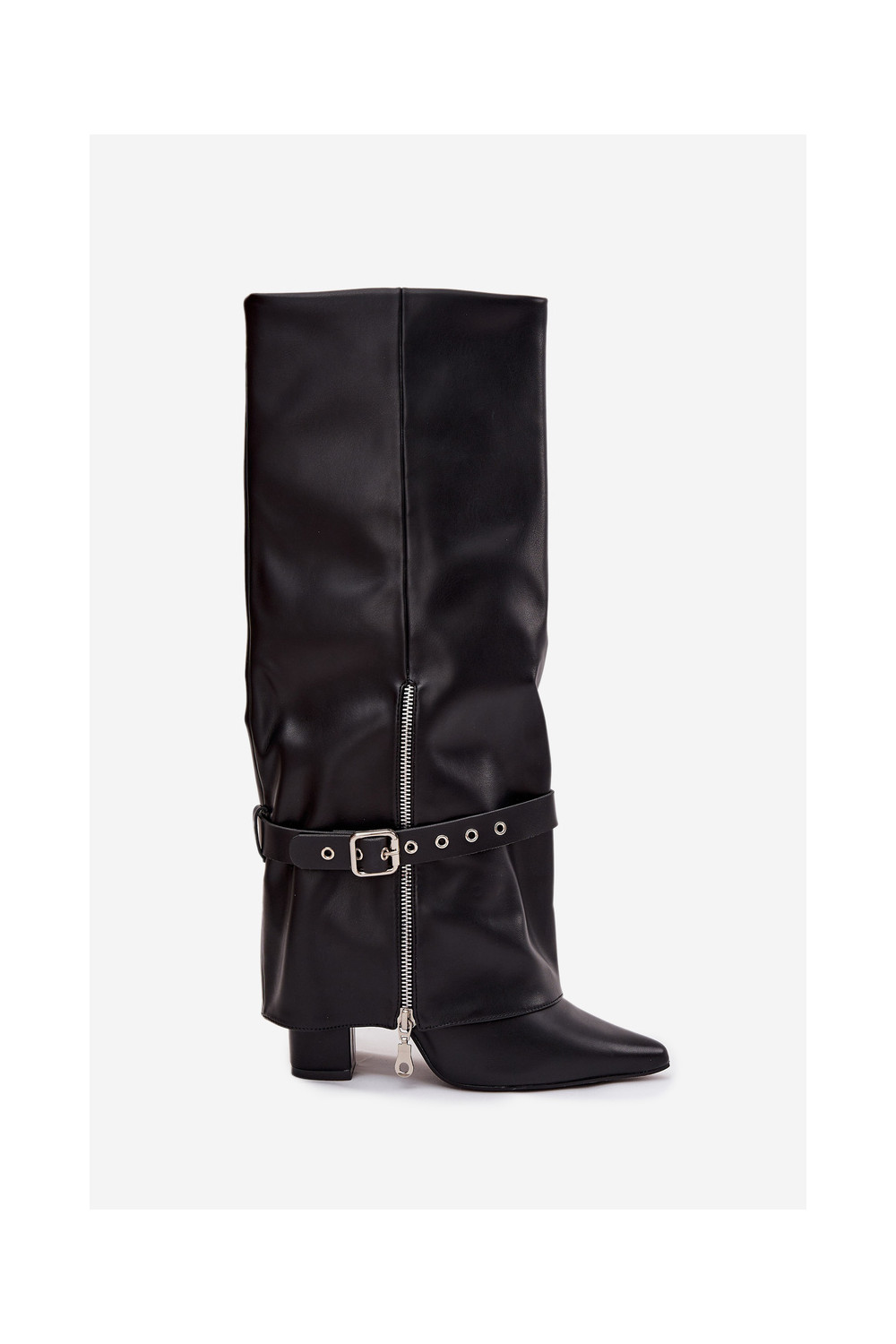 Sieviešu garie zābaki iekāpjamā modeļa ar papēžiem, ar dekorētiem papēžiem no eko ādas melnā krāsā Jolivine