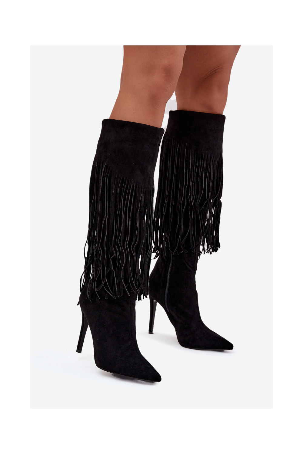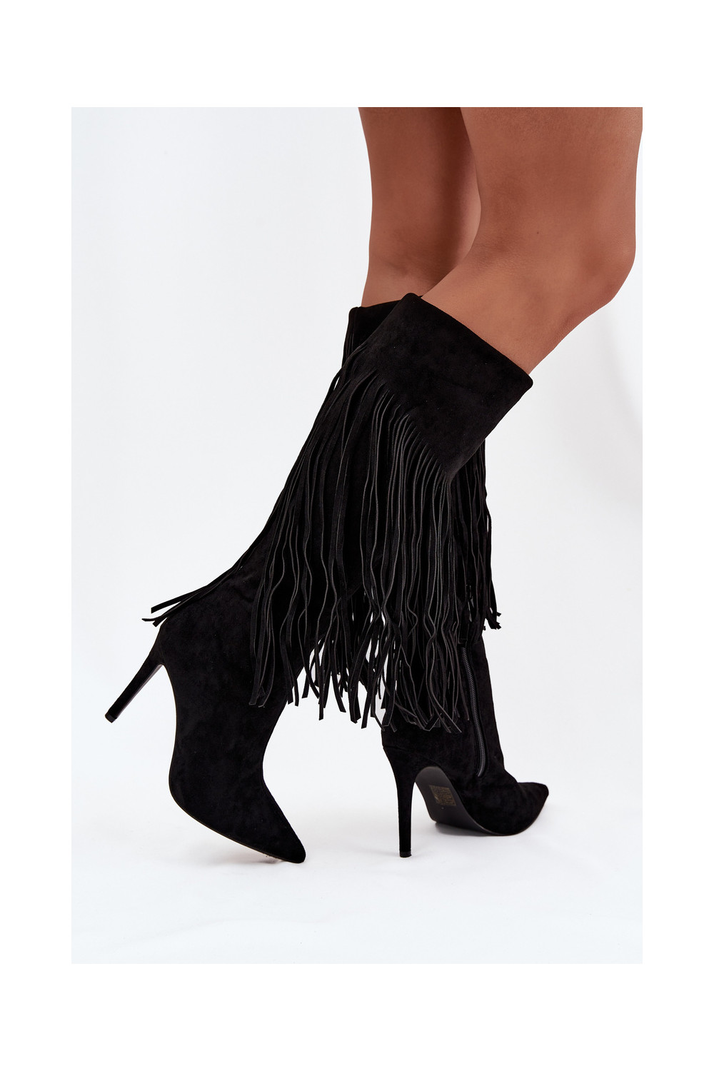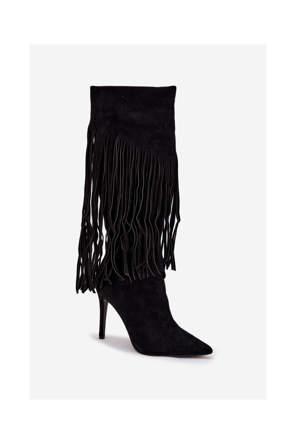 Melna krāsas sieviešu garie zābaki ar plāniem papēžiem un kutu Isalune