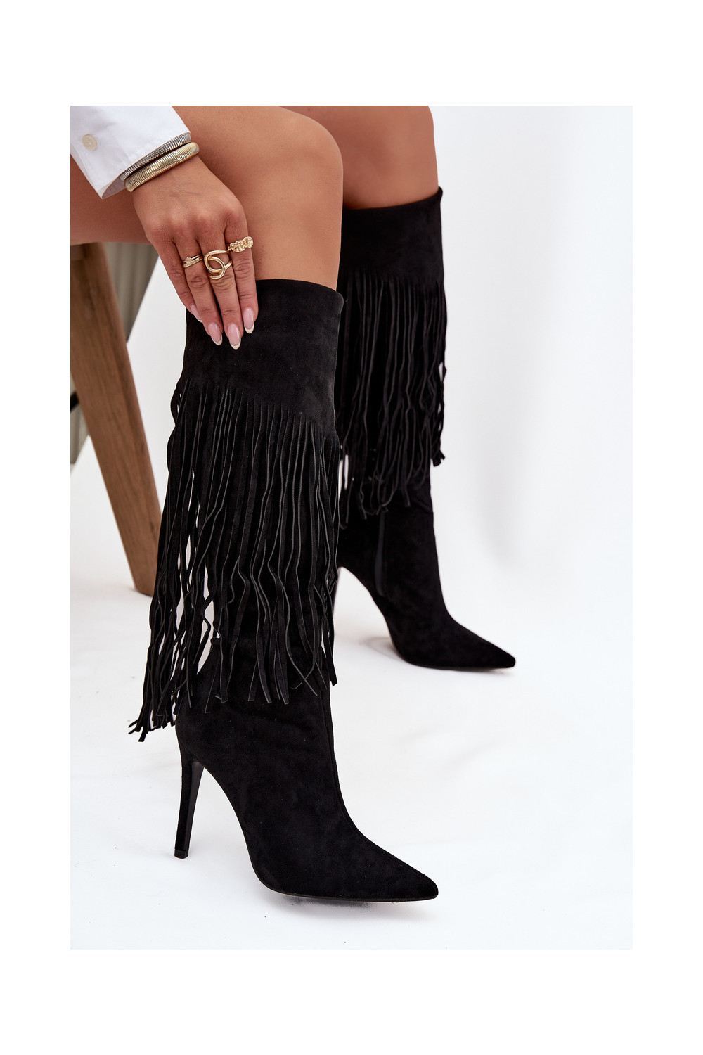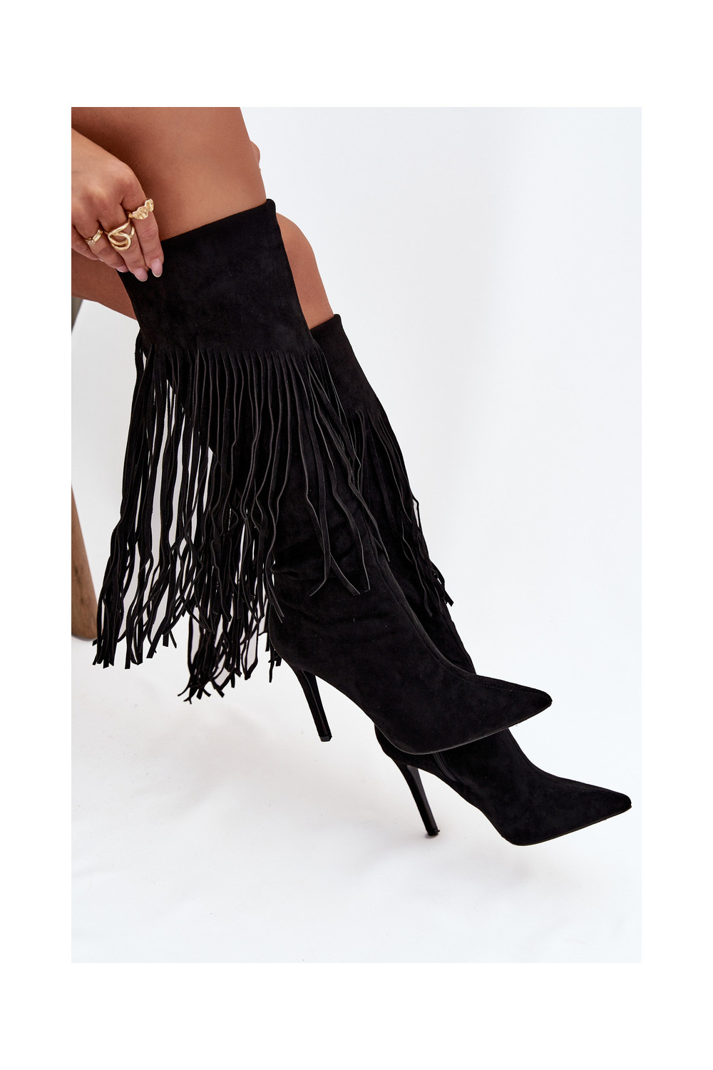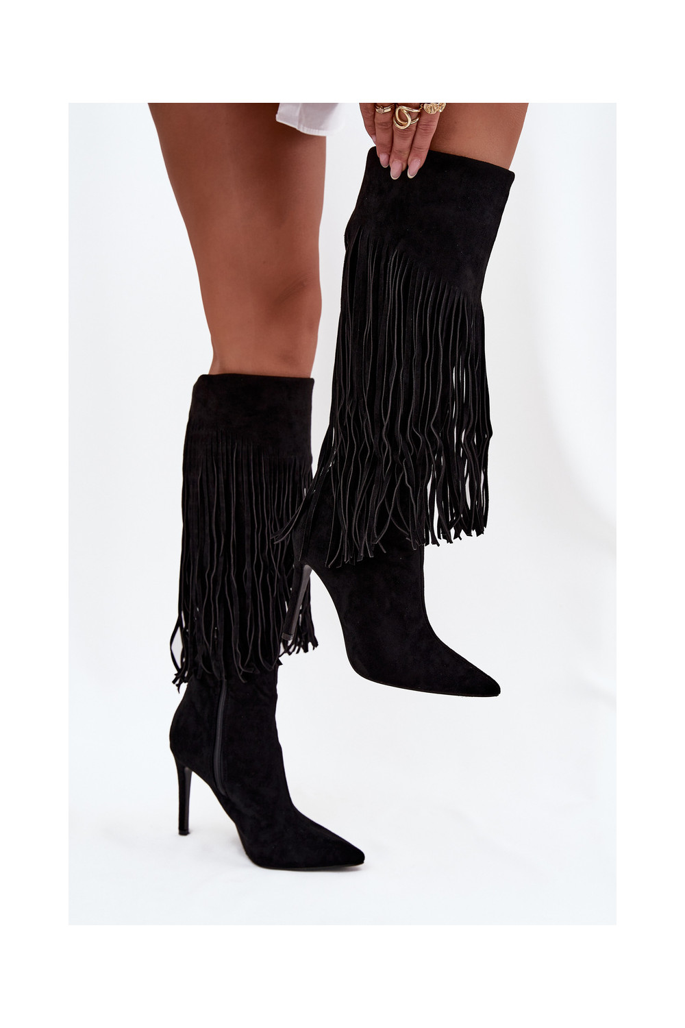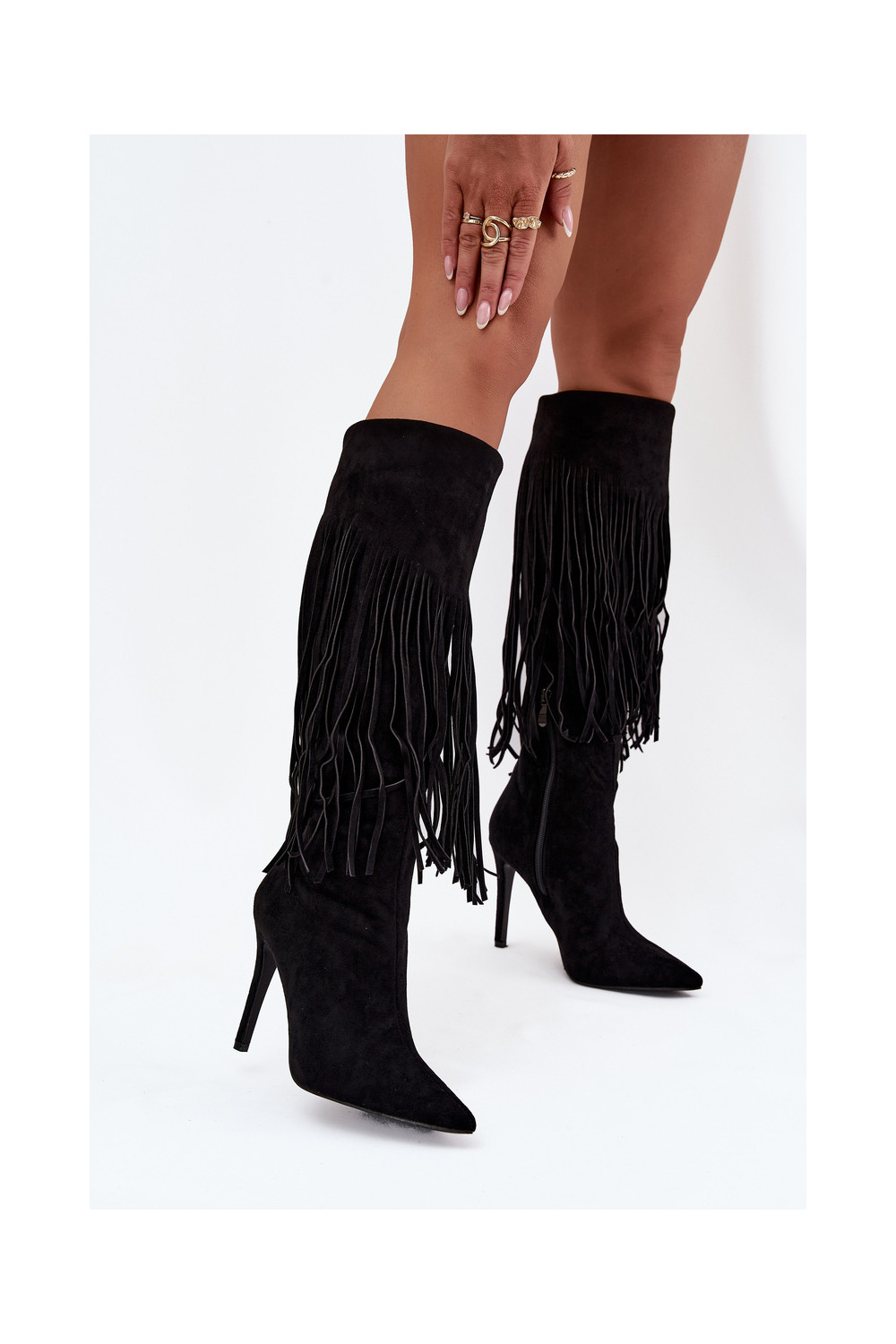 Melna krāsas sieviešu garie zābaki ar plāniem papēžiem un kutu Isalune