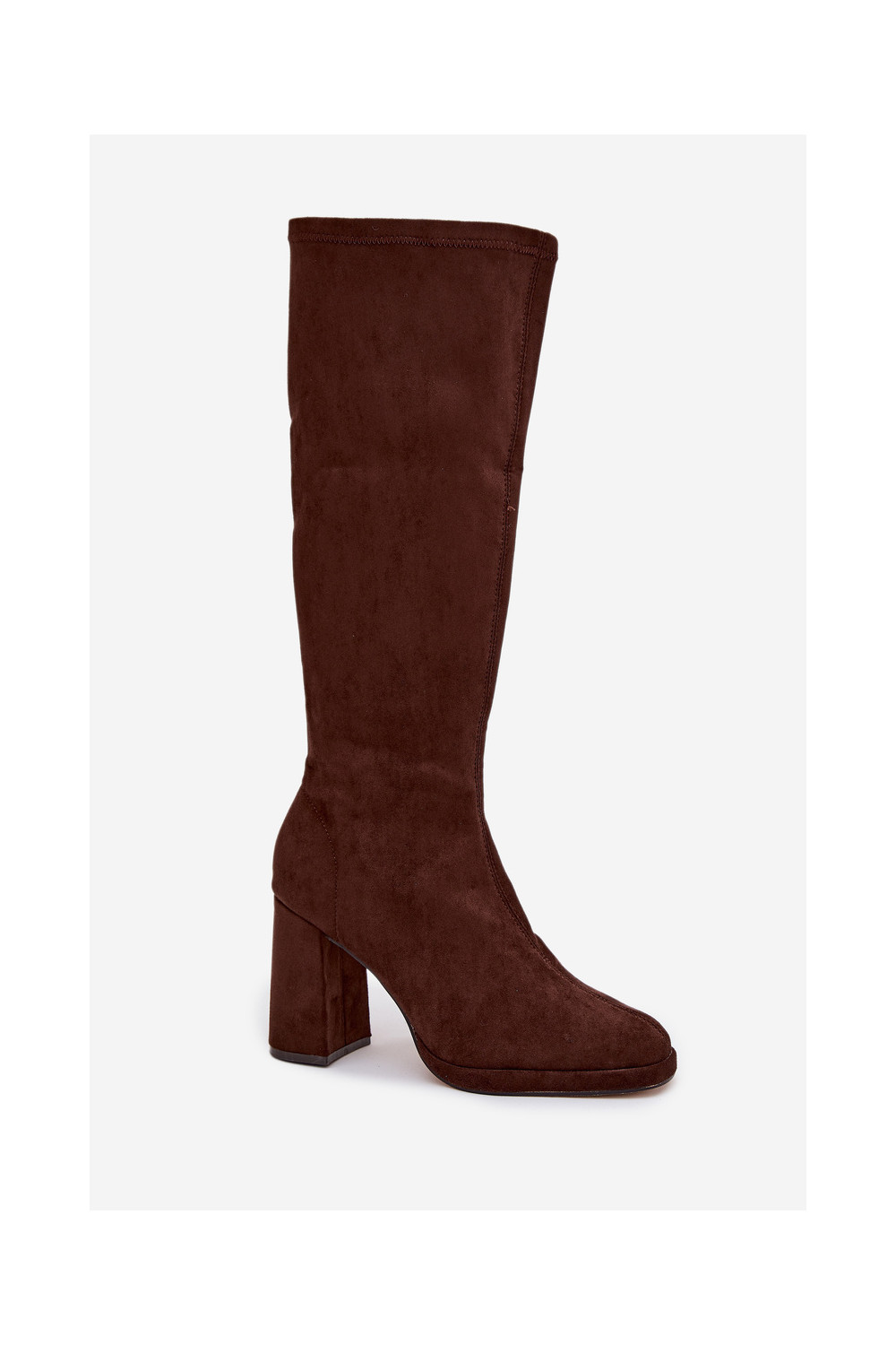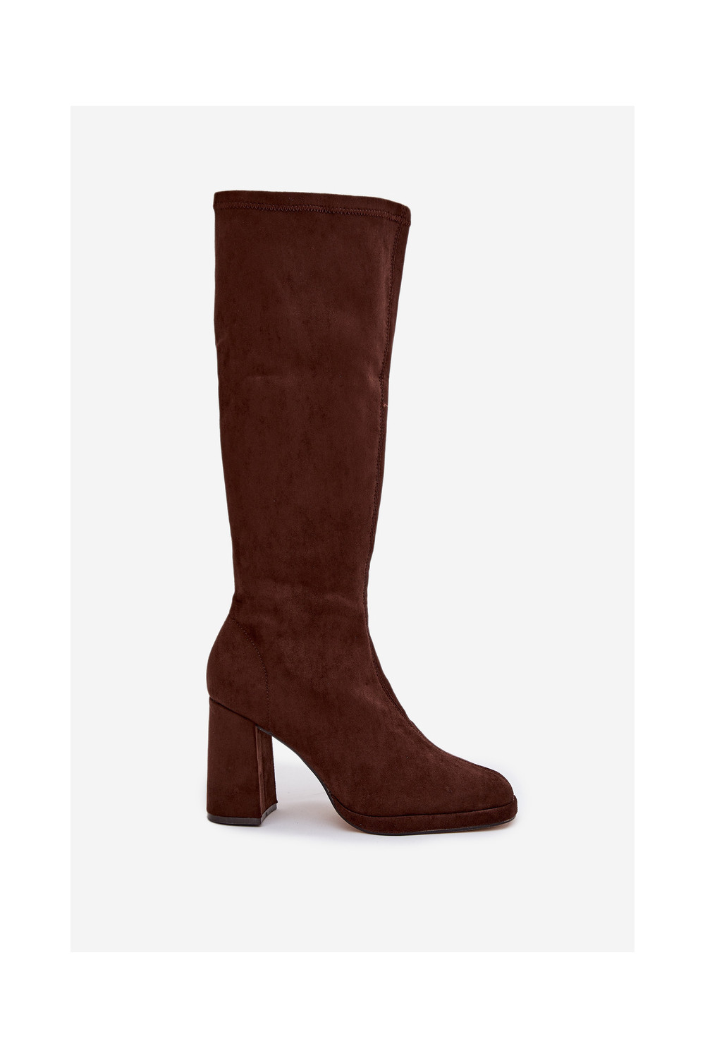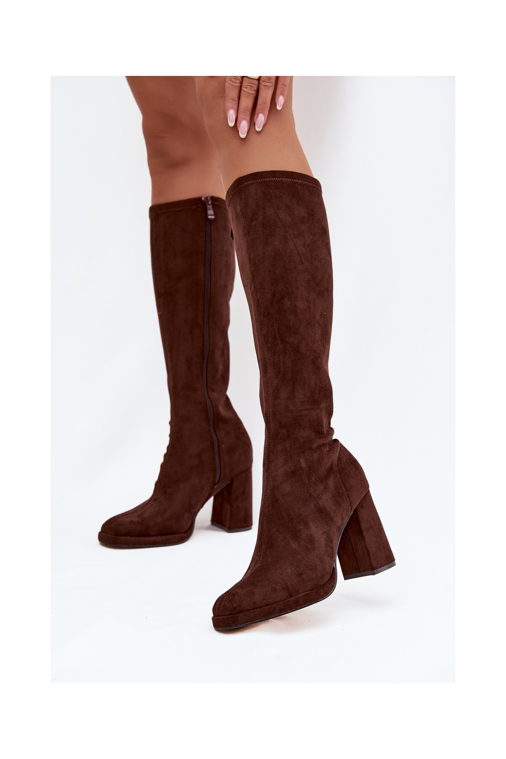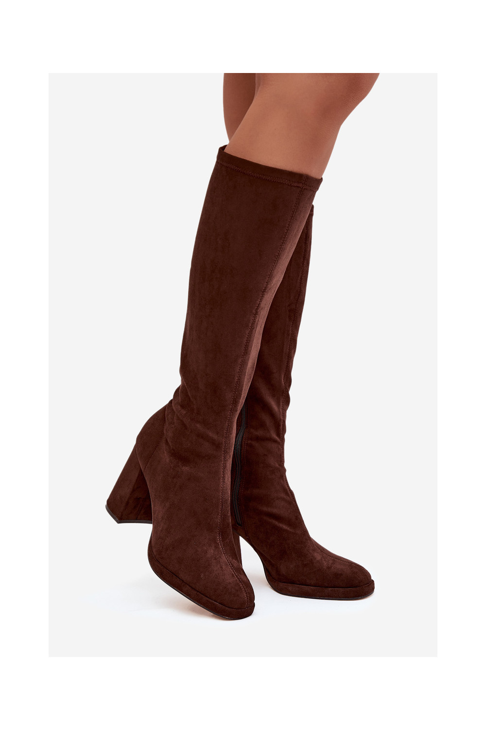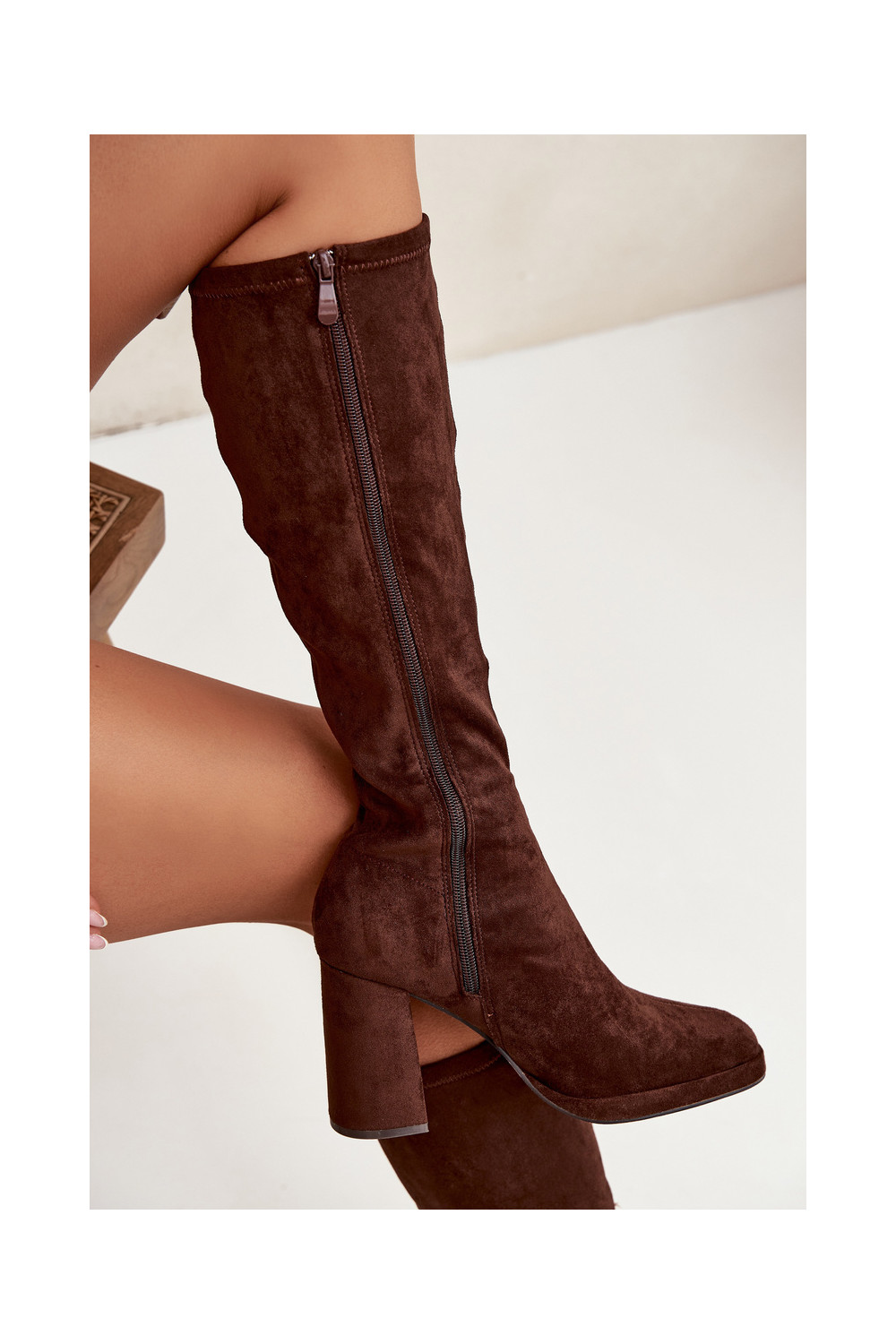 Sieviešu garie zābaki ar šuvēm uz stabiņa papēža brūnā krāsā "Brivana"