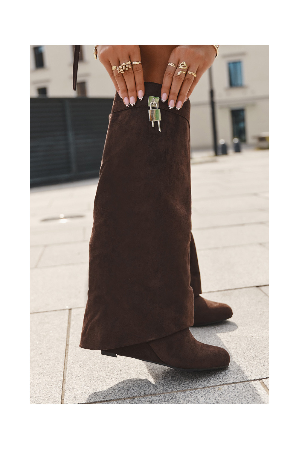 Garie zābaki ar platformu, siksniņām un sudraba detaļām šokolādes krāsā Korivelle