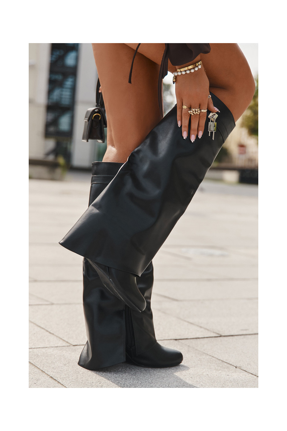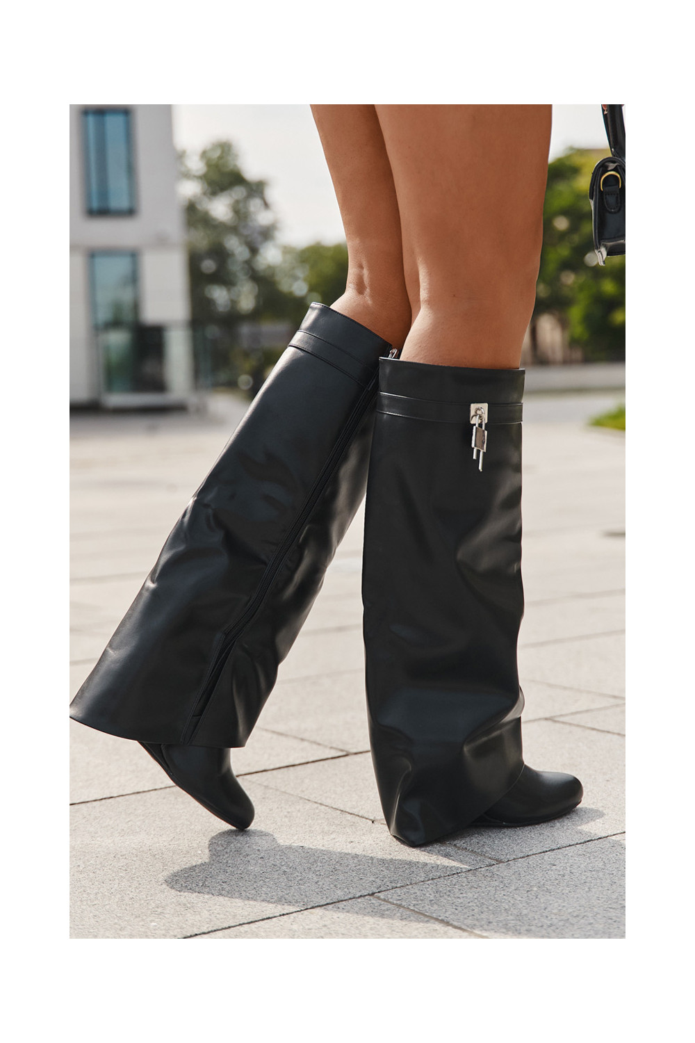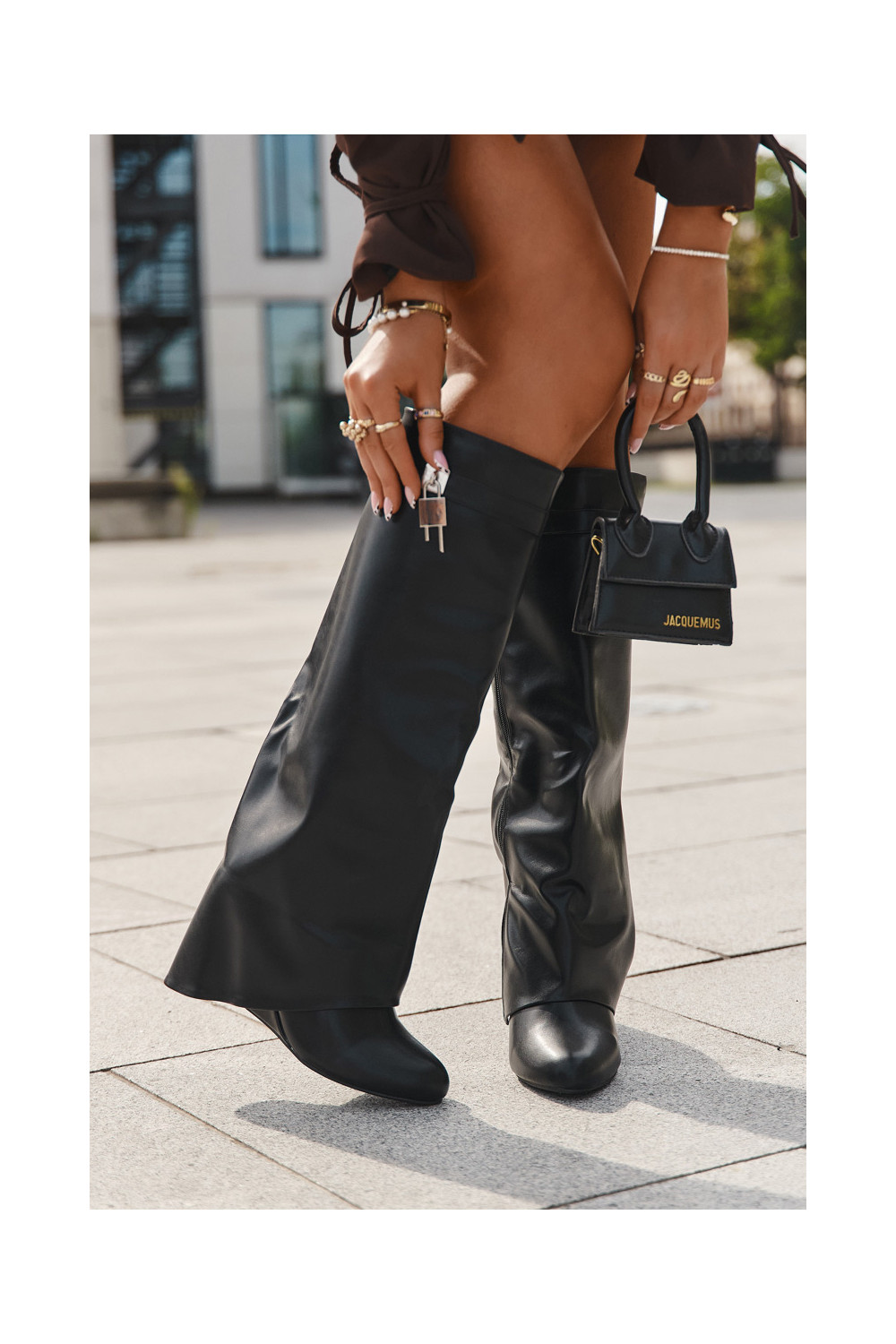 Garie zābaki ar platformu, siksniņām un sudraba detaļām mākslīgajā ādā melnā krāsā Korivelle