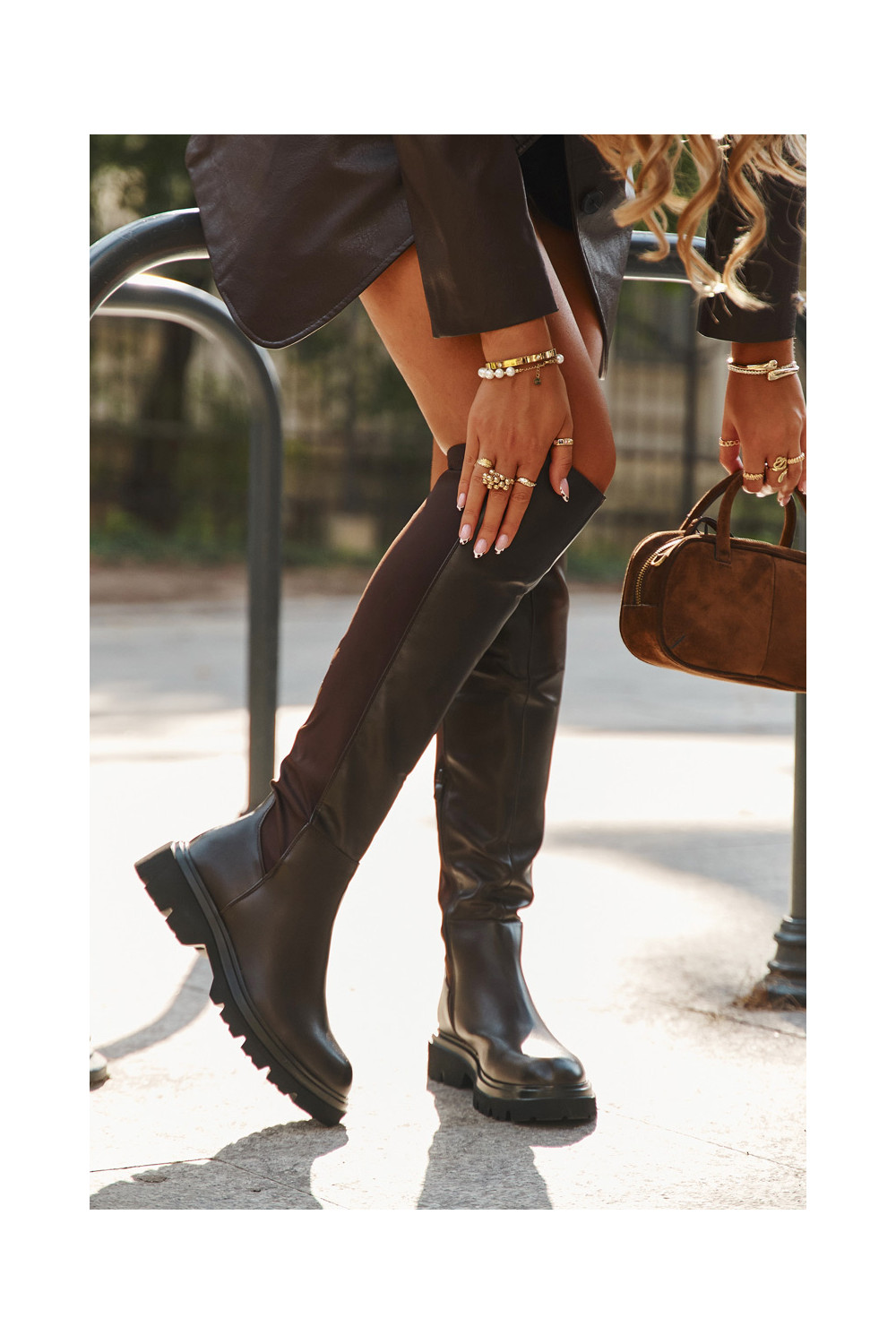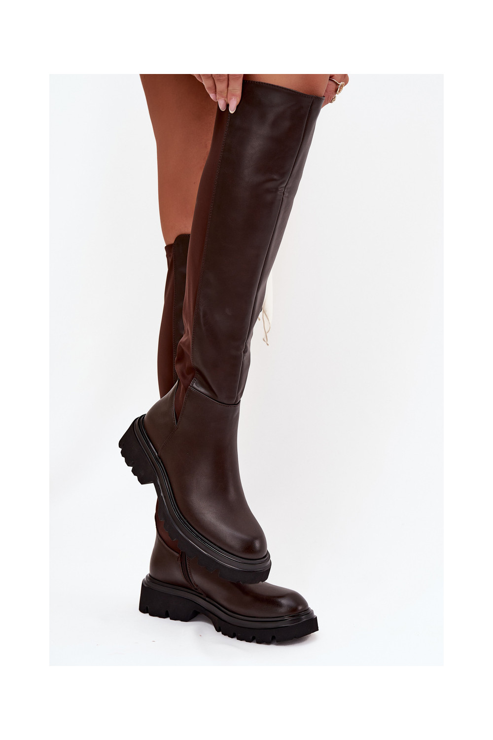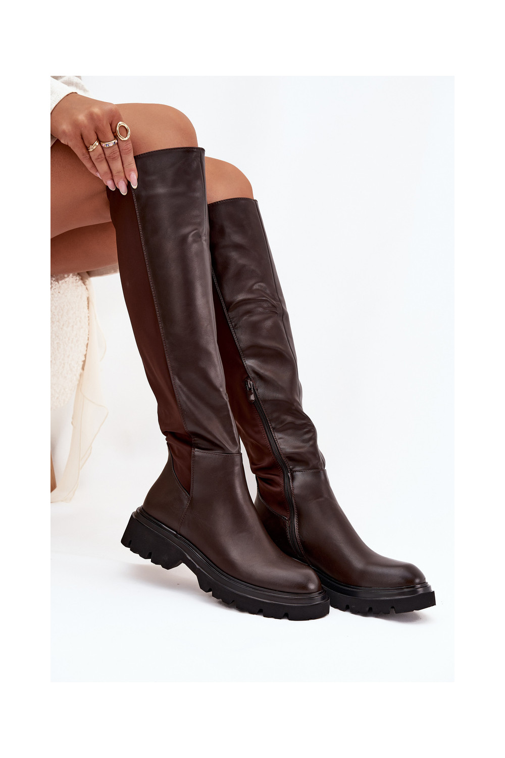 Iešļūcamie modeļa sieviešu ilgaauļi no eko ādas, šokolādes krāsā, Sylvina