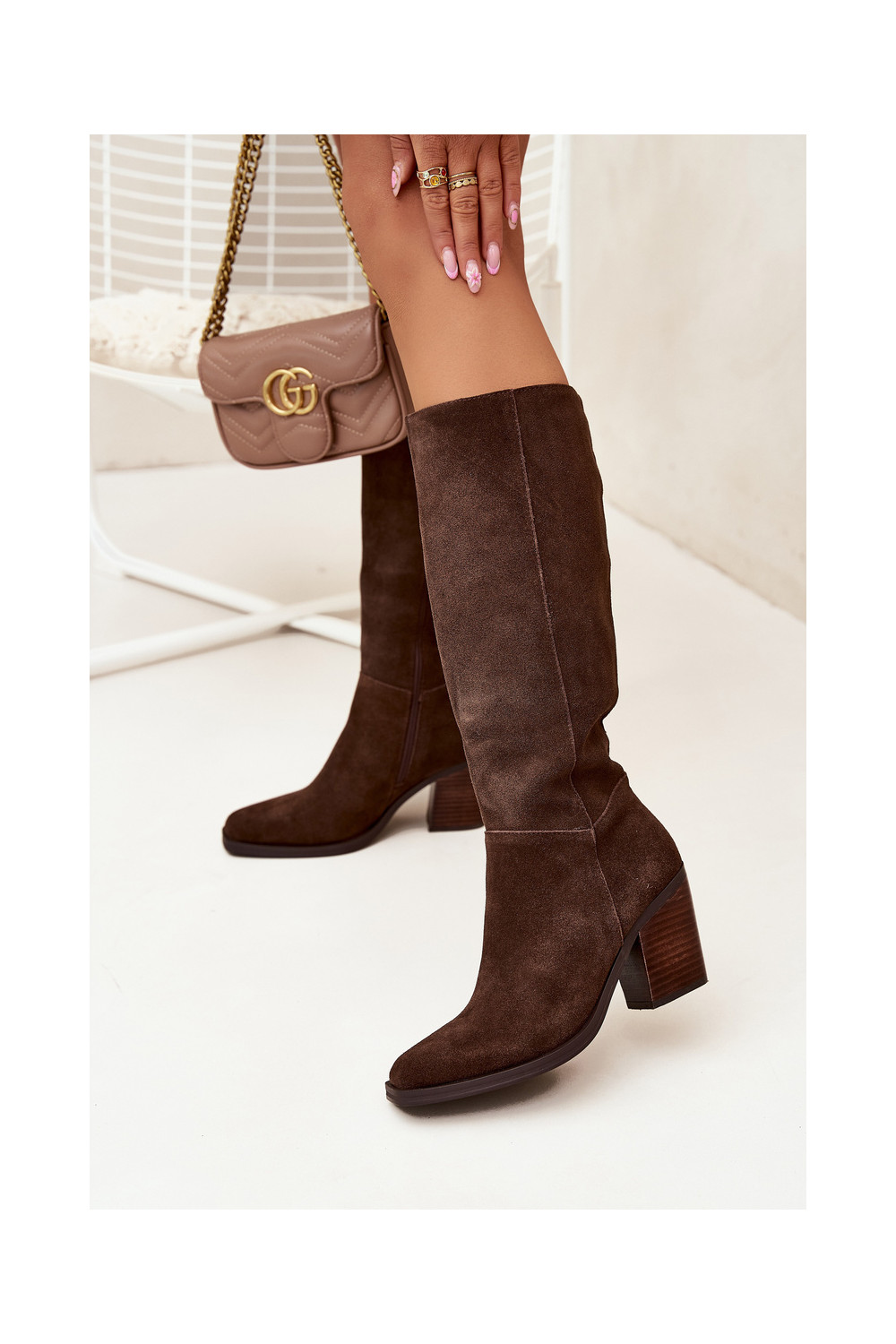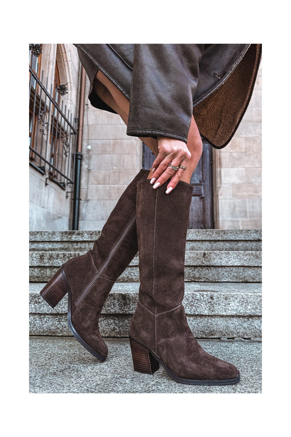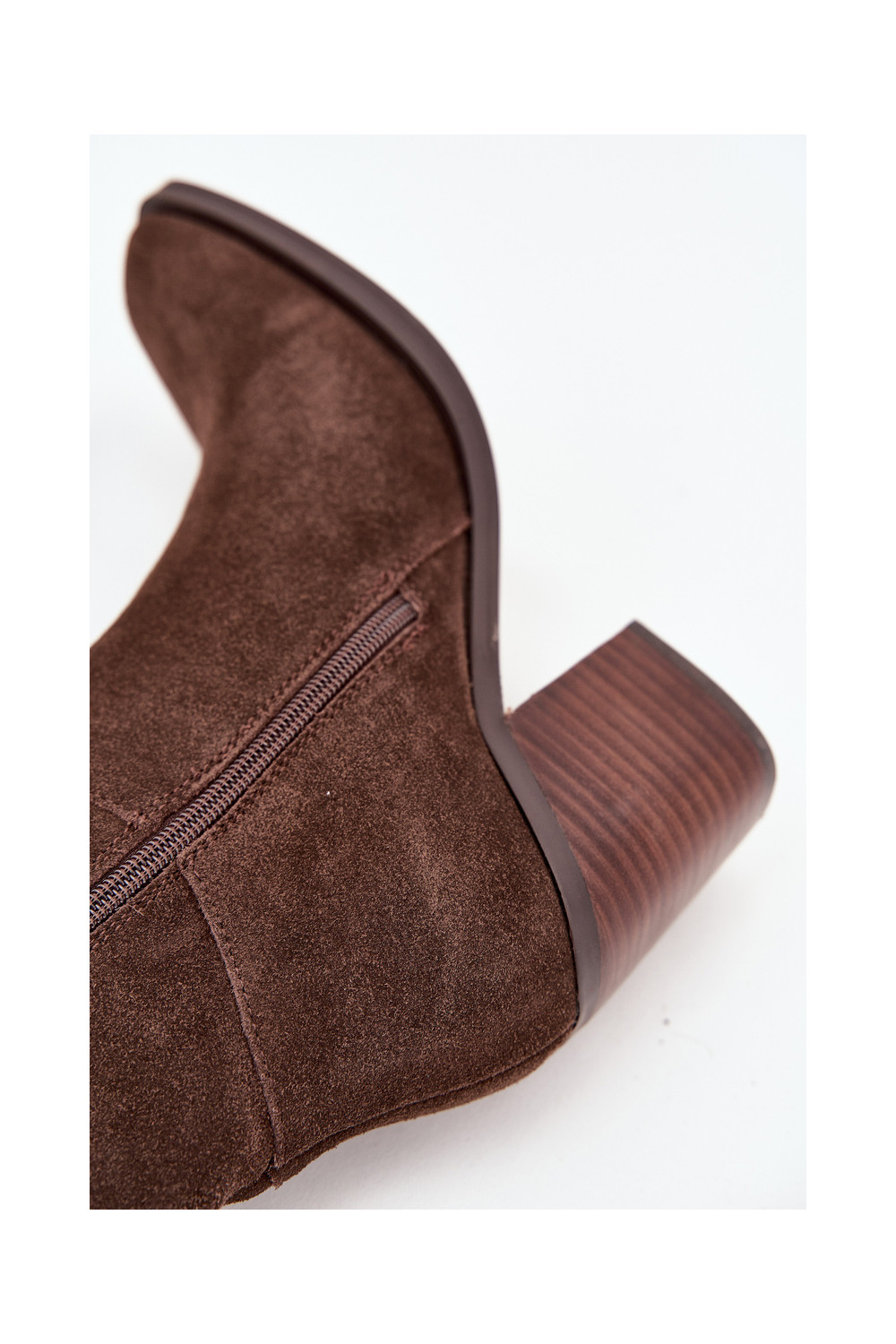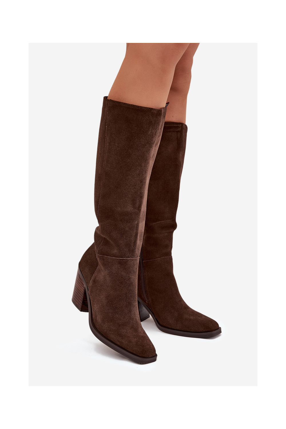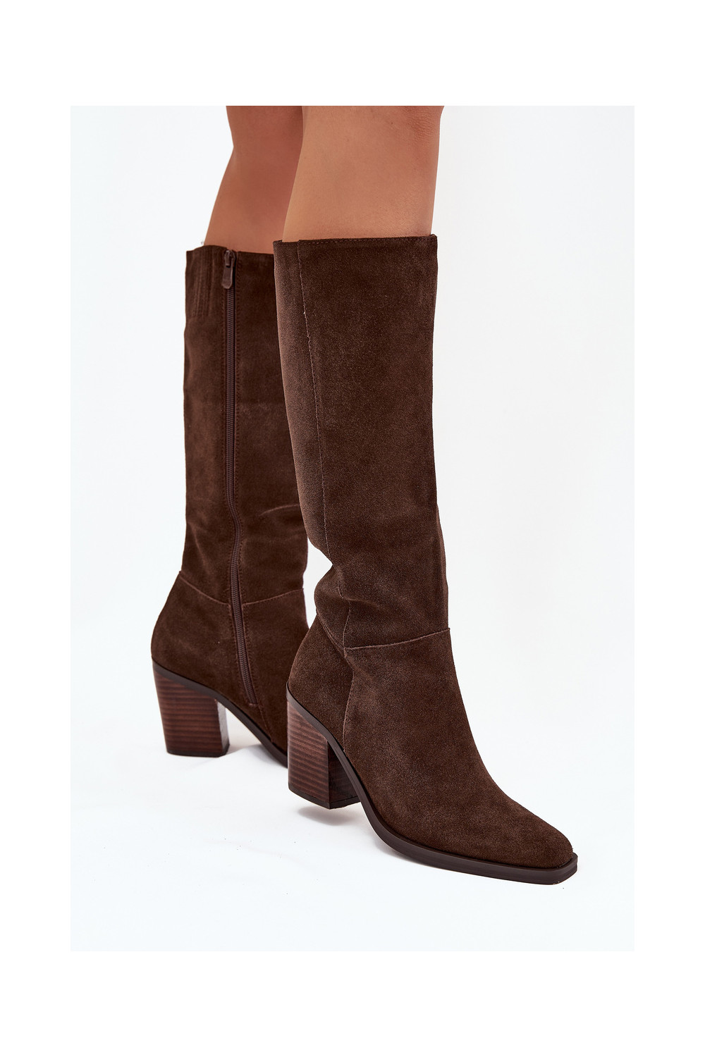 Mākslīgās zamšas garie sieviešu zābaki ar papēžiem un aizdari, šokolādes krāsā, Lissara