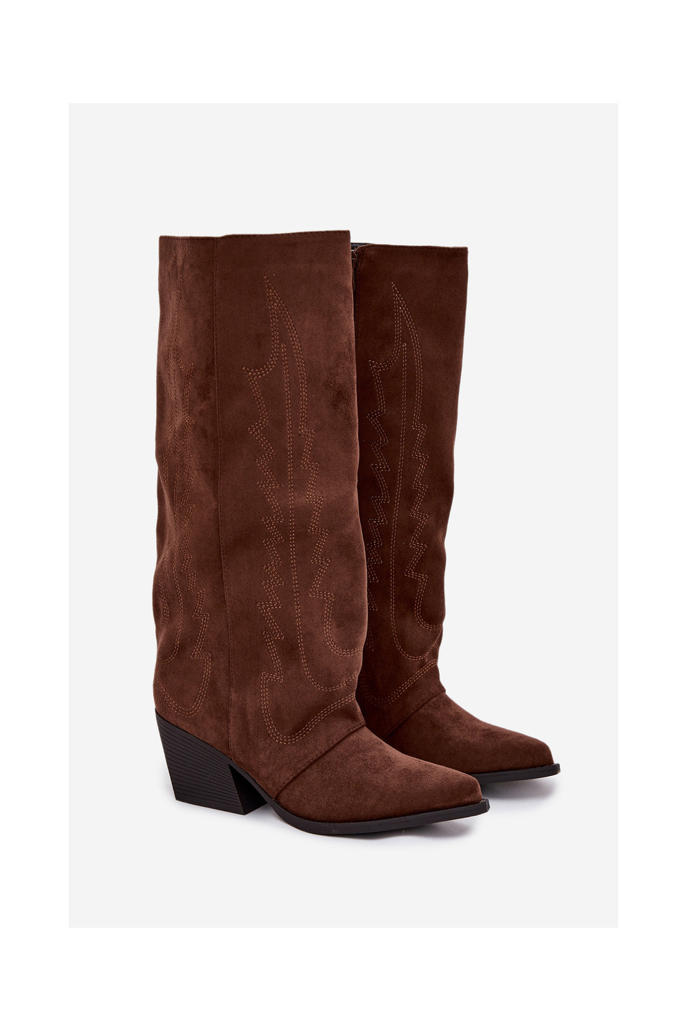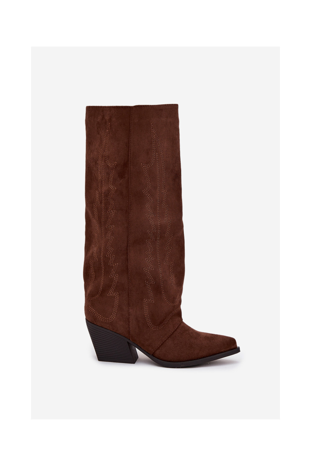Kovboju stila sieviešu garās zābaki ar sprādzi, brūnā krāsā Isalina