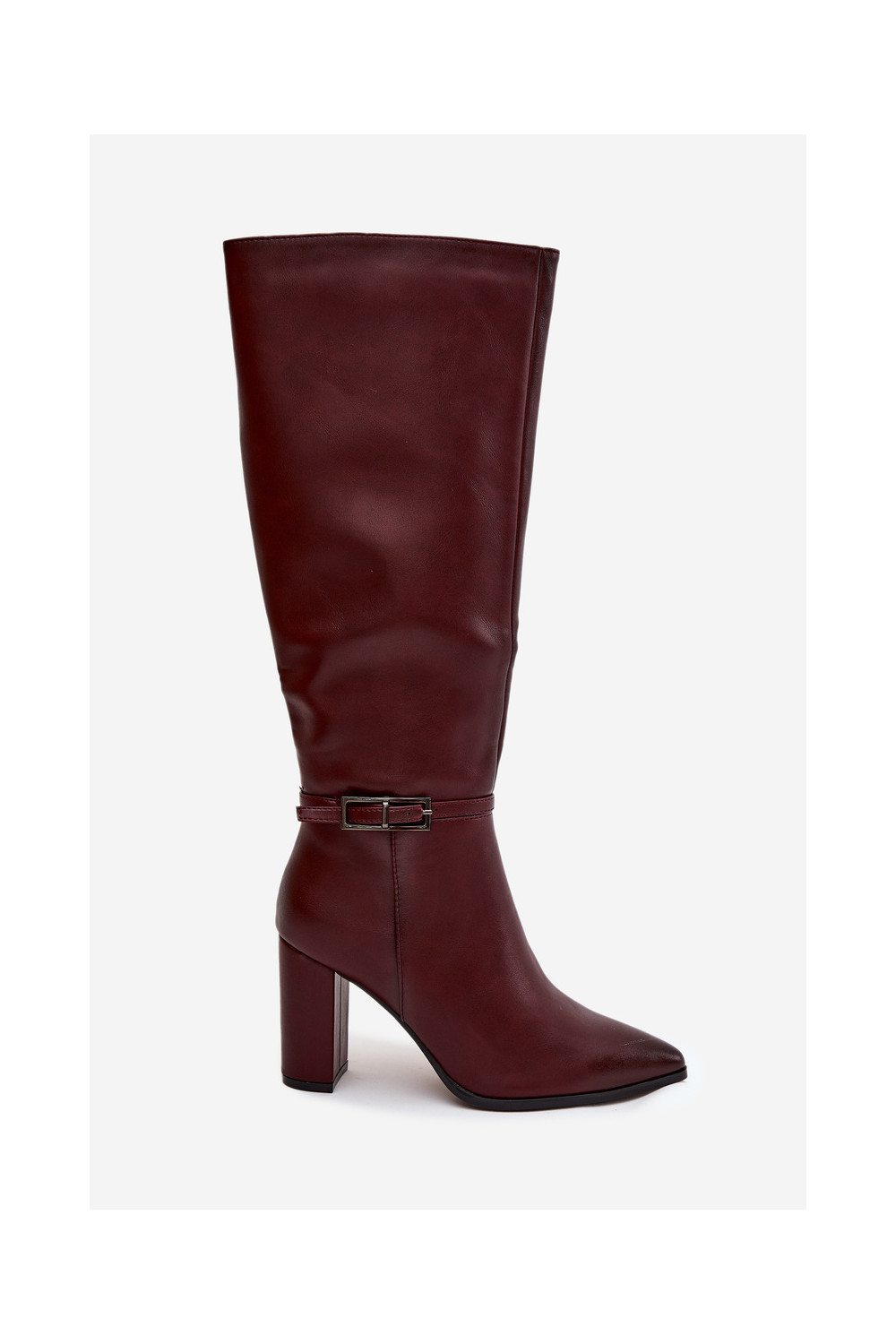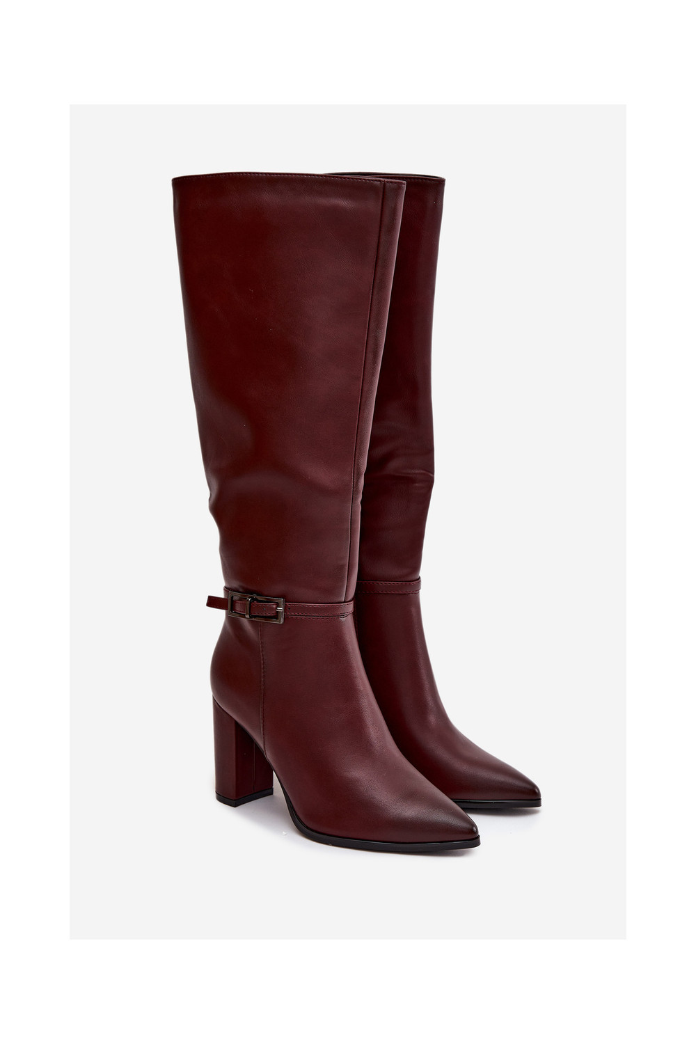Silti garie zābaki ar papēžiem un sprādzēm, bordo krāsas, Fionelle