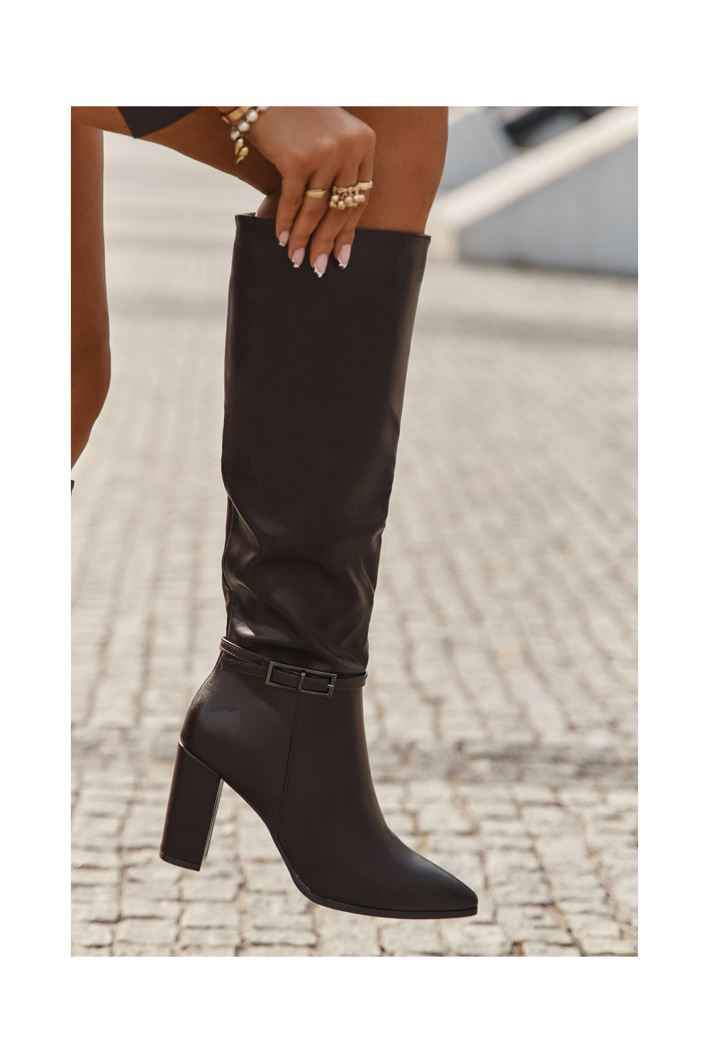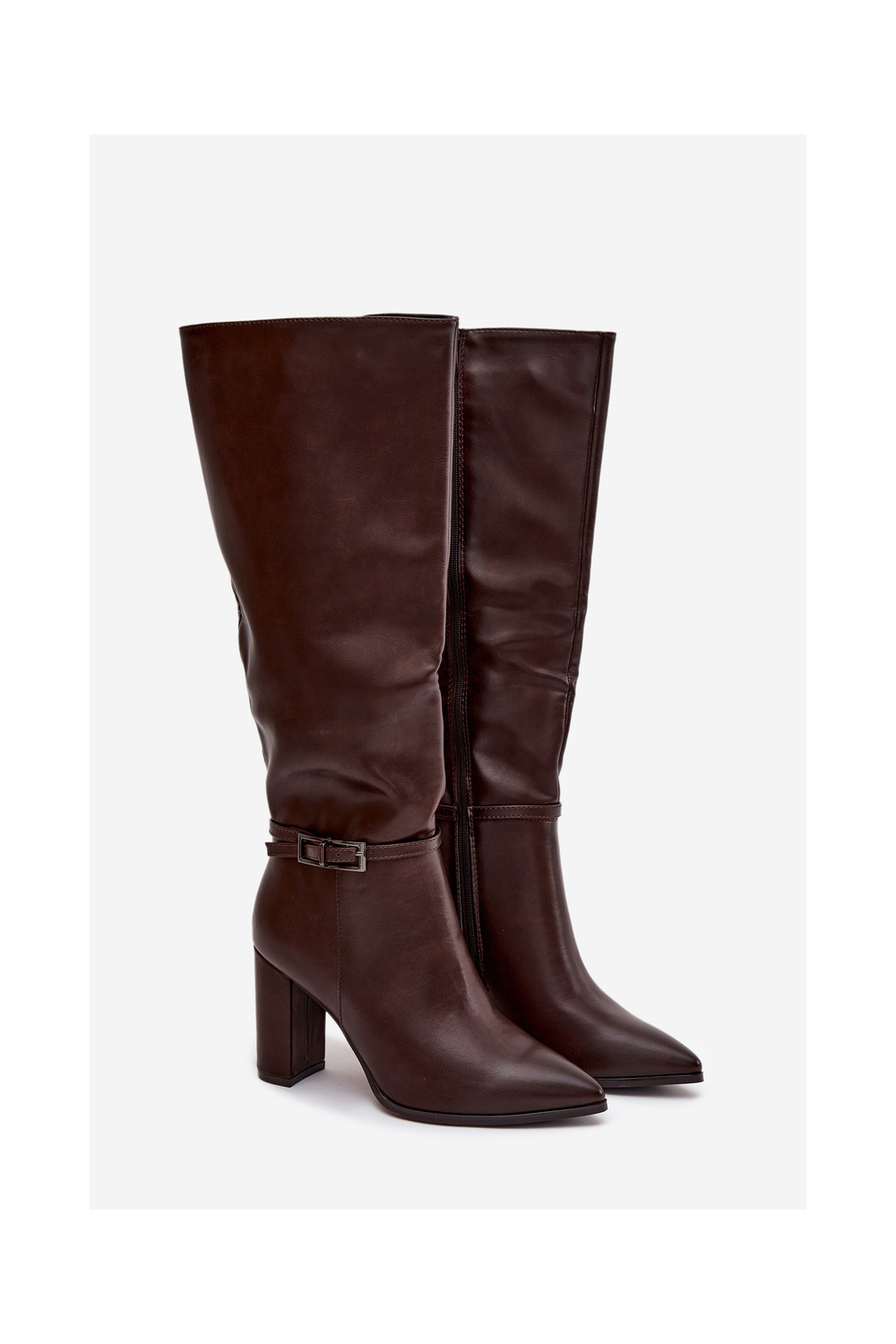 Silti garie zābaki ar papēžiem un sprādzēm, šokolādes krāsas, Fionelle