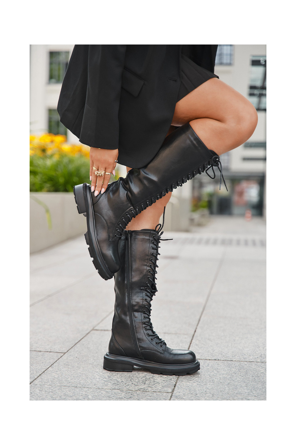 Garie zābaki sievietēm, sasilti, no eko ādas, melni, Selvina