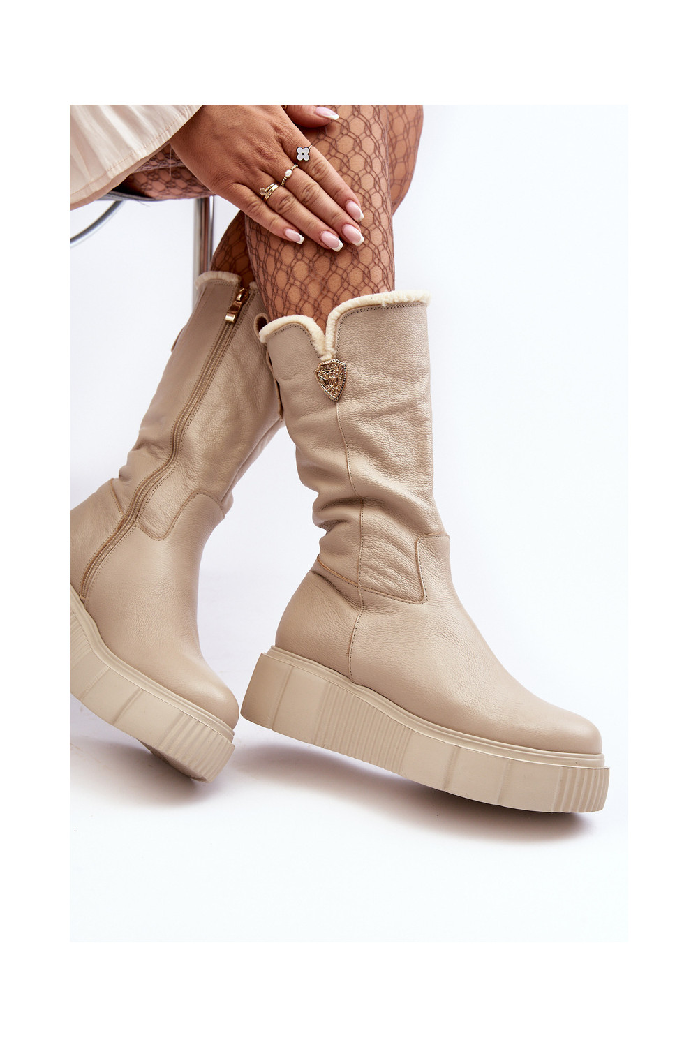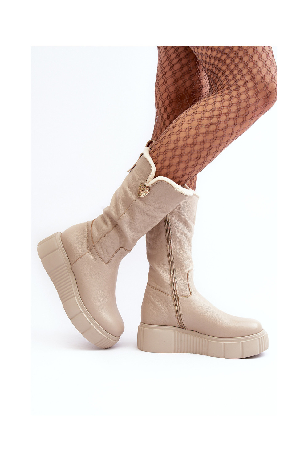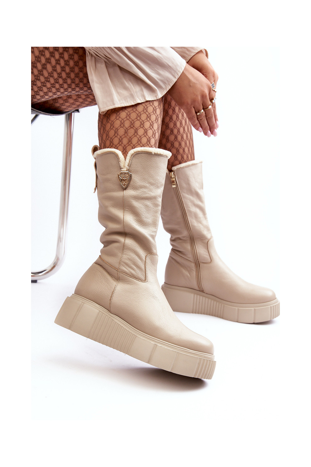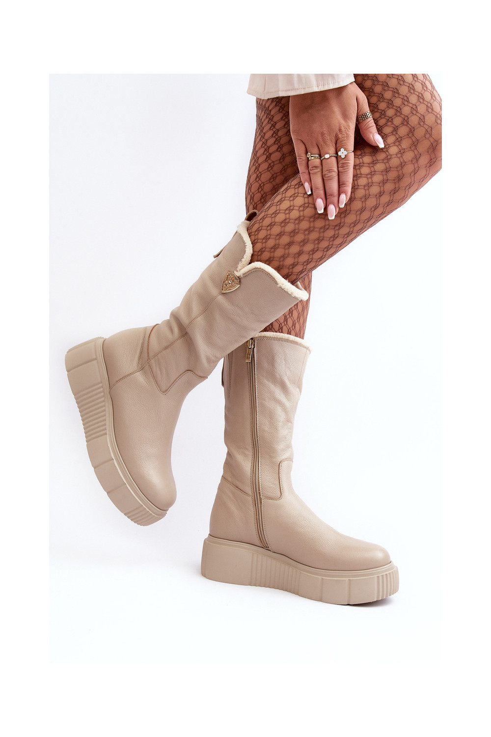 Sieviešu ādas gari zābaki ar vilnu, smilšu krāsā „Bayla"