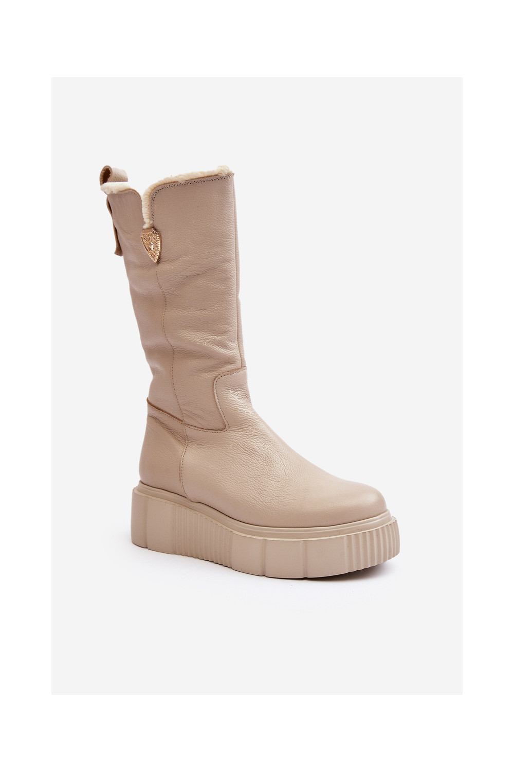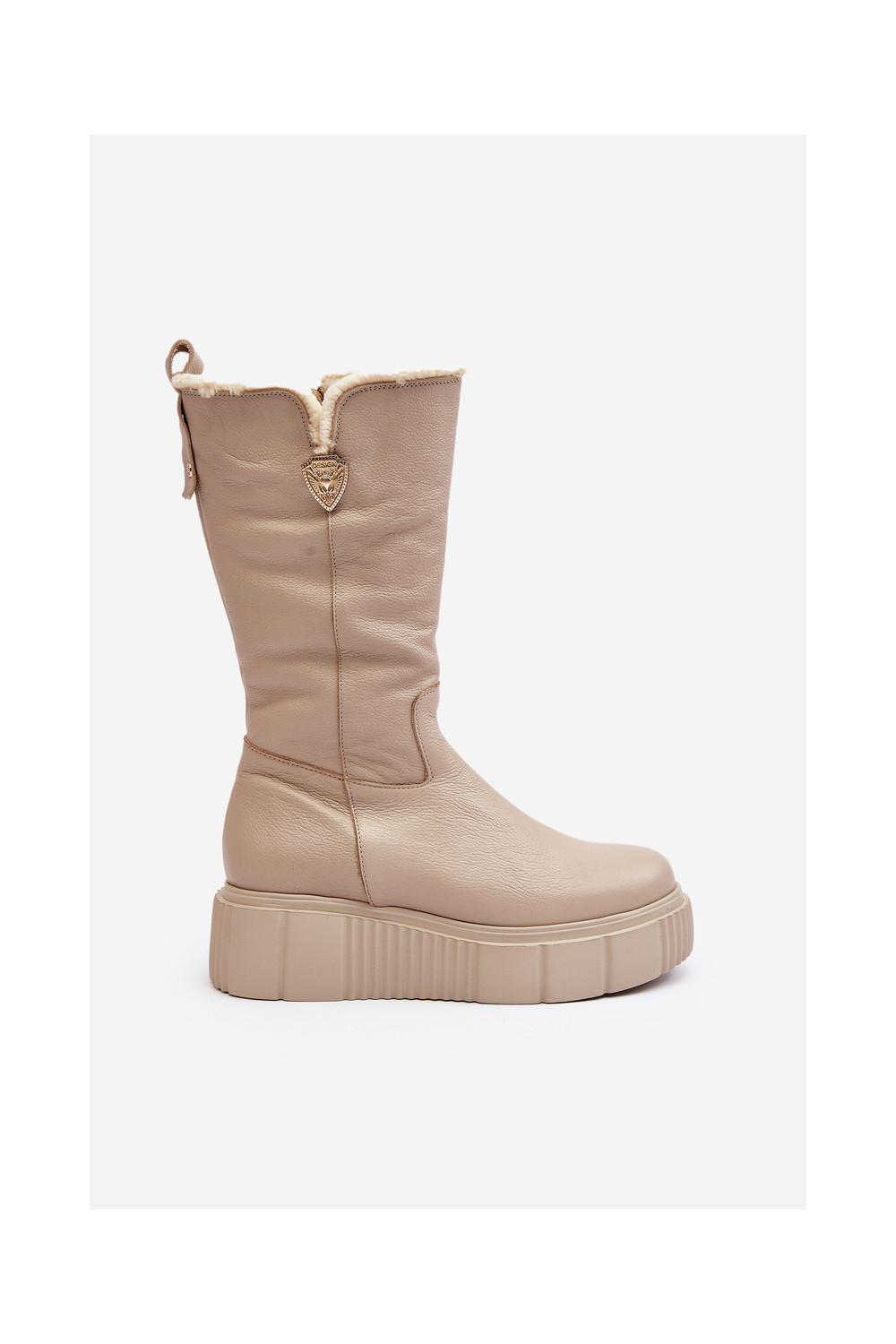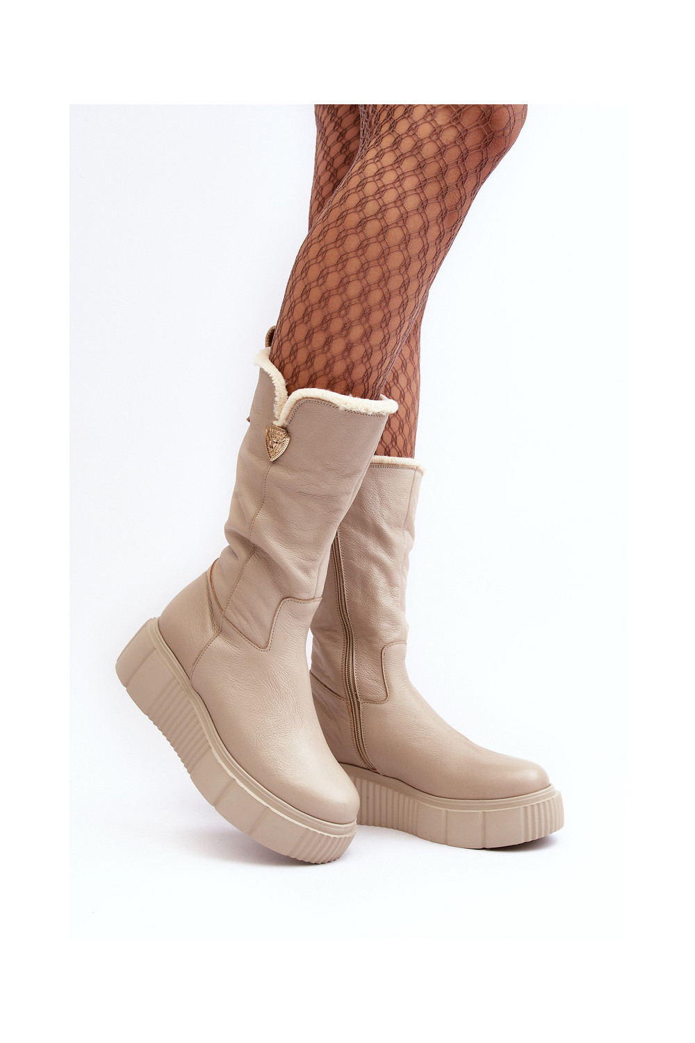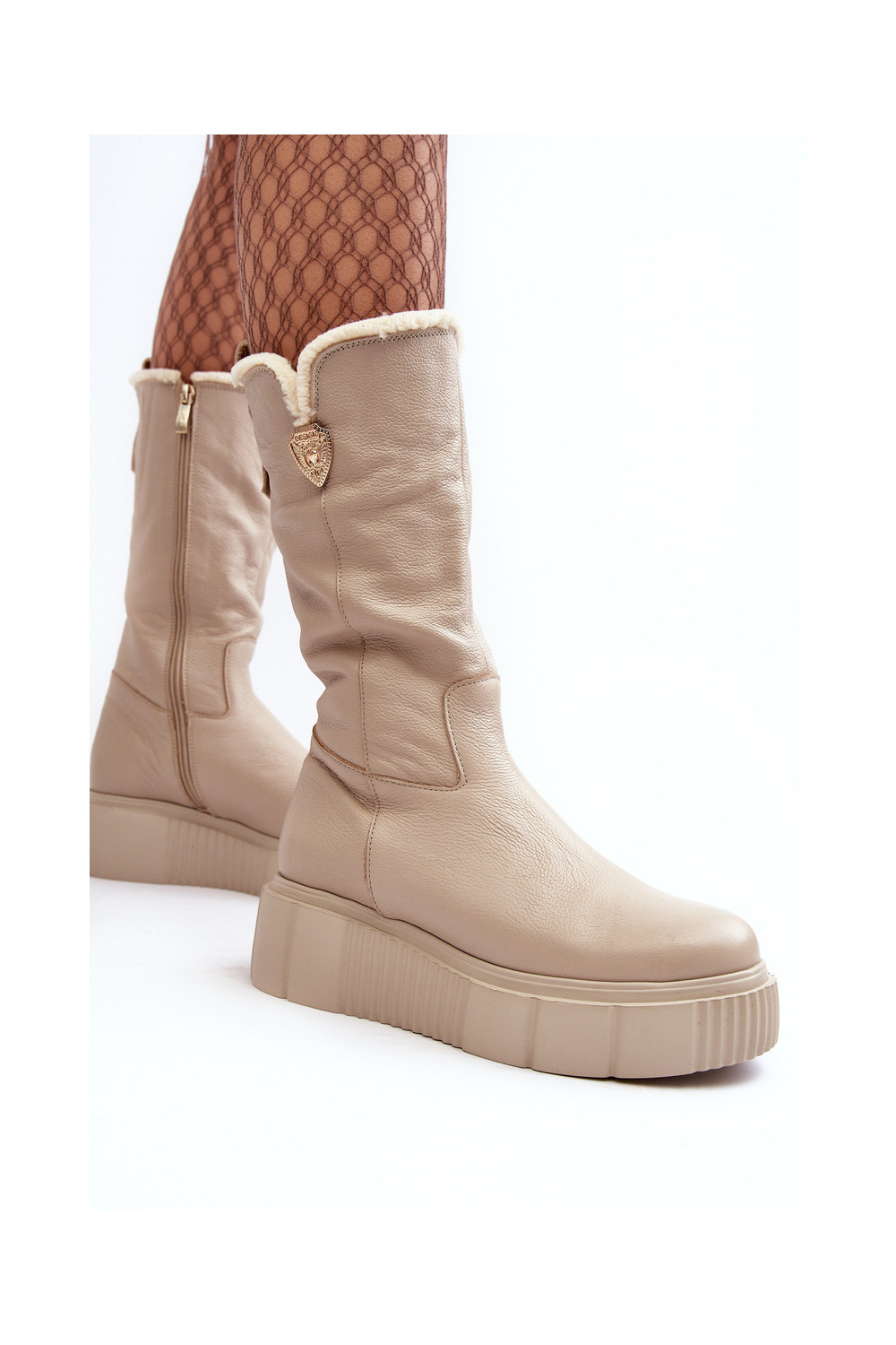 Sieviešu ādas gari zābaki ar vilnu, smilšu krāsā „Bayla"