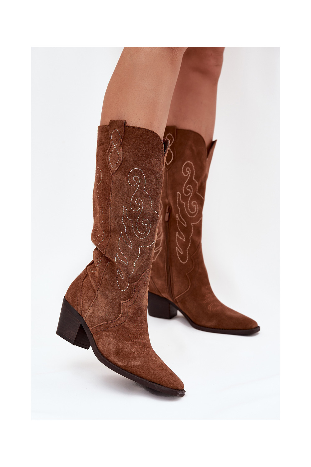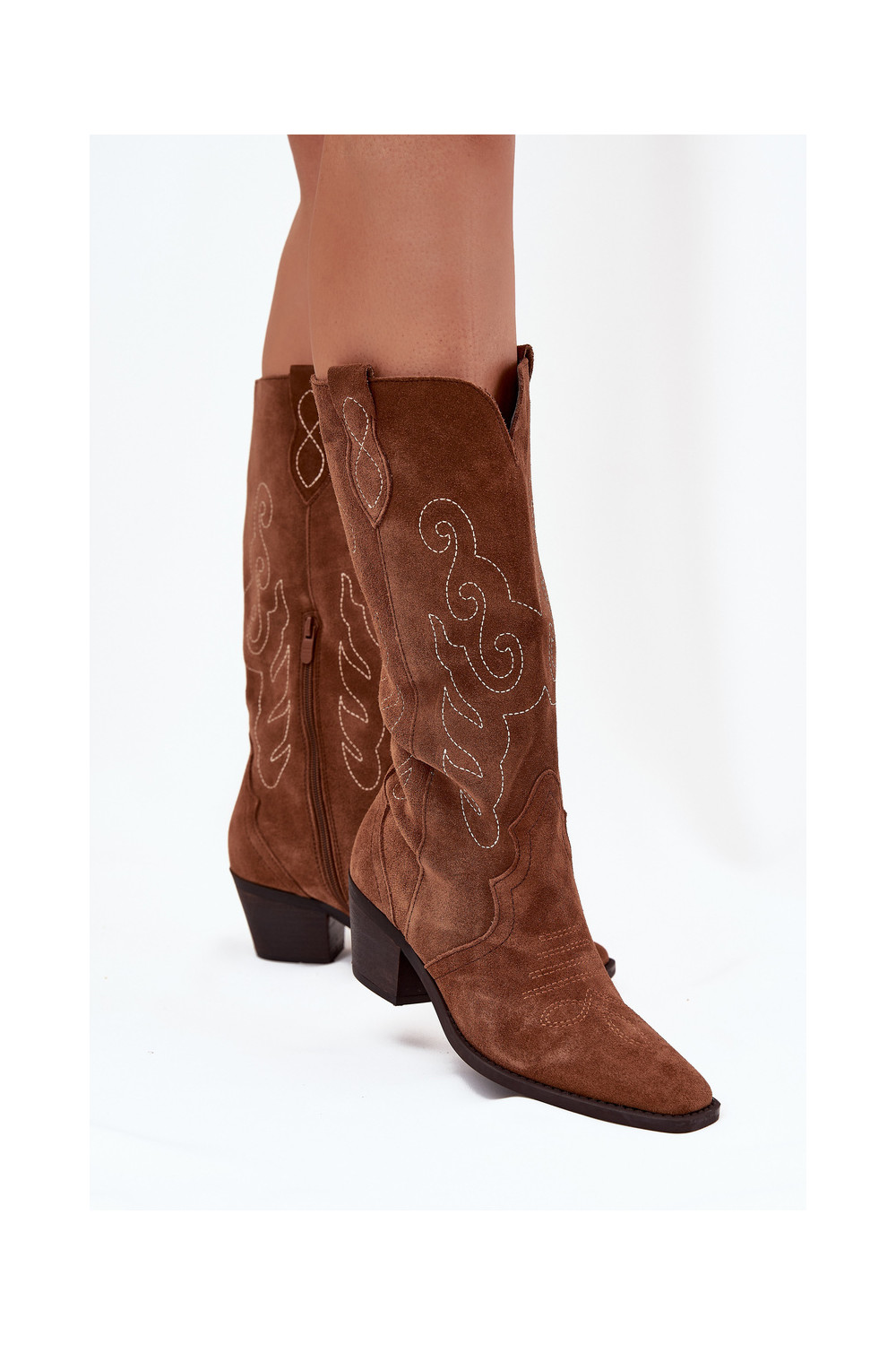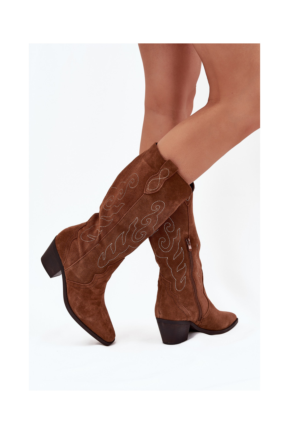 Kausbikstila brūni zamša zābaki sievietēm ar papēžiem „Karira"