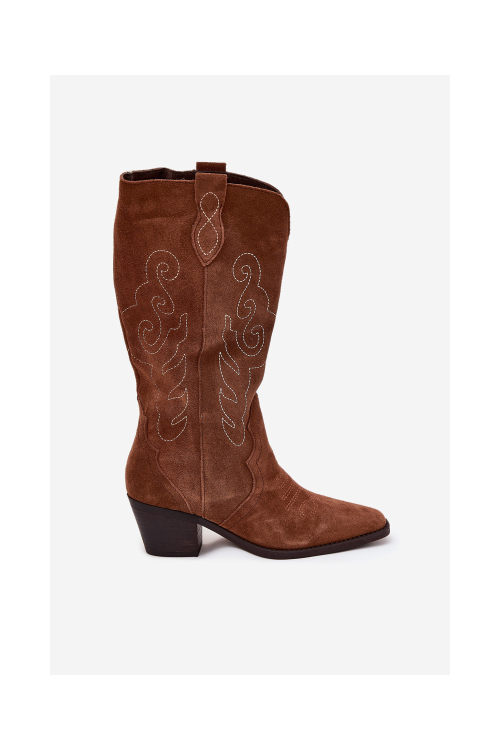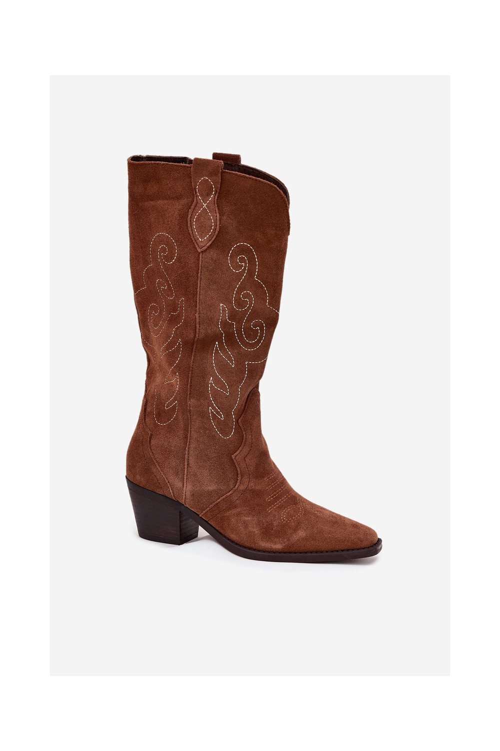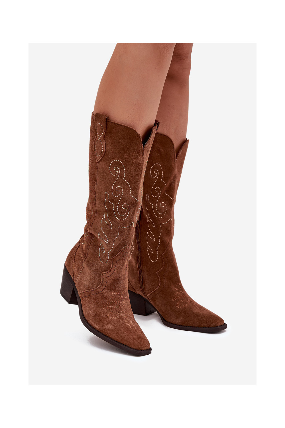 Kausbikstila brūni zamša zābaki sievietēm ar papēžiem „Karira"
