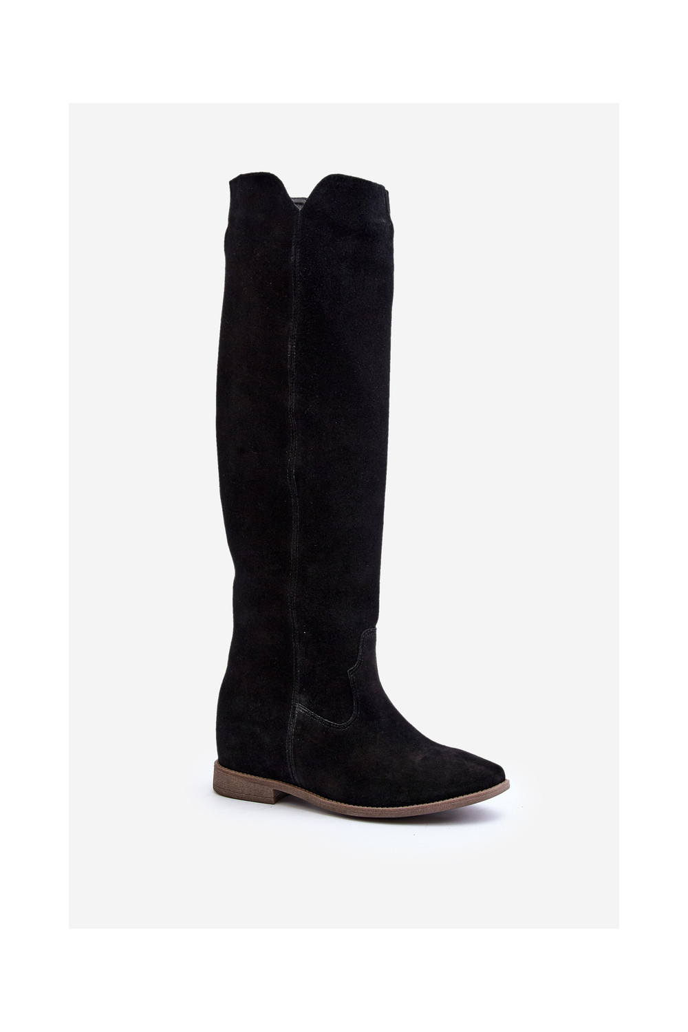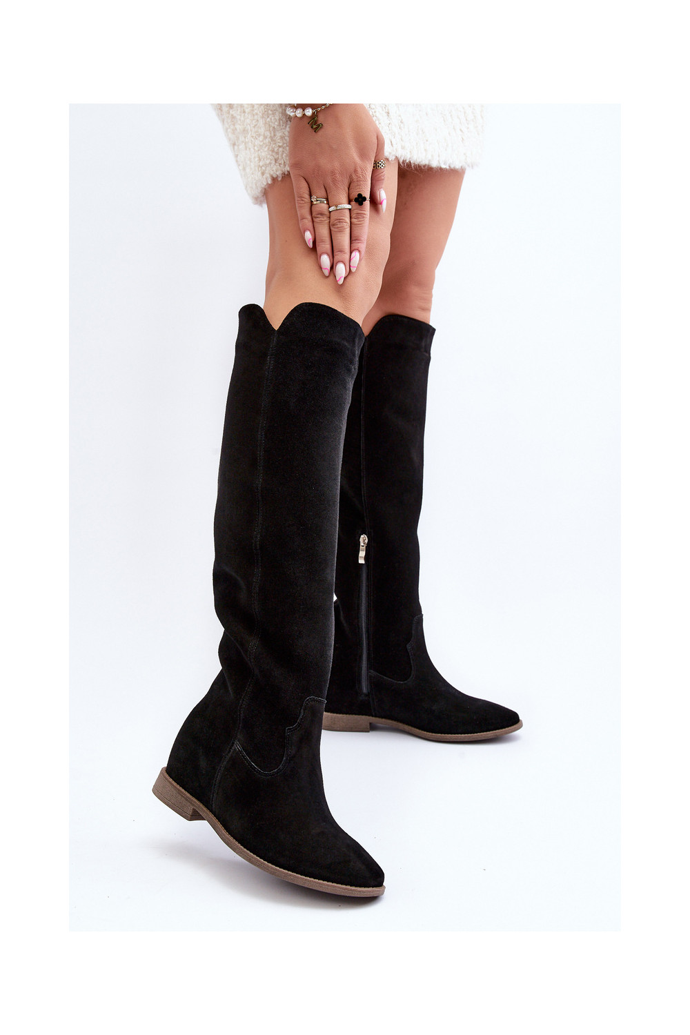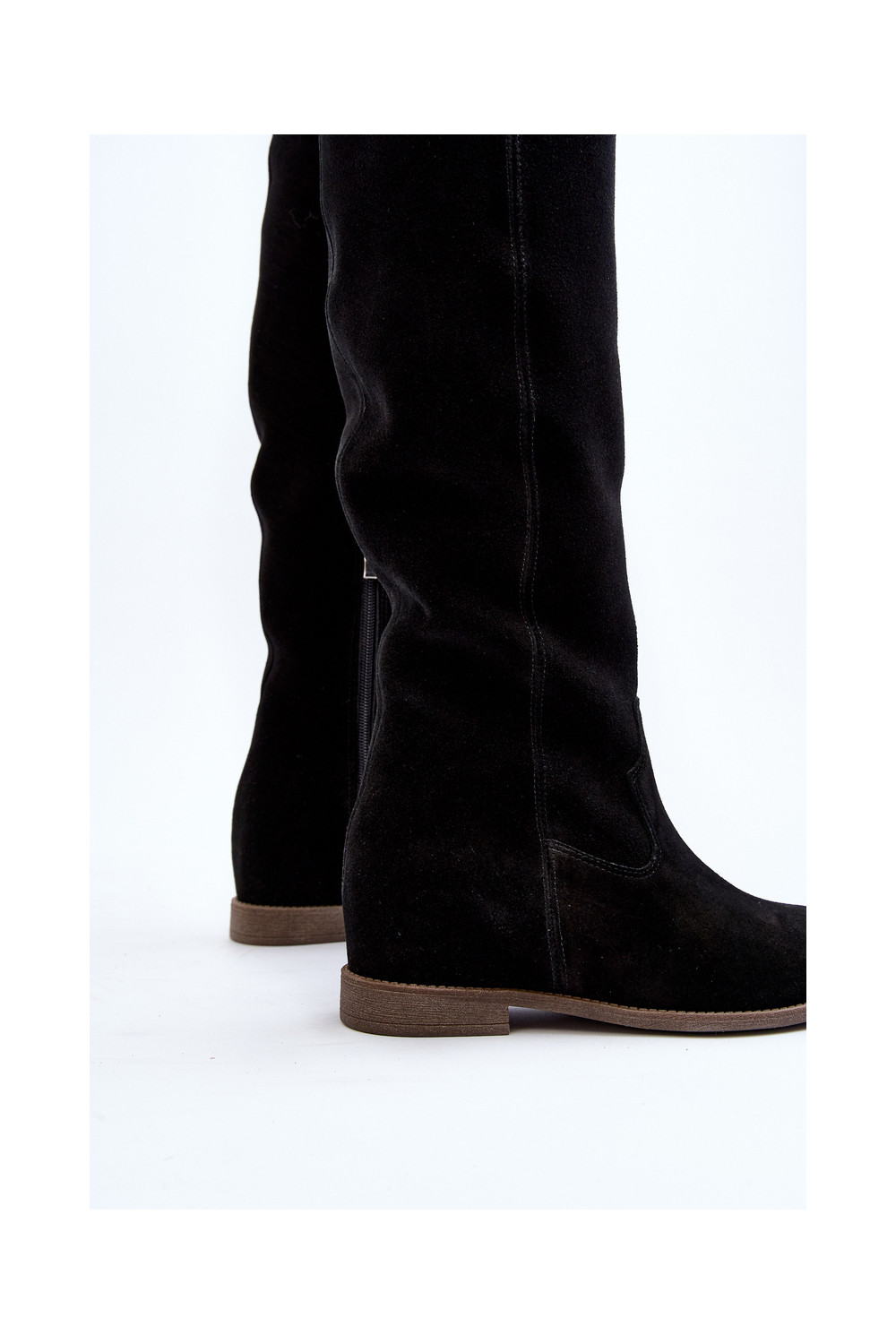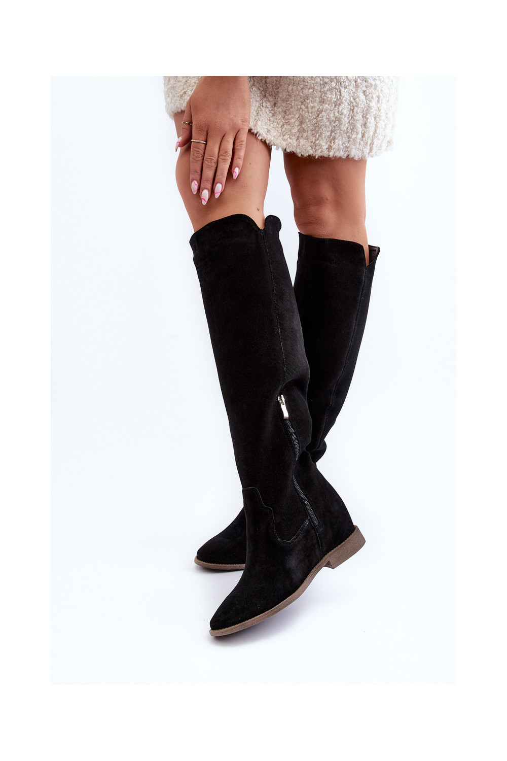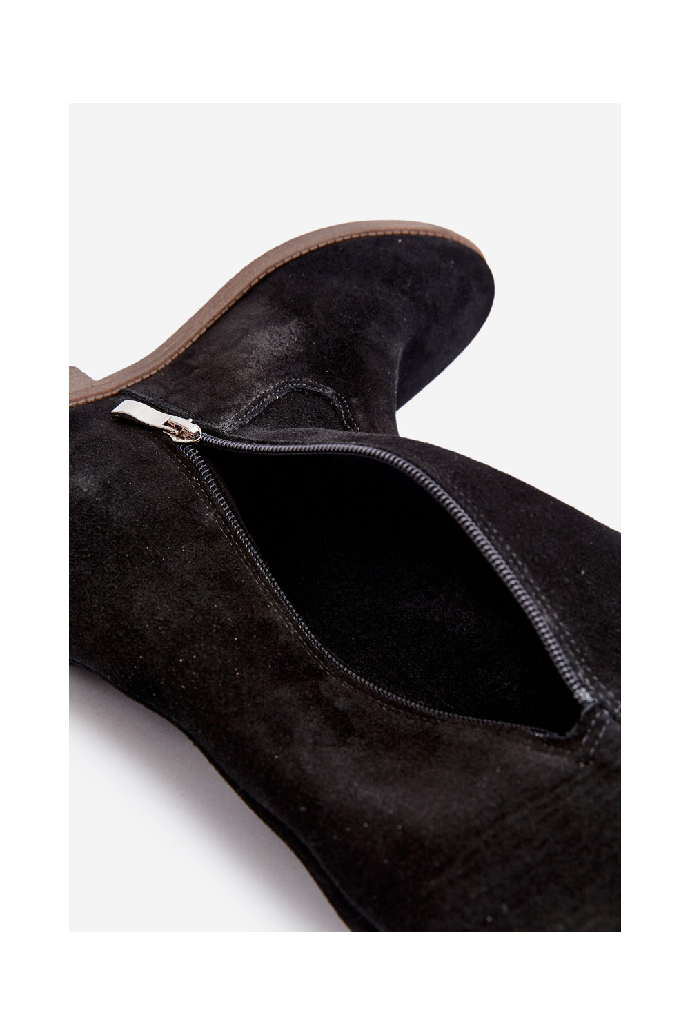 Melni zamša ilgi zābaki līdz ceļiem ar platām papēžiem „Zazoo 3407"