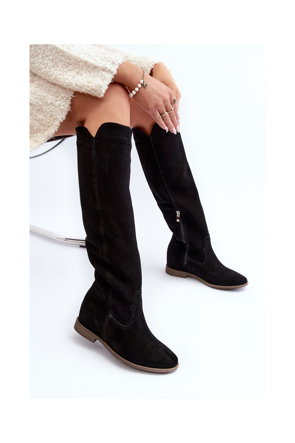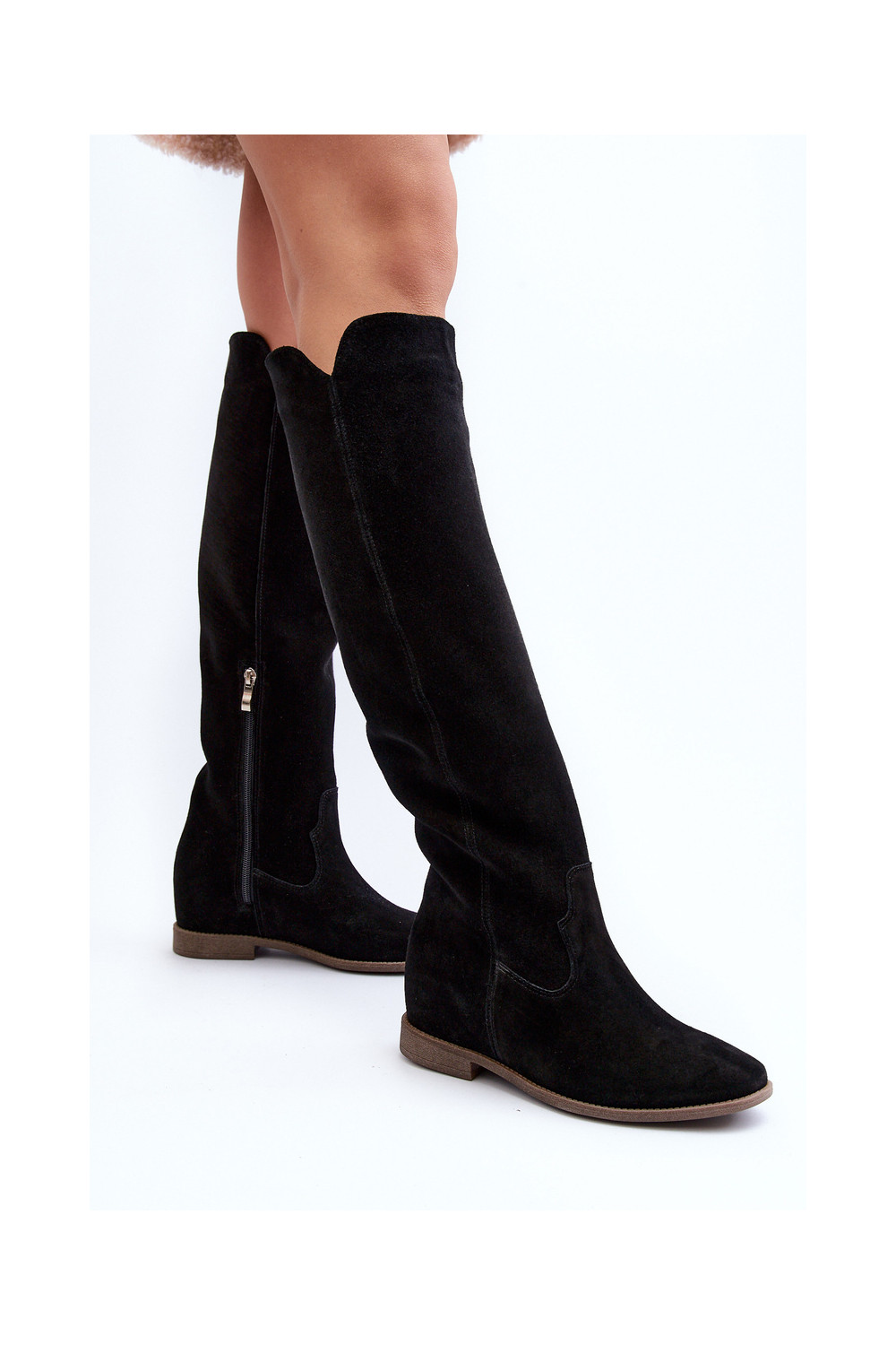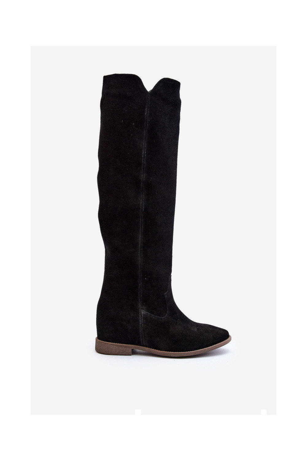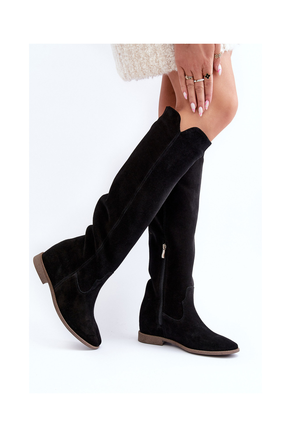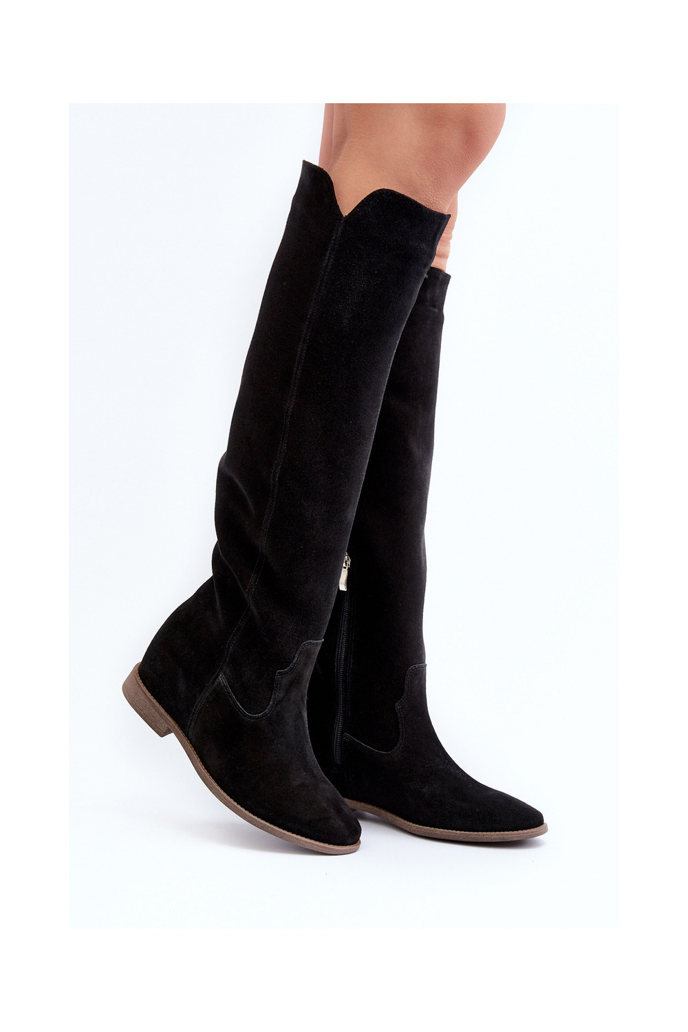 Melni zamša ilgi zābaki līdz ceļiem ar platām papēžiem „Zazoo 3407"