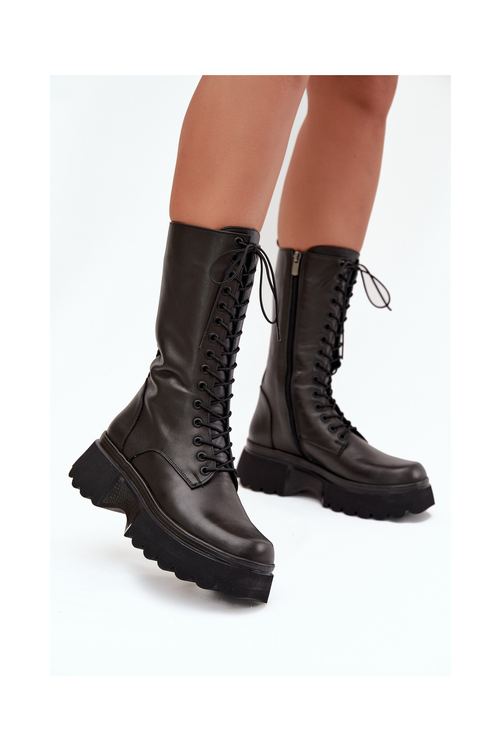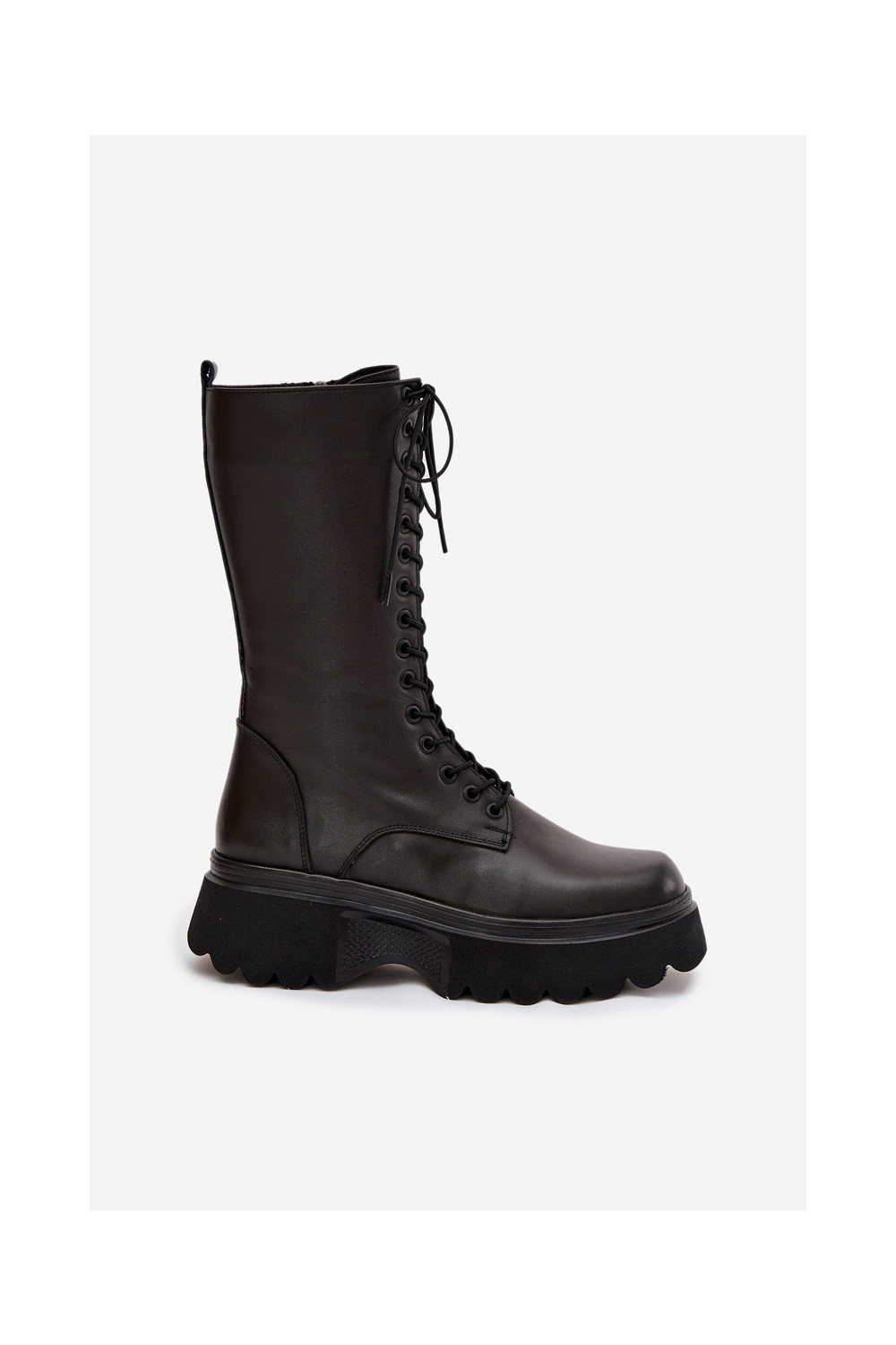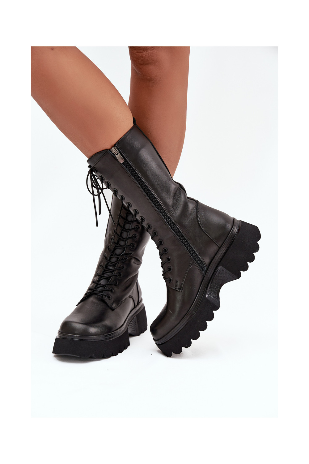 Melnas krāsas ādas siltie garie zābaki ar platformu Artiker 57C2282