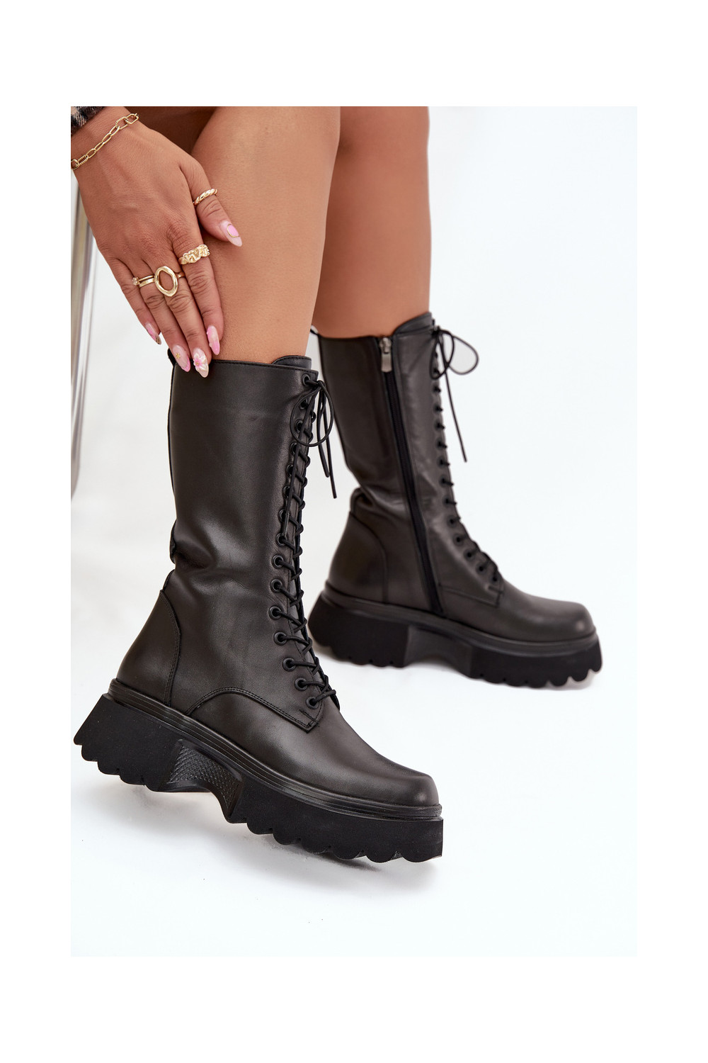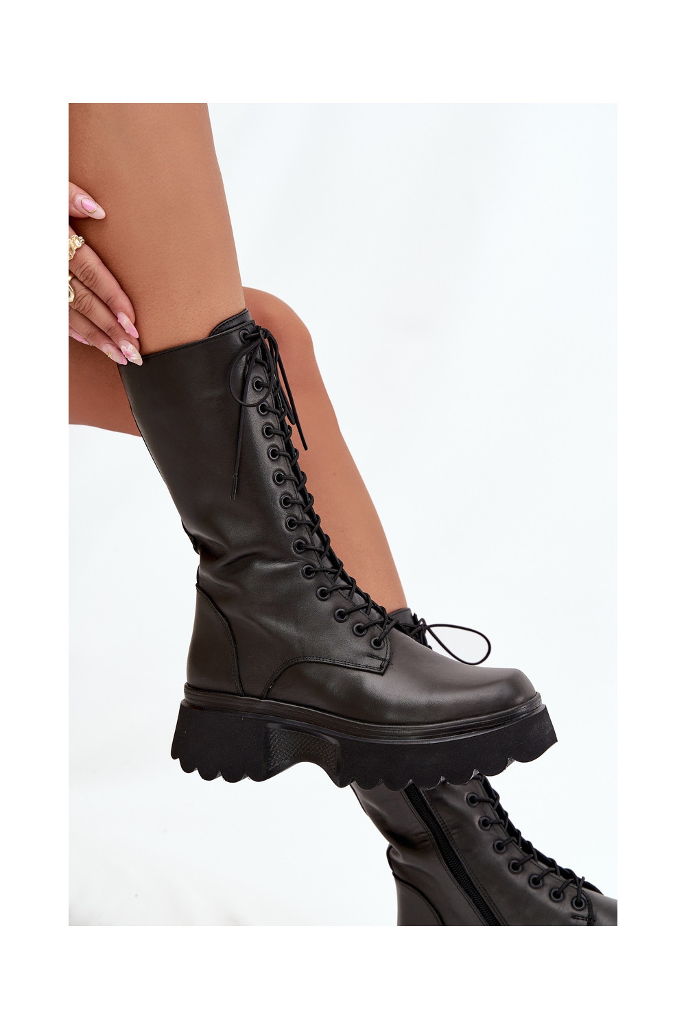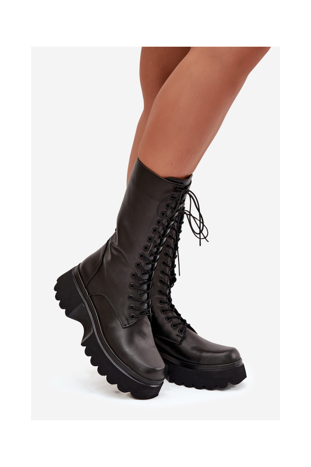 Melnas krāsas ādas siltie garie zābaki ar platformu Artiker 57C2282
