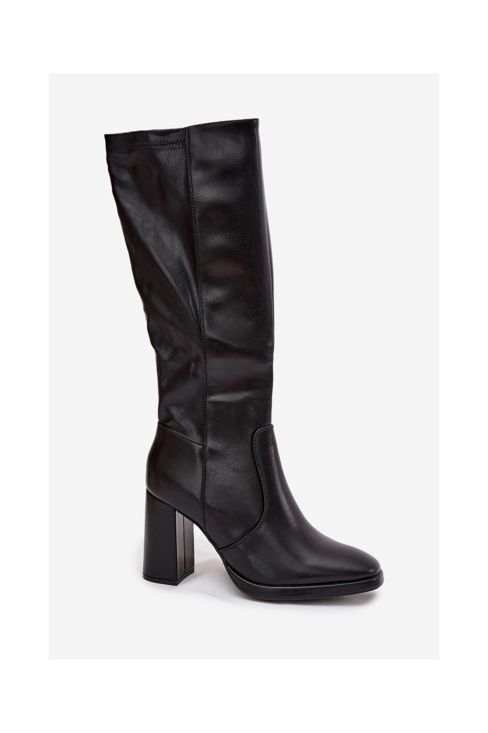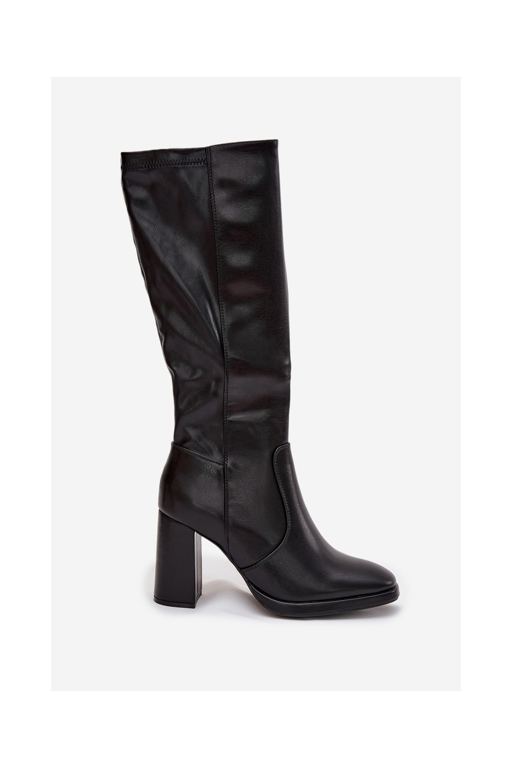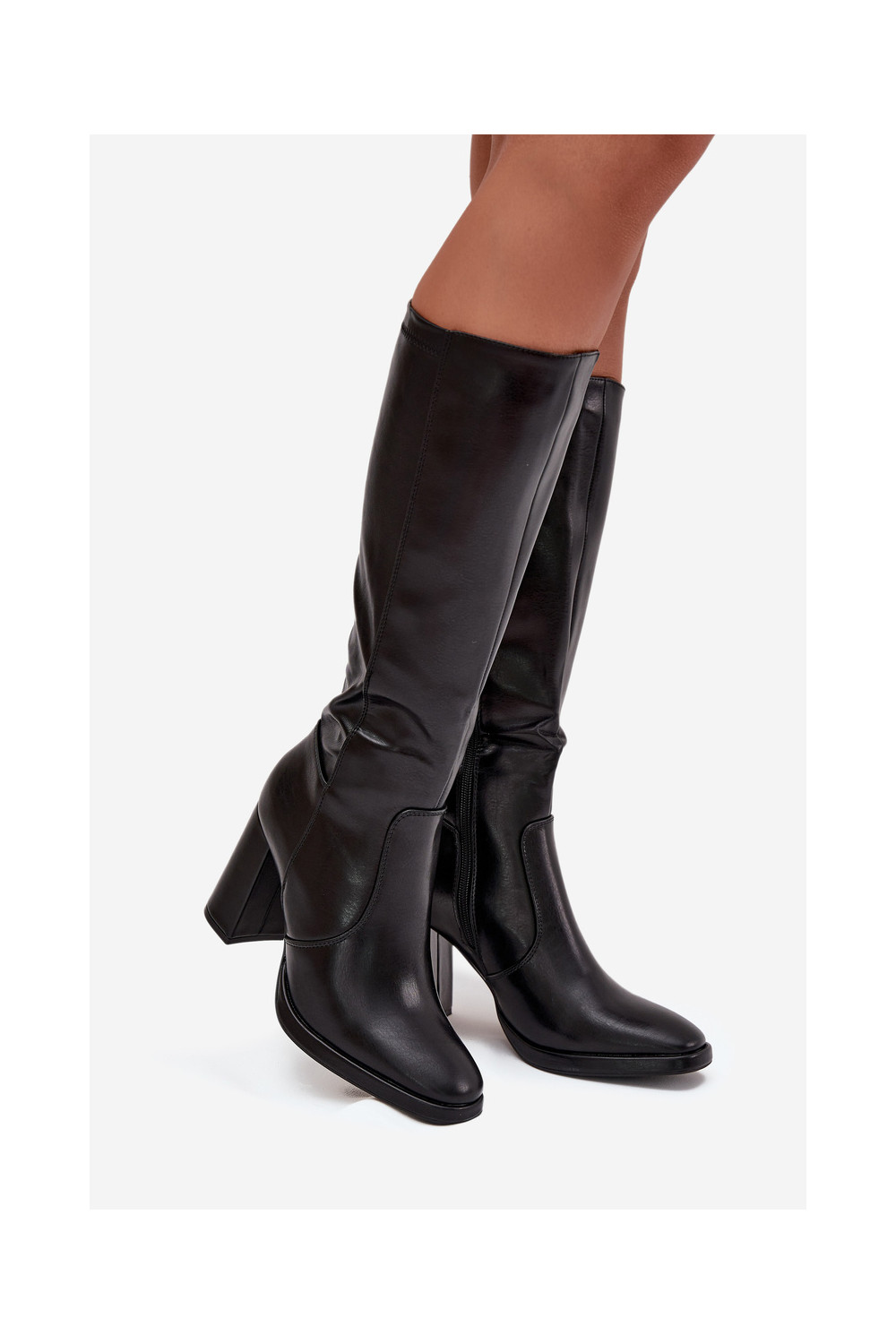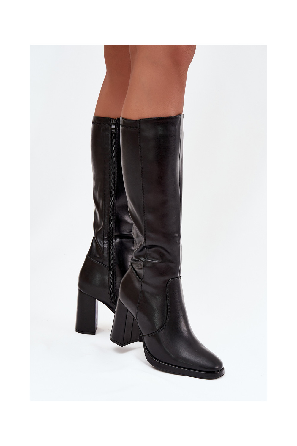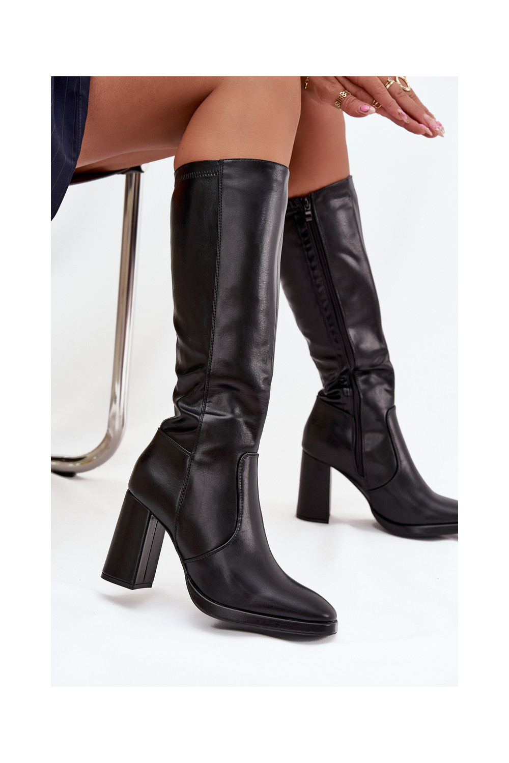 Melnas krāsas sieviešu siltie garie zābaki ar papēžiem no eko ādas Lyvella