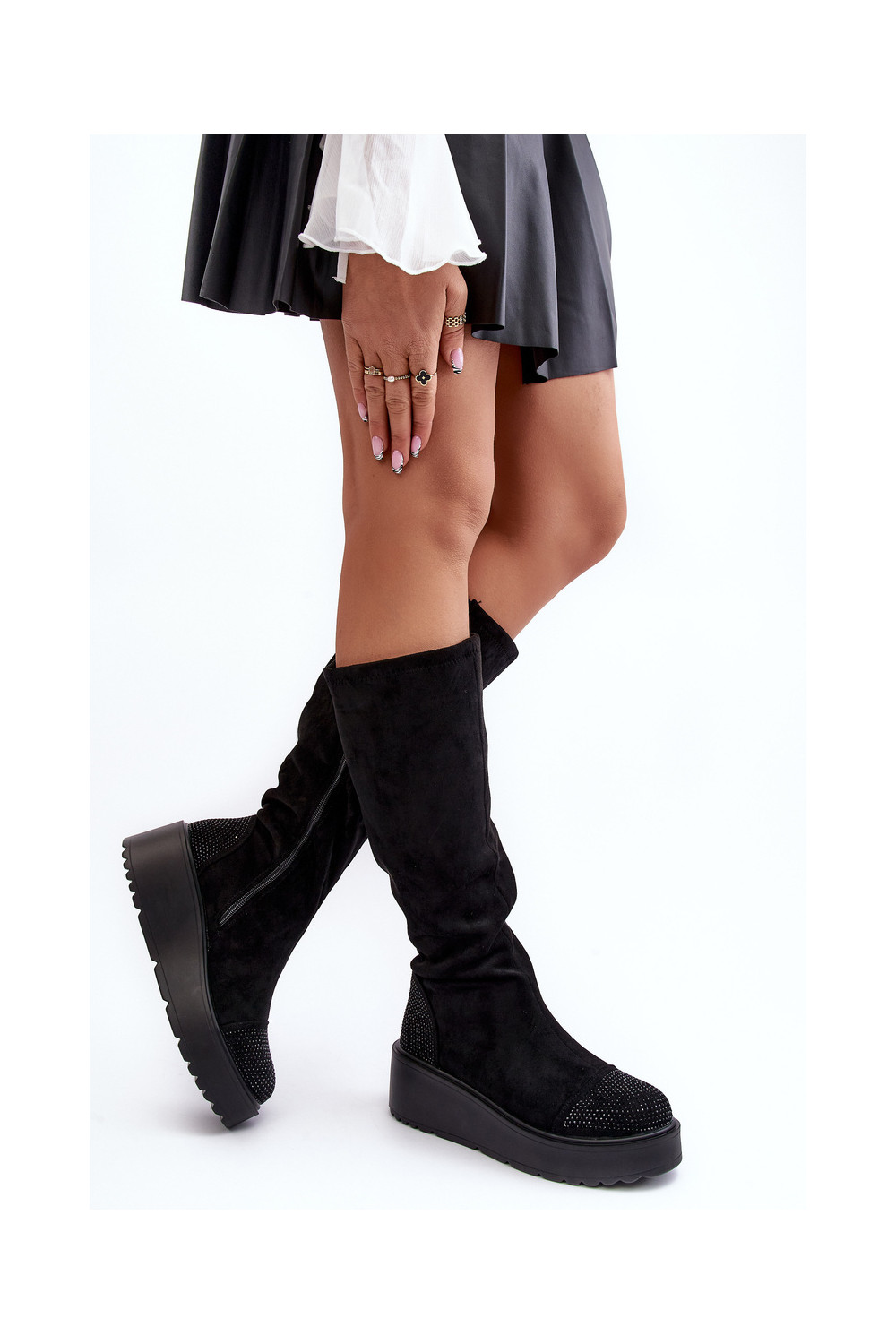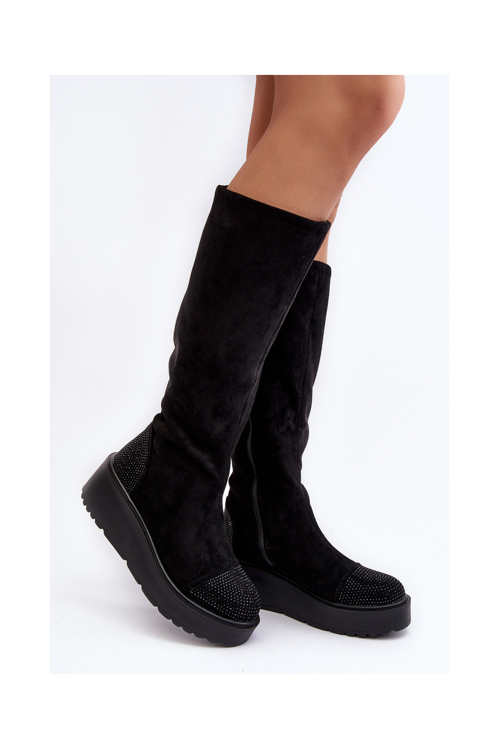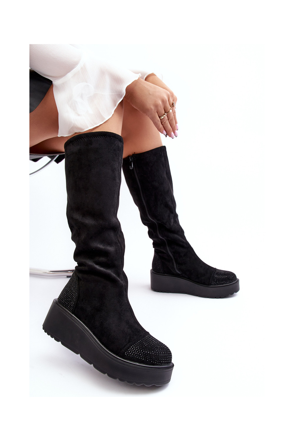 Sieviešu zamšādas garie zābaki ar platformu S.Barski HY53-8 melnā krāsā