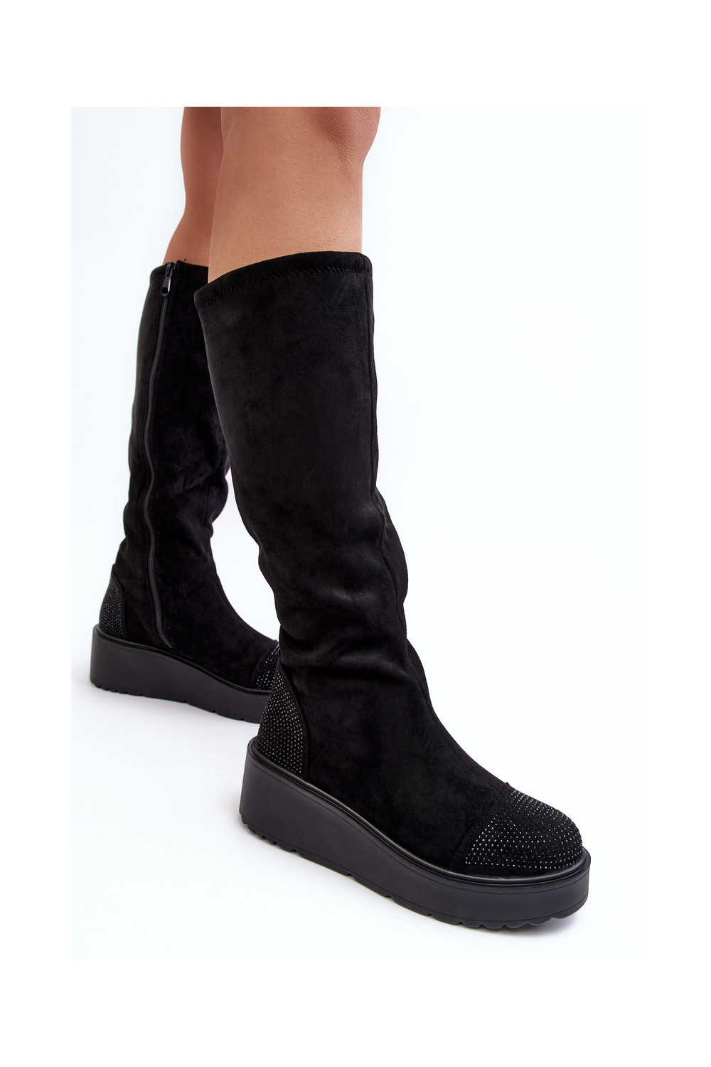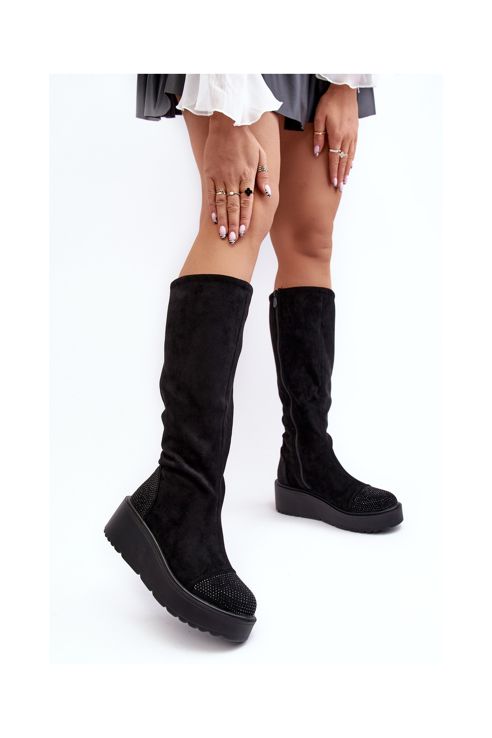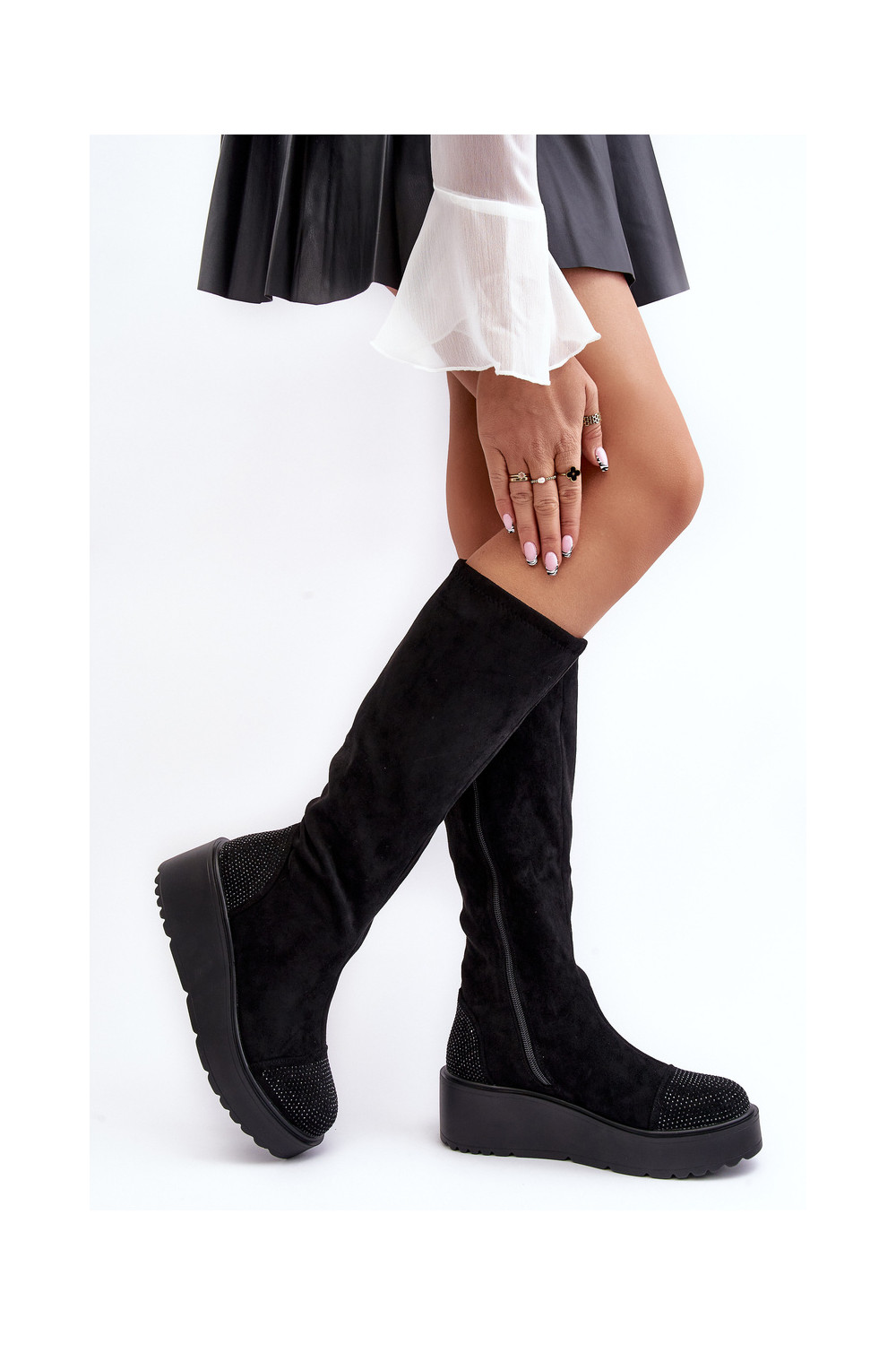 Sieviešu zamšādas garie zābaki ar platformu S.Barski HY53-8 melnā krāsā