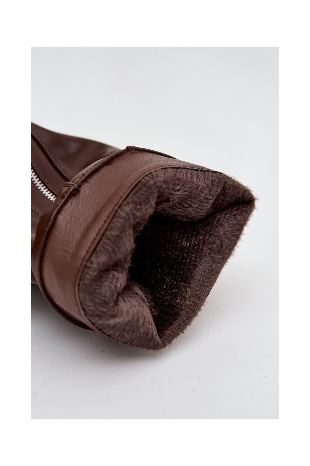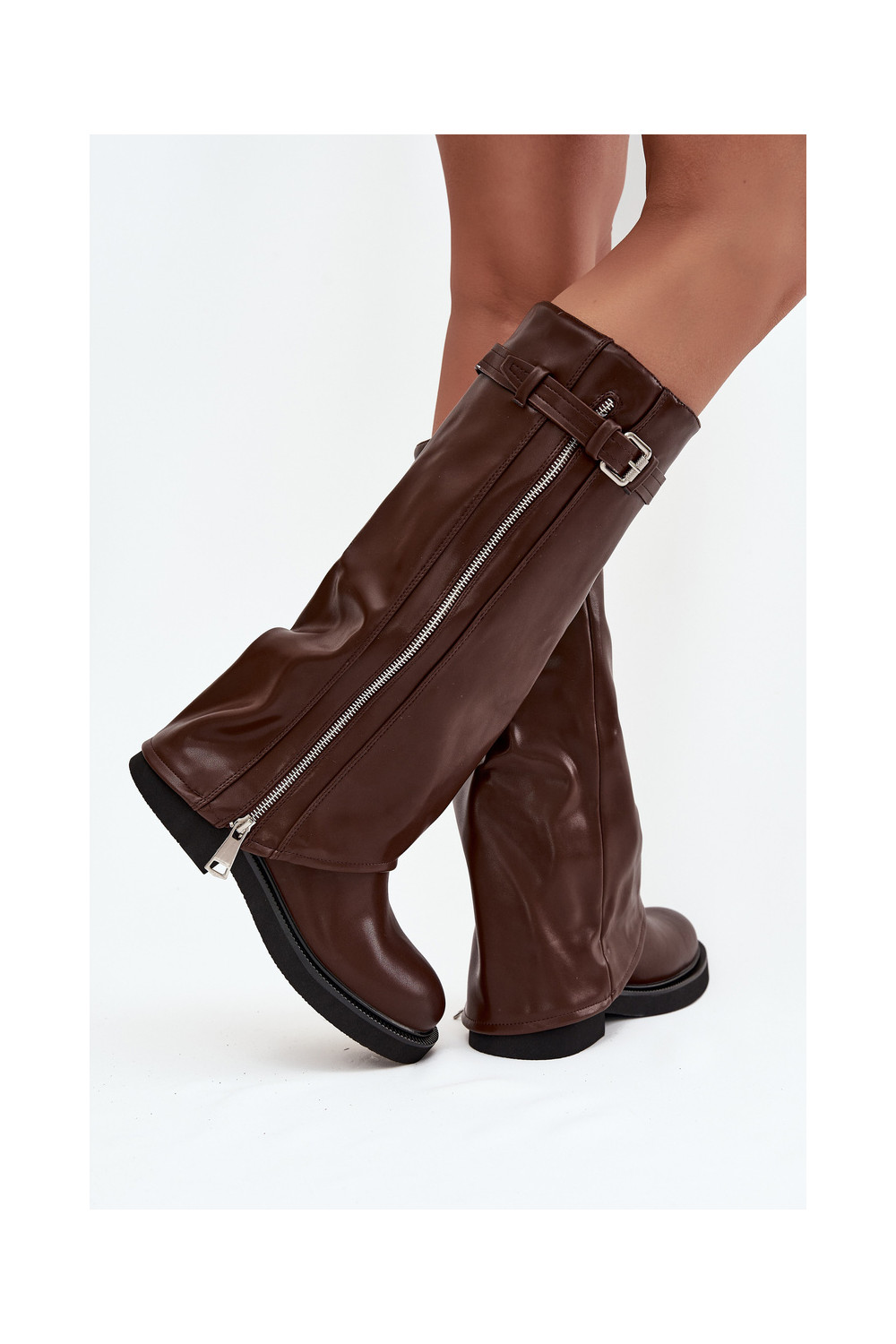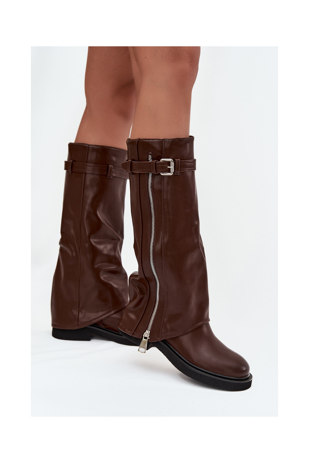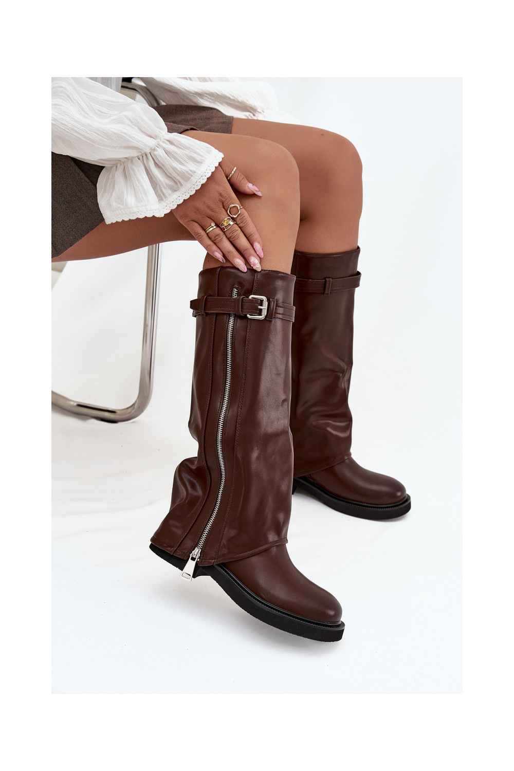 Sieviešu garie zābaki ar paplatinātu zoli, sprādzēm un sudraba rāvējslēdzēju, siltināti, brūnā krāsā Bressa