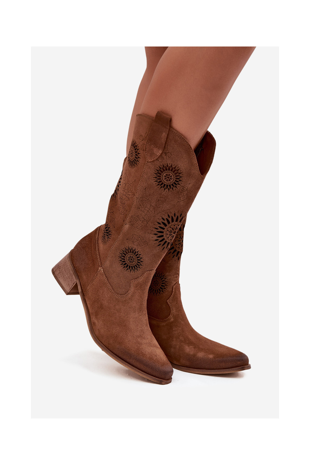 Sieviešu augstie zamša zābaki ar caurumiem "Zazoo" 3793 brūnā krāsā