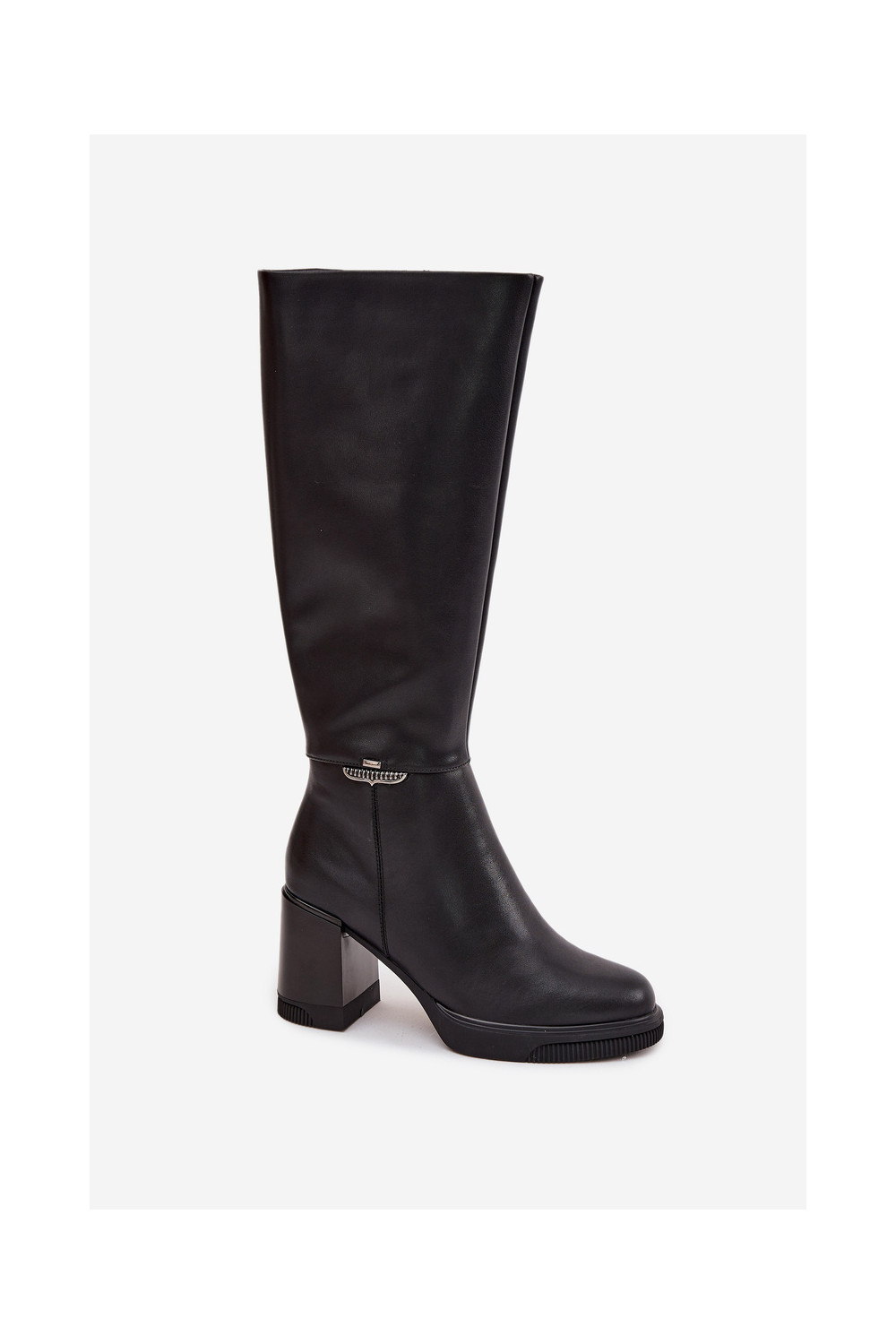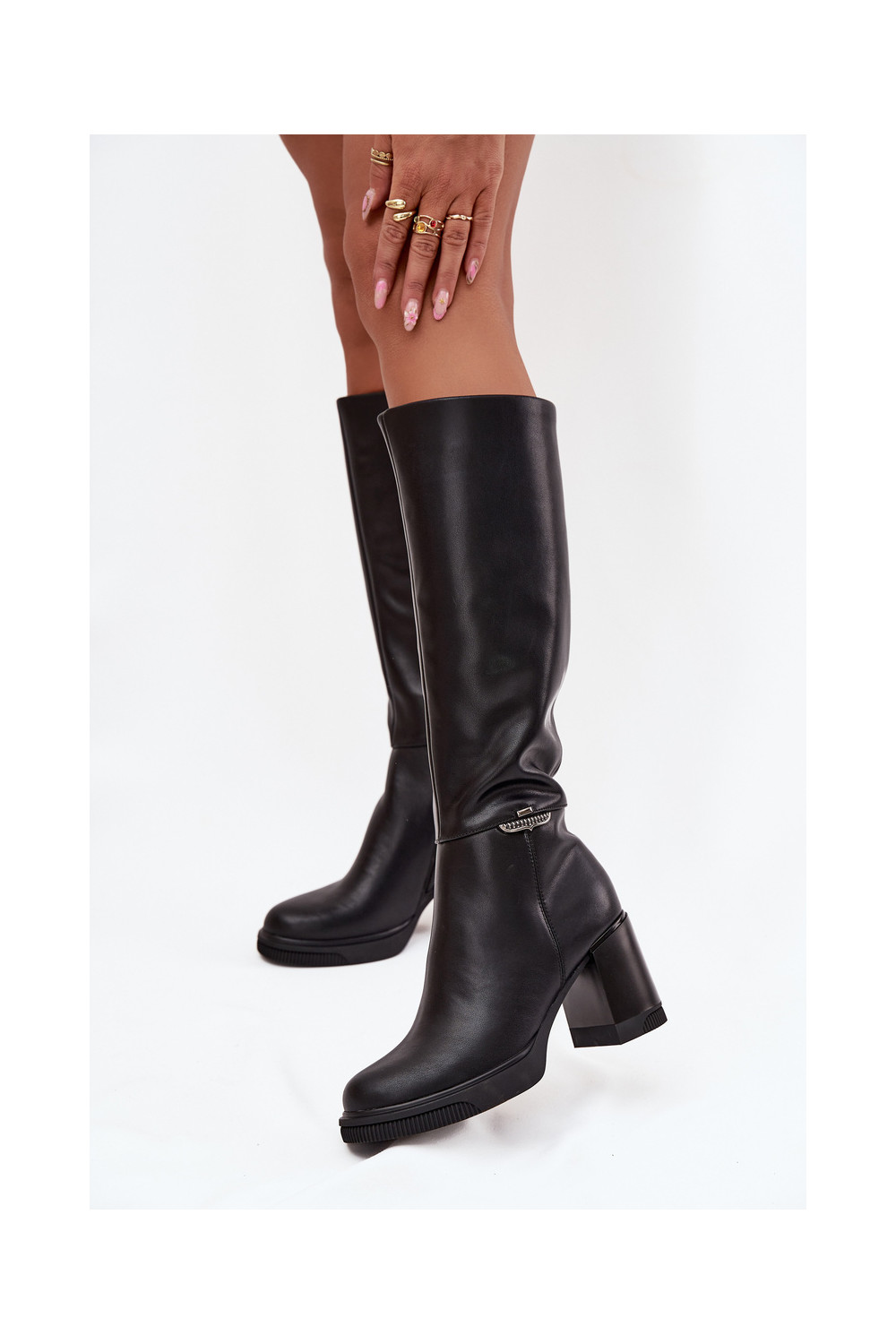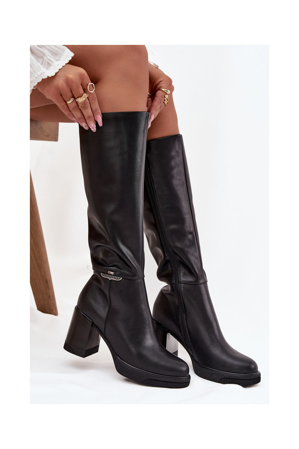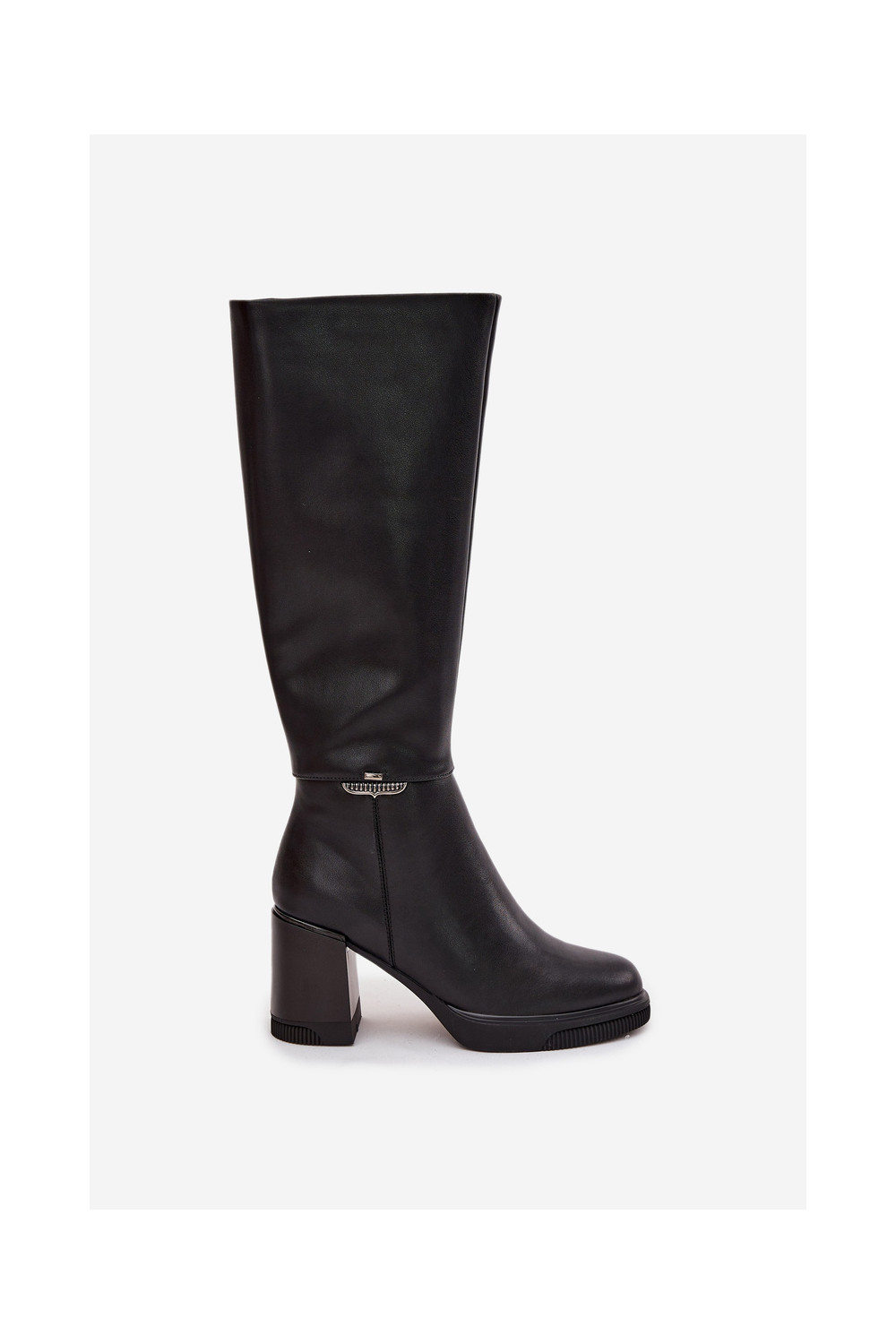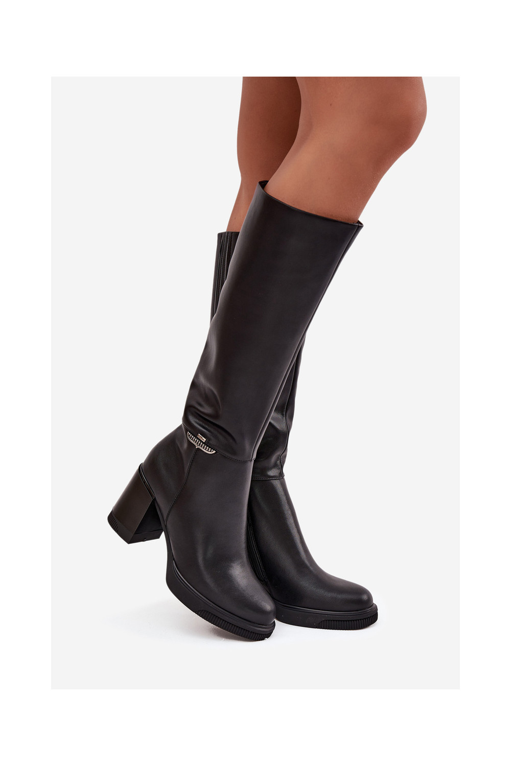 Sieviešu garie zābaki no dabīgās ādas ar papēžiem siltināti Vinceza 66826 melnas krāsā