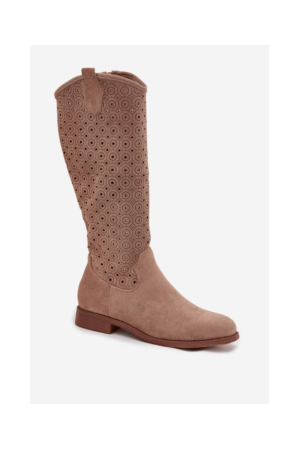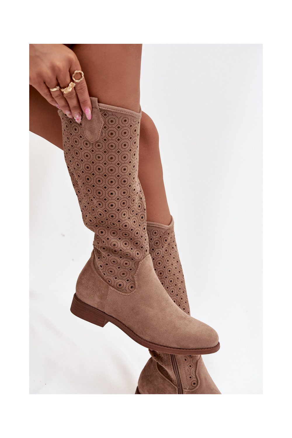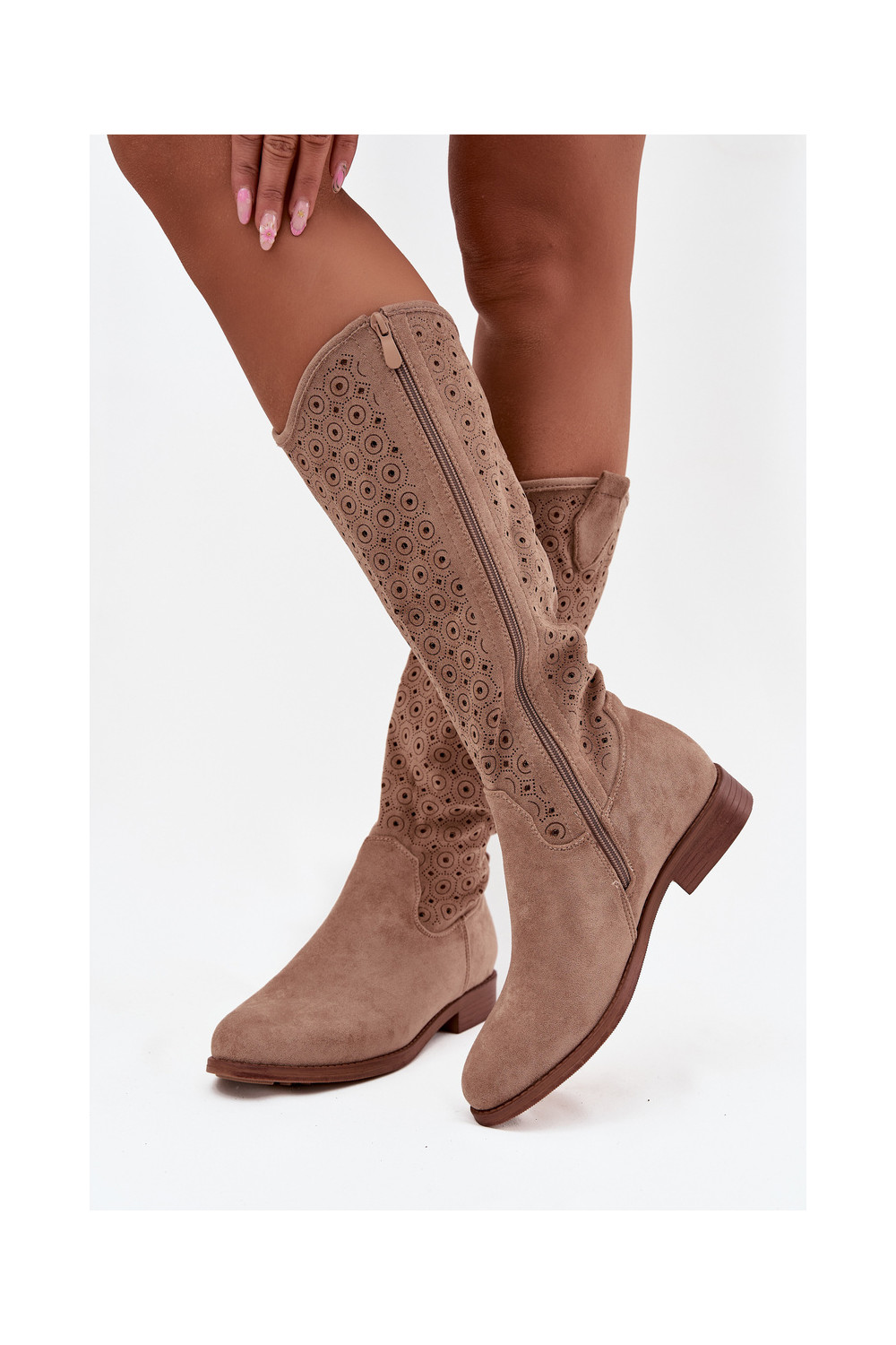 Sieviešu garie zābaki ar platiem papēžiem un caurspīdīgiem elementiem S.Barski HY52-531 smilšu krāsā
