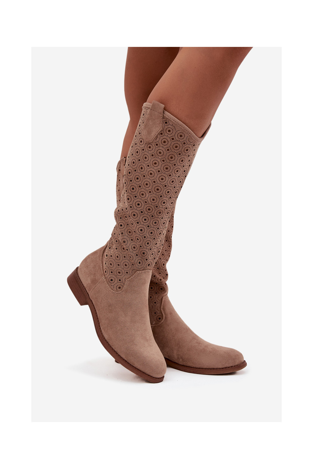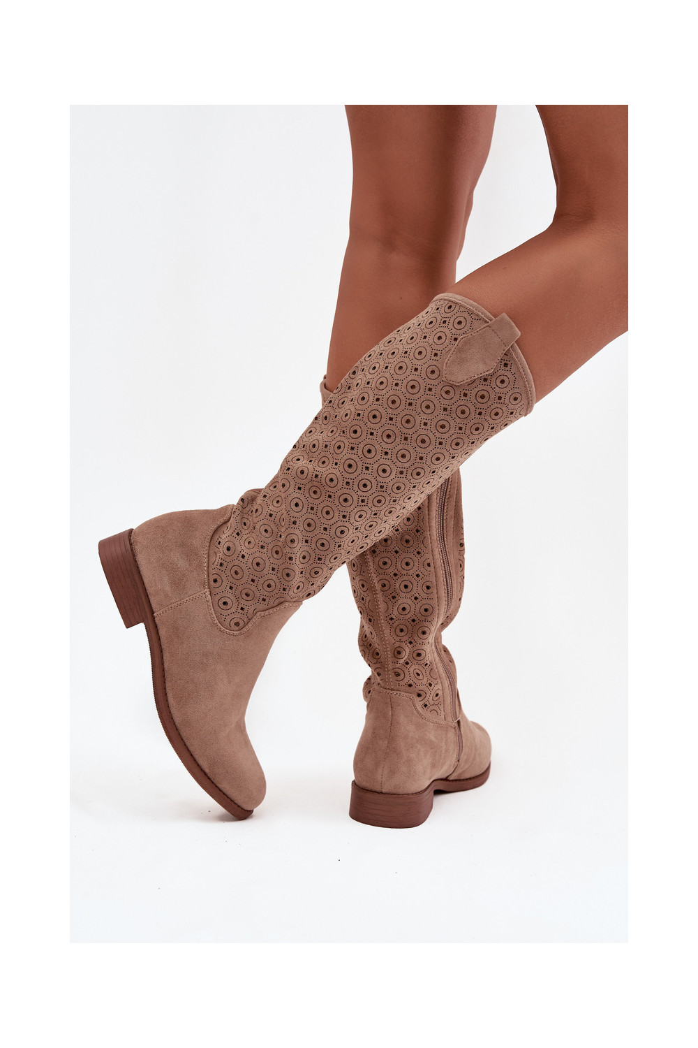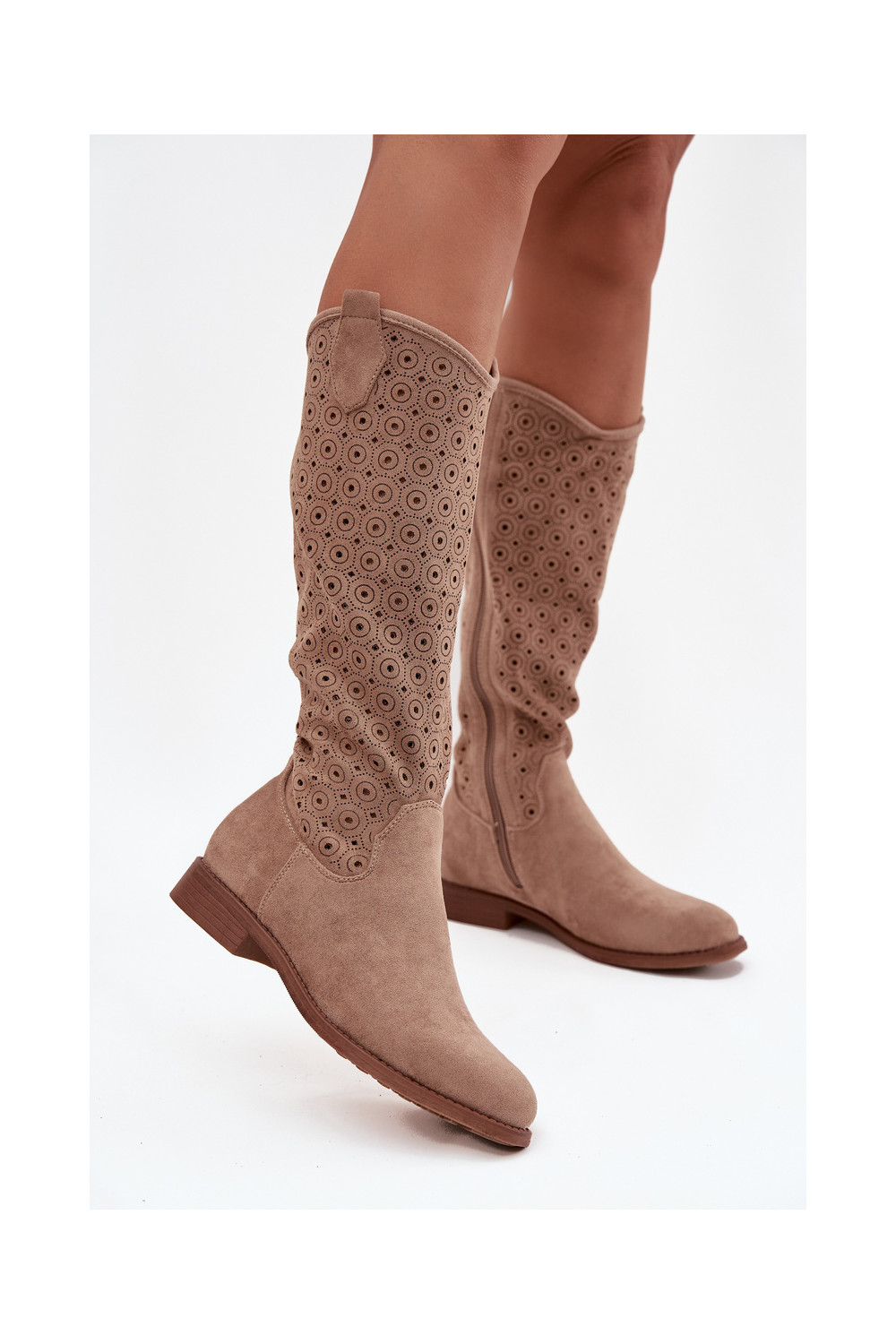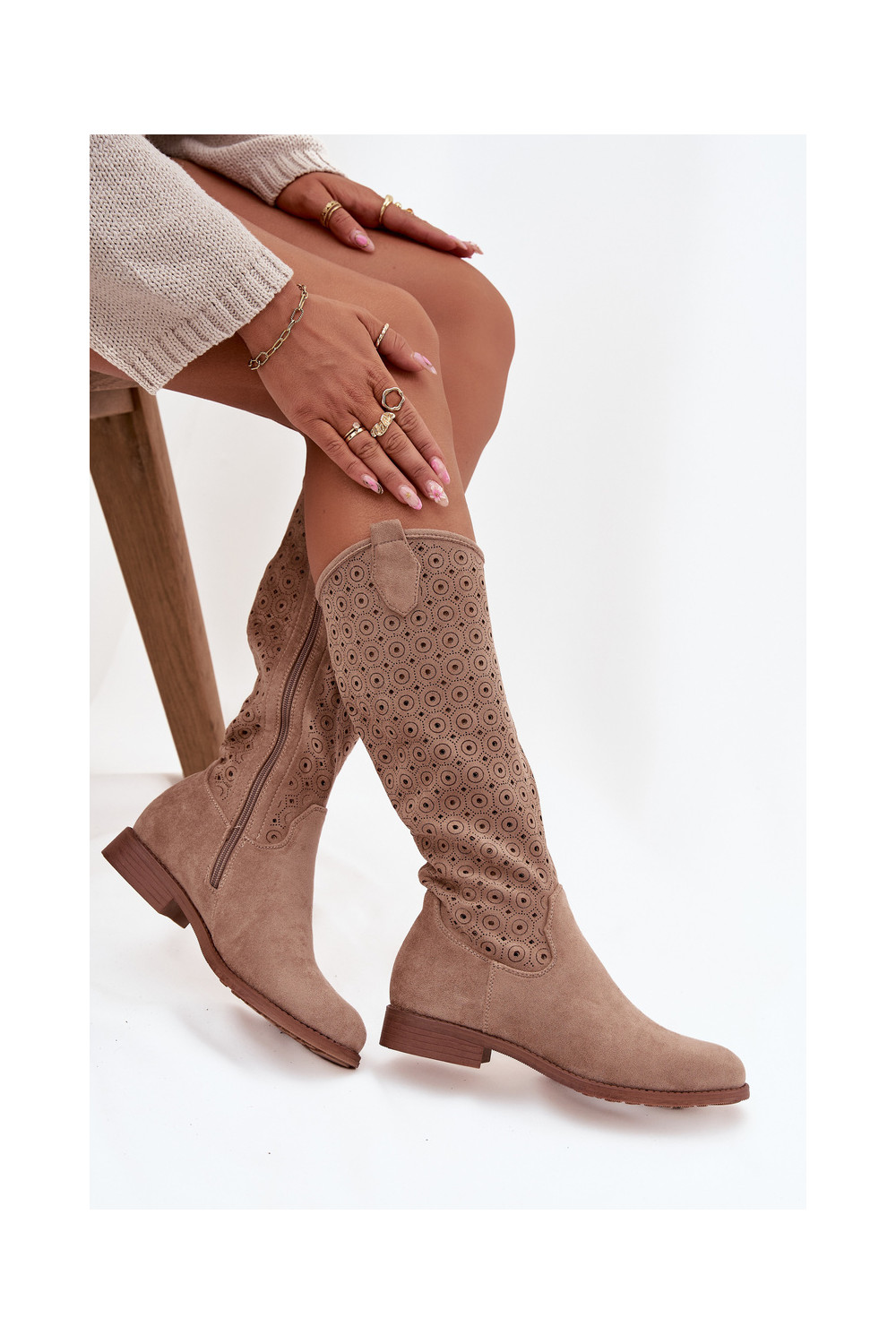 Sieviešu garie zābaki ar platiem papēžiem un caurspīdīgiem elementiem S.Barski HY52-531 smilšu krāsā