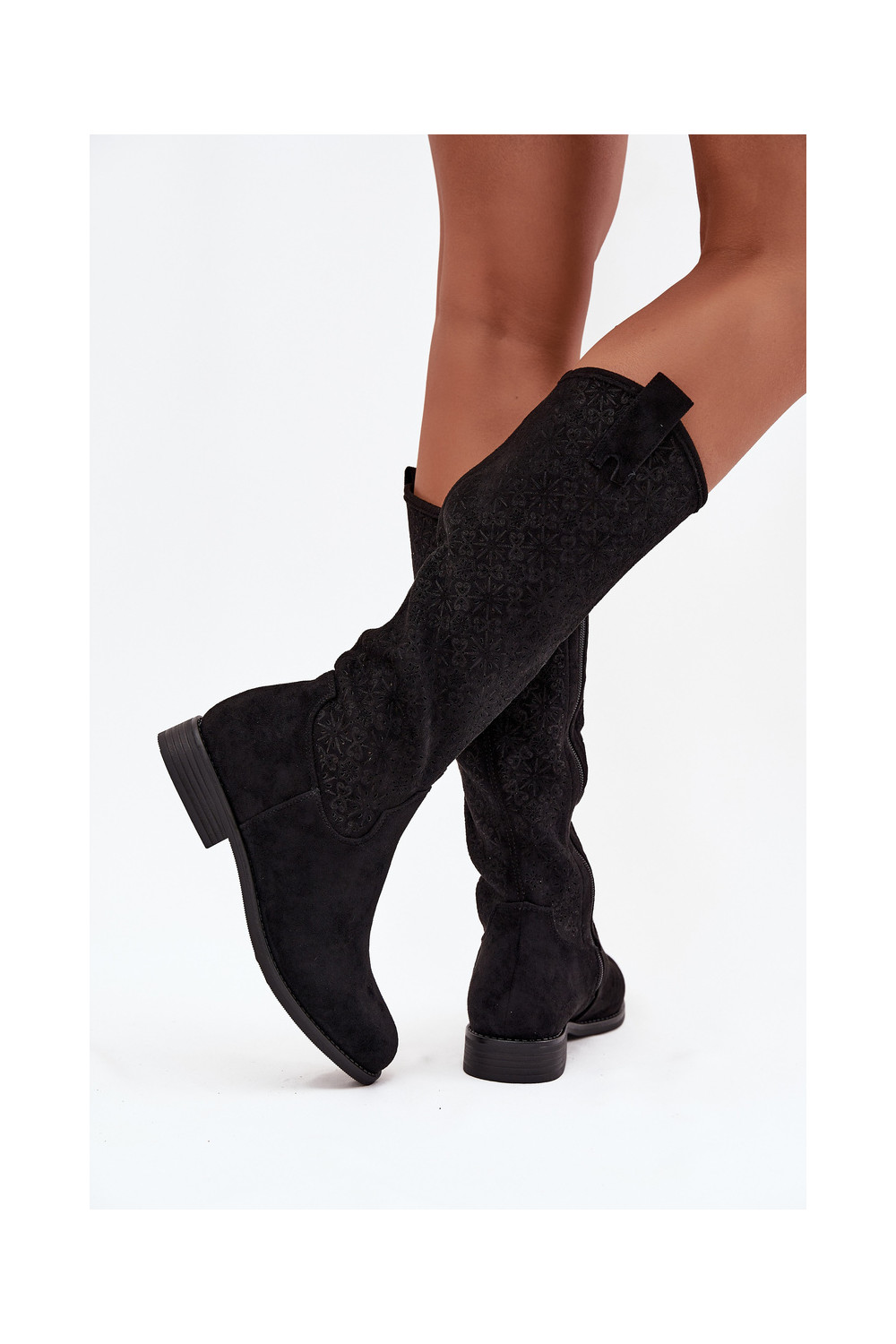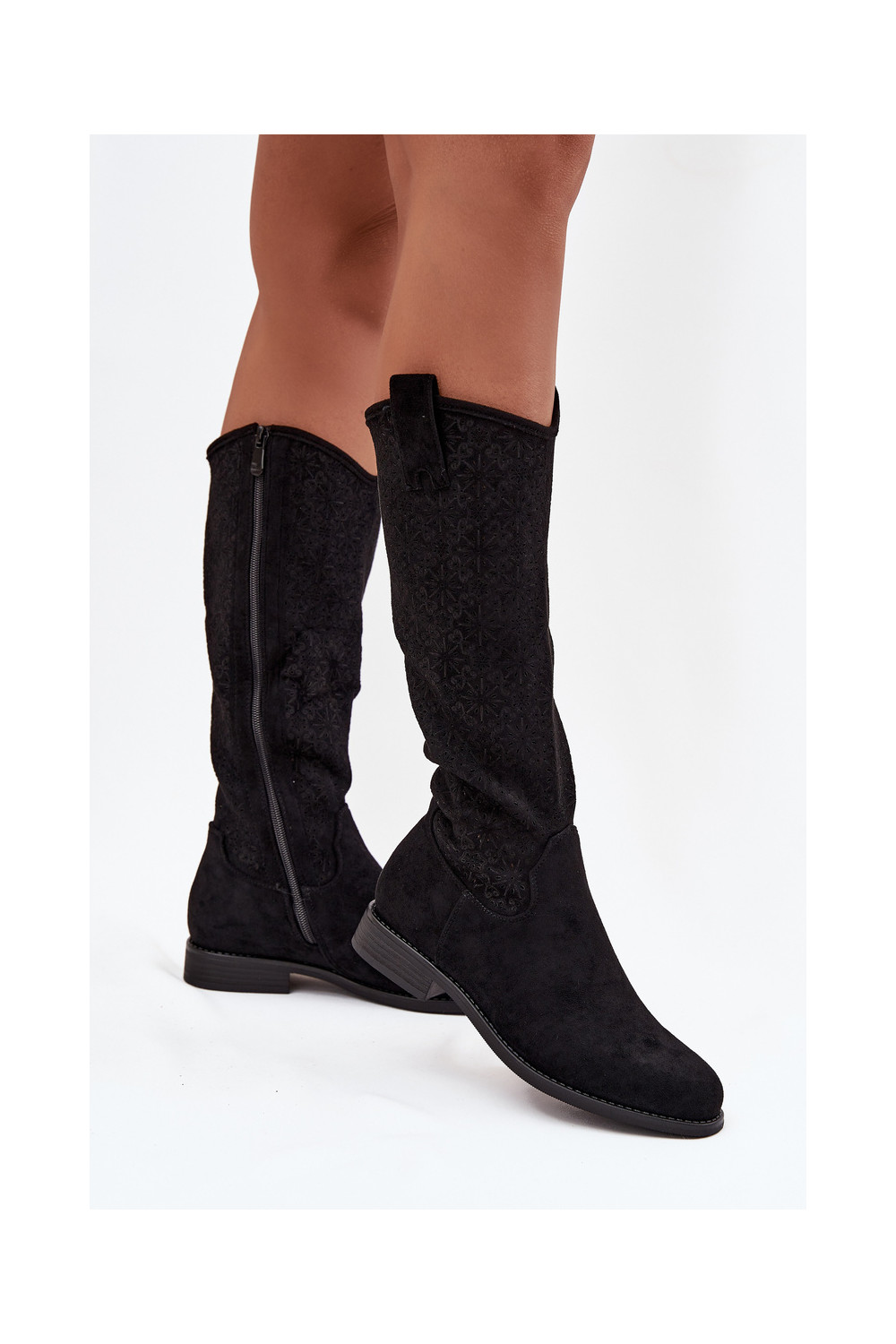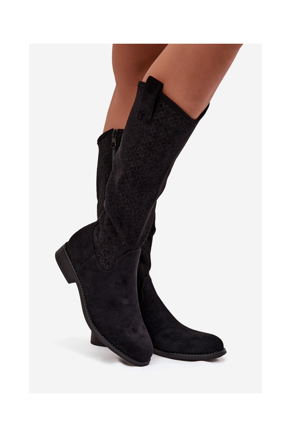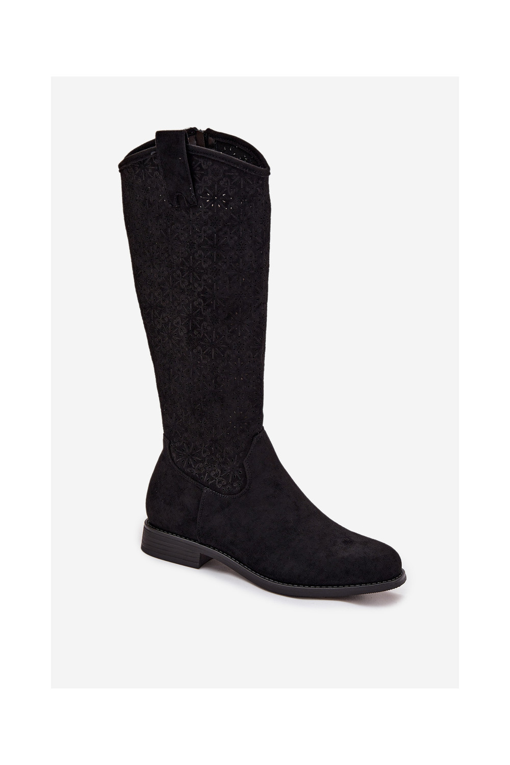 Sieviešu garie zābaki ar caurspīdīgiem elementiem un platiem papēžiem S.Barski HY52-534 melnā krāsā