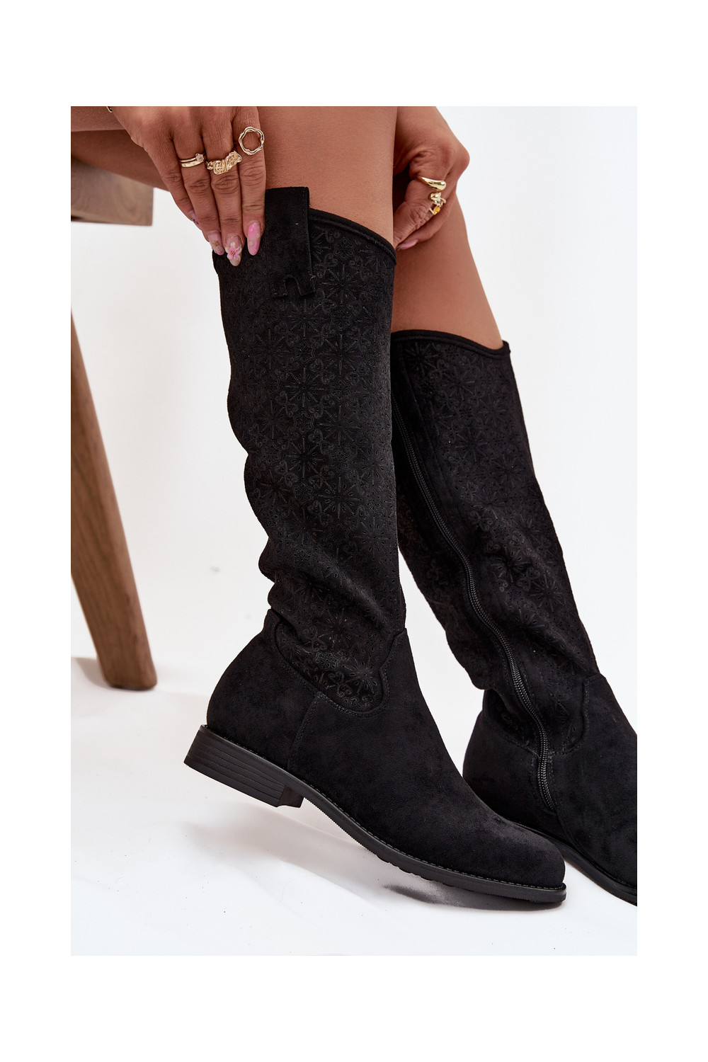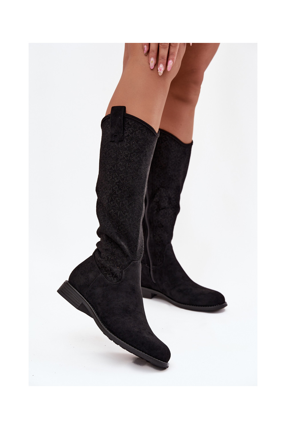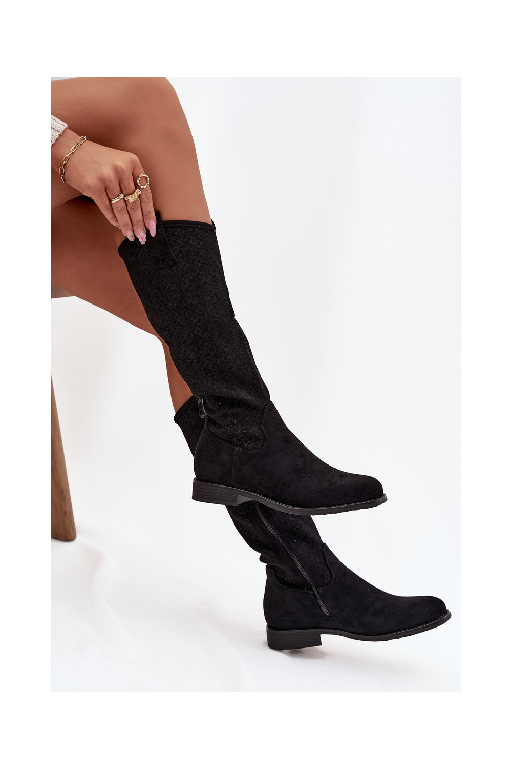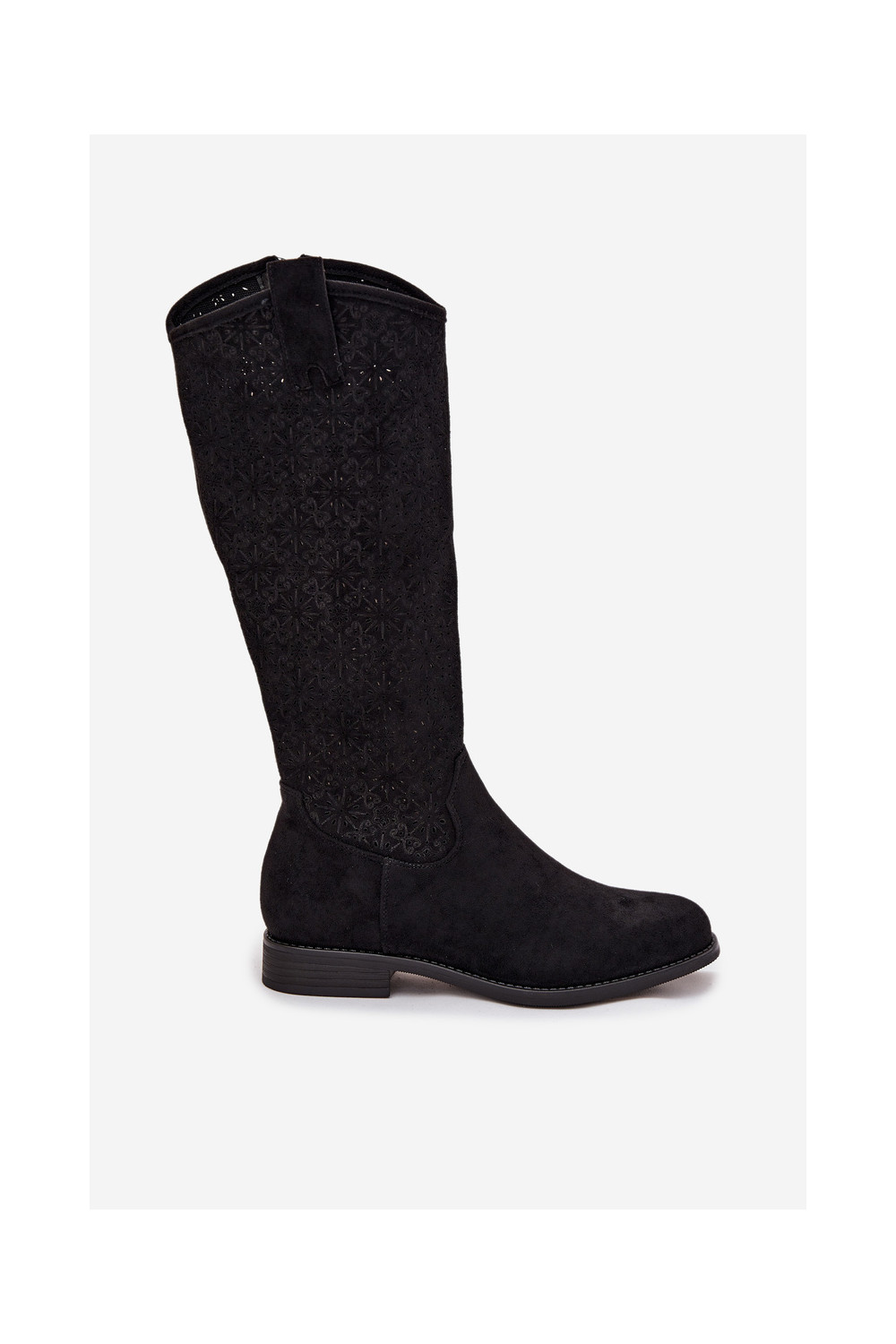 Sieviešu garie zābaki ar caurspīdīgiem elementiem un platiem papēžiem S.Barski HY52-534 melnā krāsā