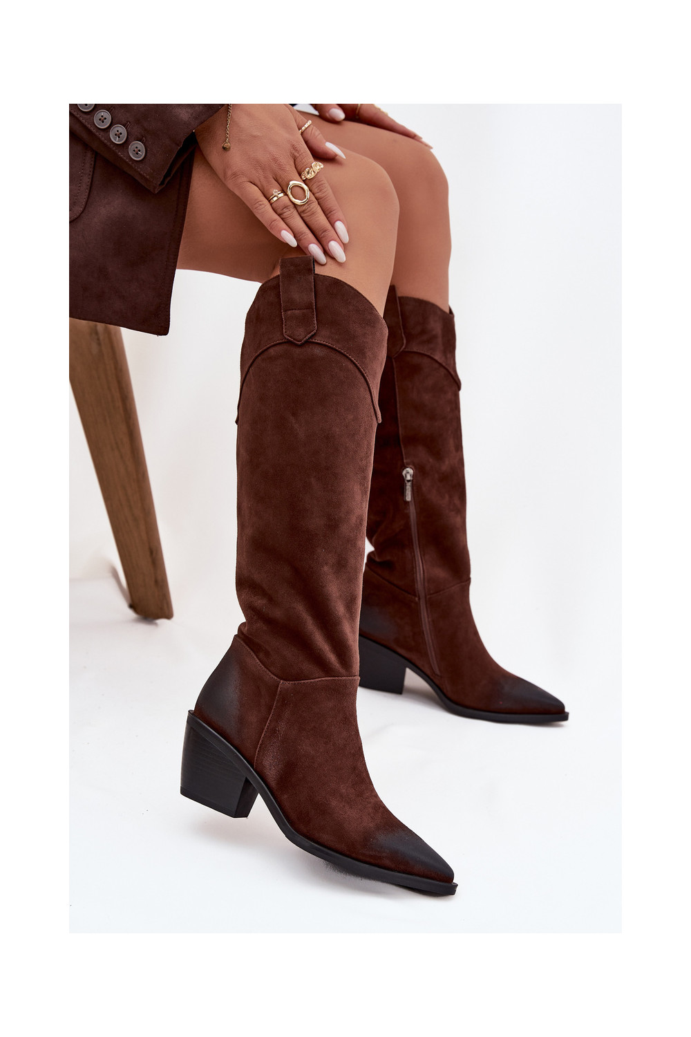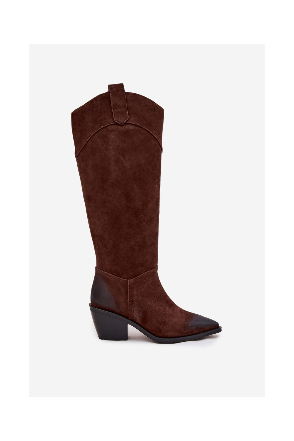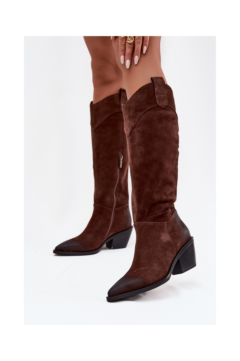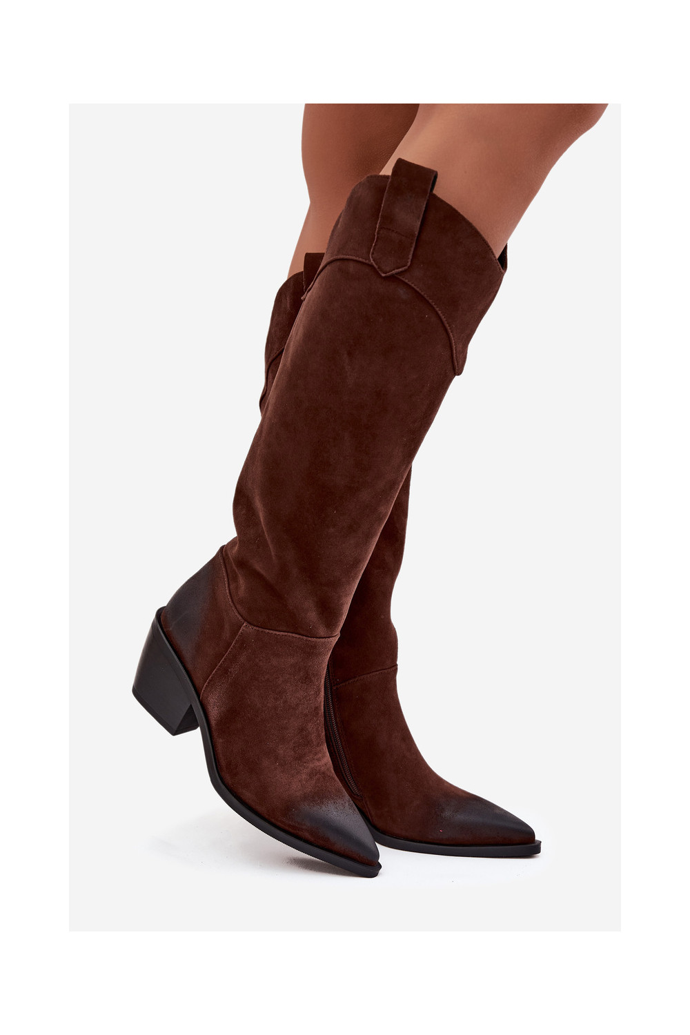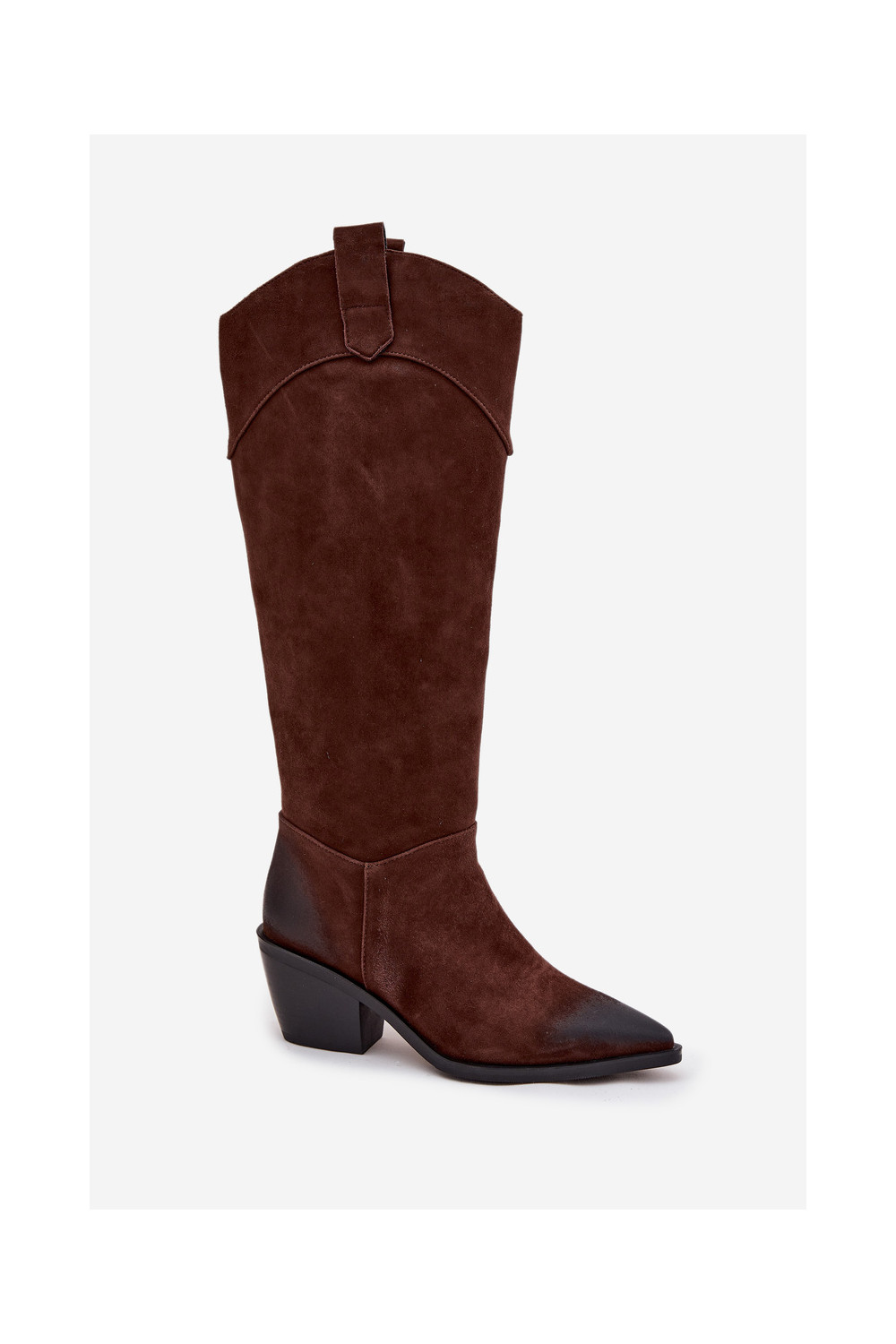 Kovboju stila sieviešu garie zābaki ar papēžiem no dabīgas zamšādas Artiker 57C0230 brūnā krāsā