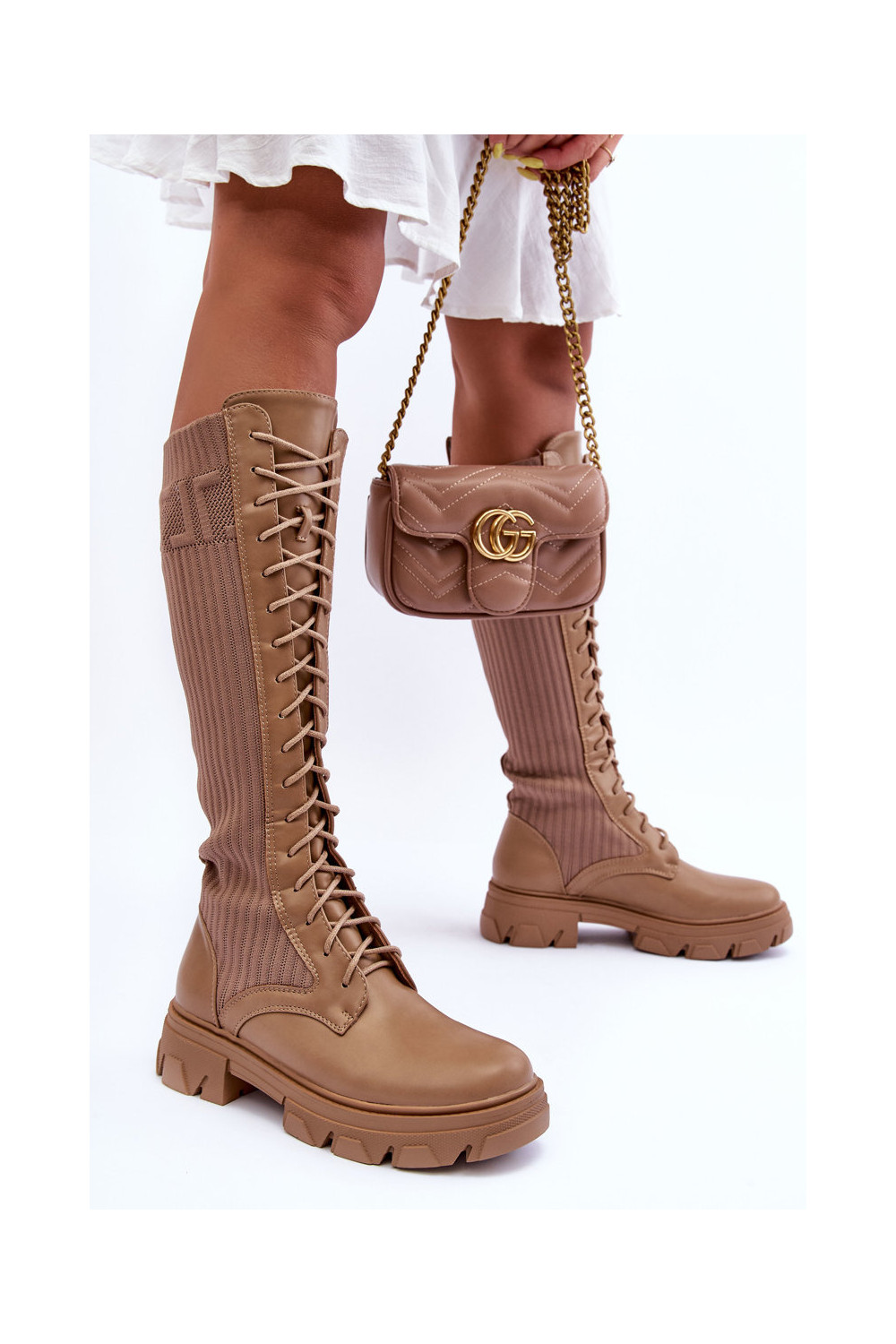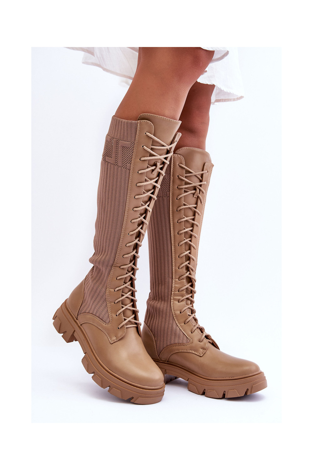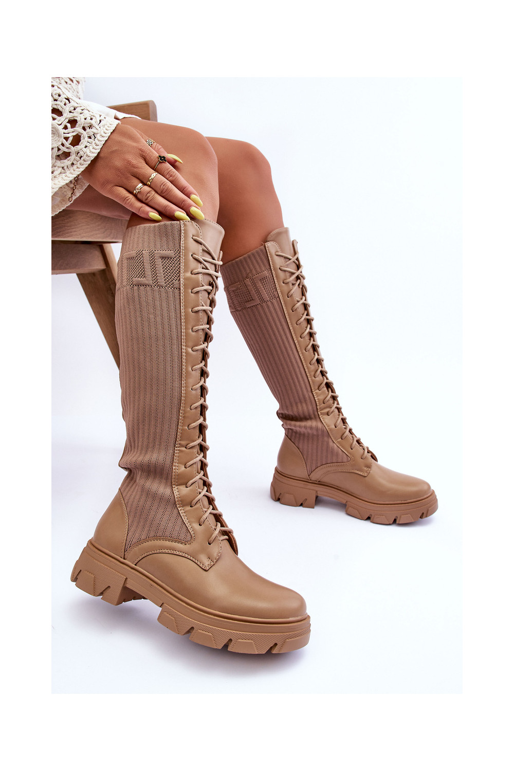 Smilšu krāsas garie zābaki ar plašiem papēžiem un zeķu tipa uzmavu Itona