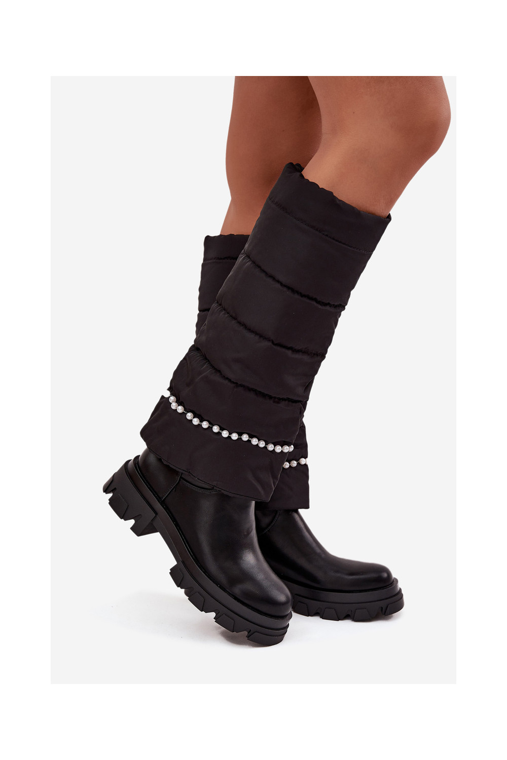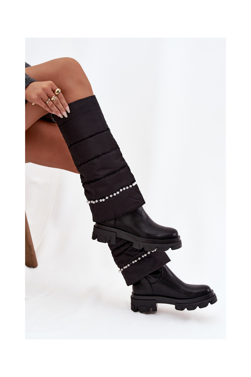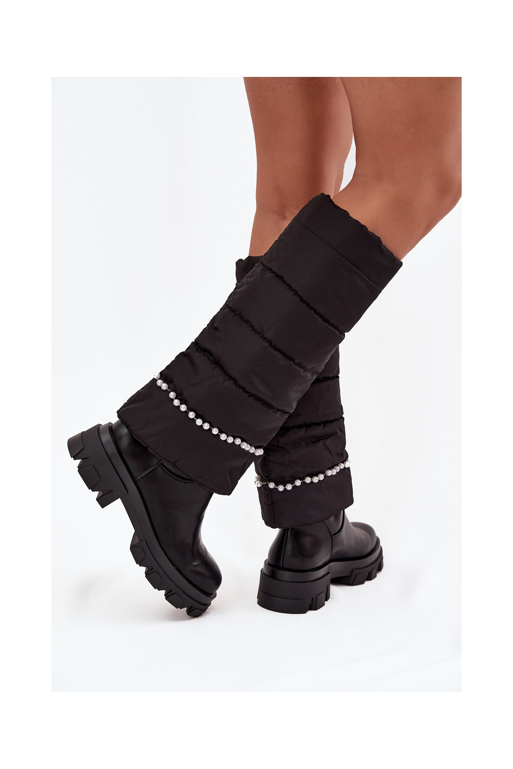 Sieviešu garie zābaki un pērlītēm melnas krāsas Irvette