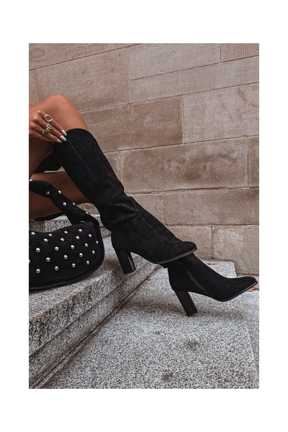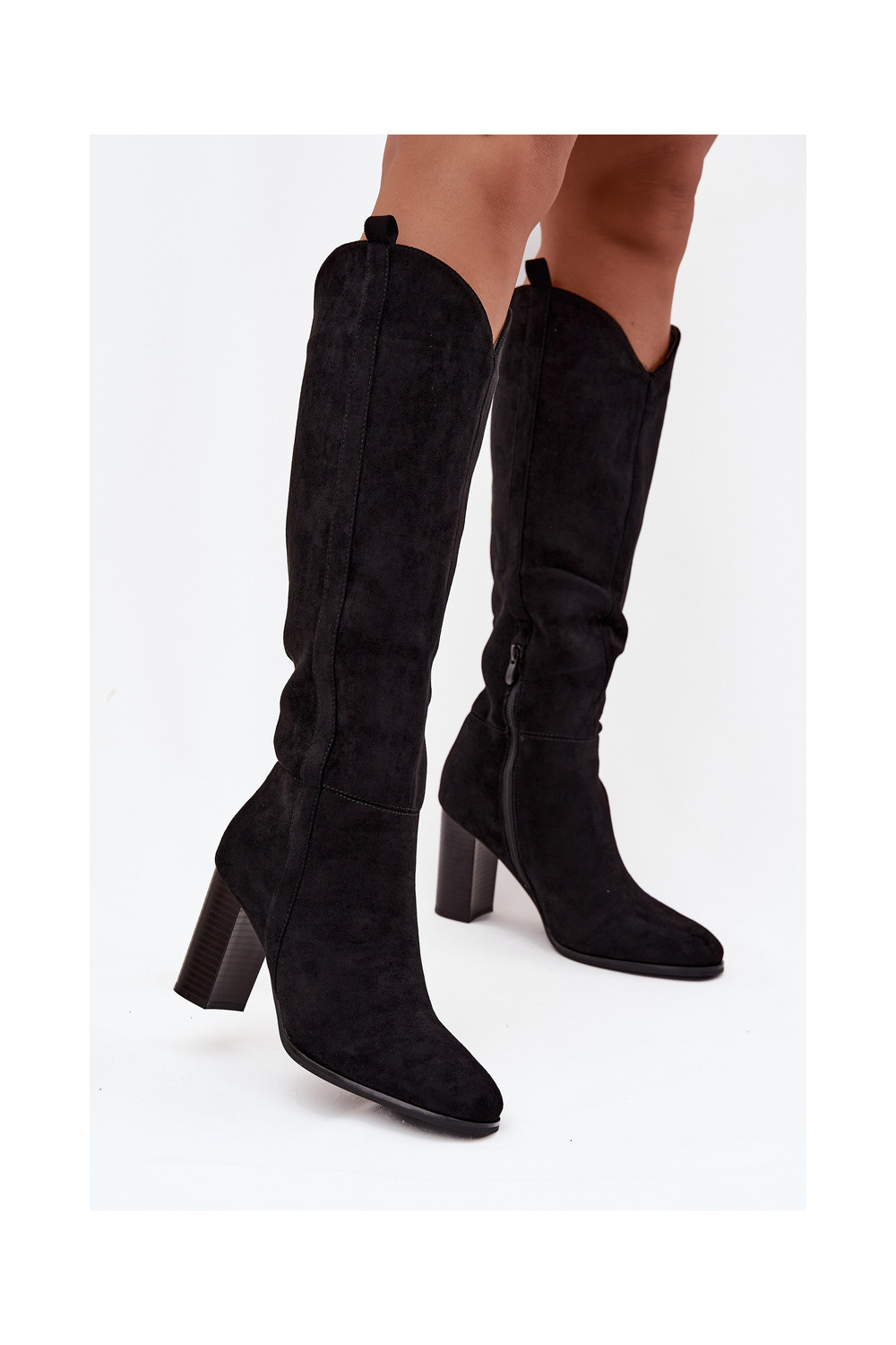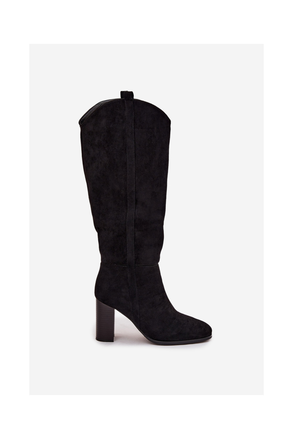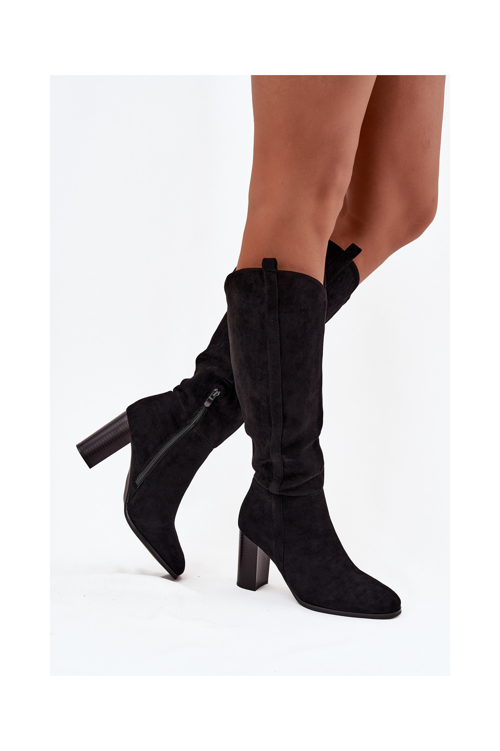 sieviešu garie zābaki ar papēdiEko zamšādau melnas krāsas Prisca
