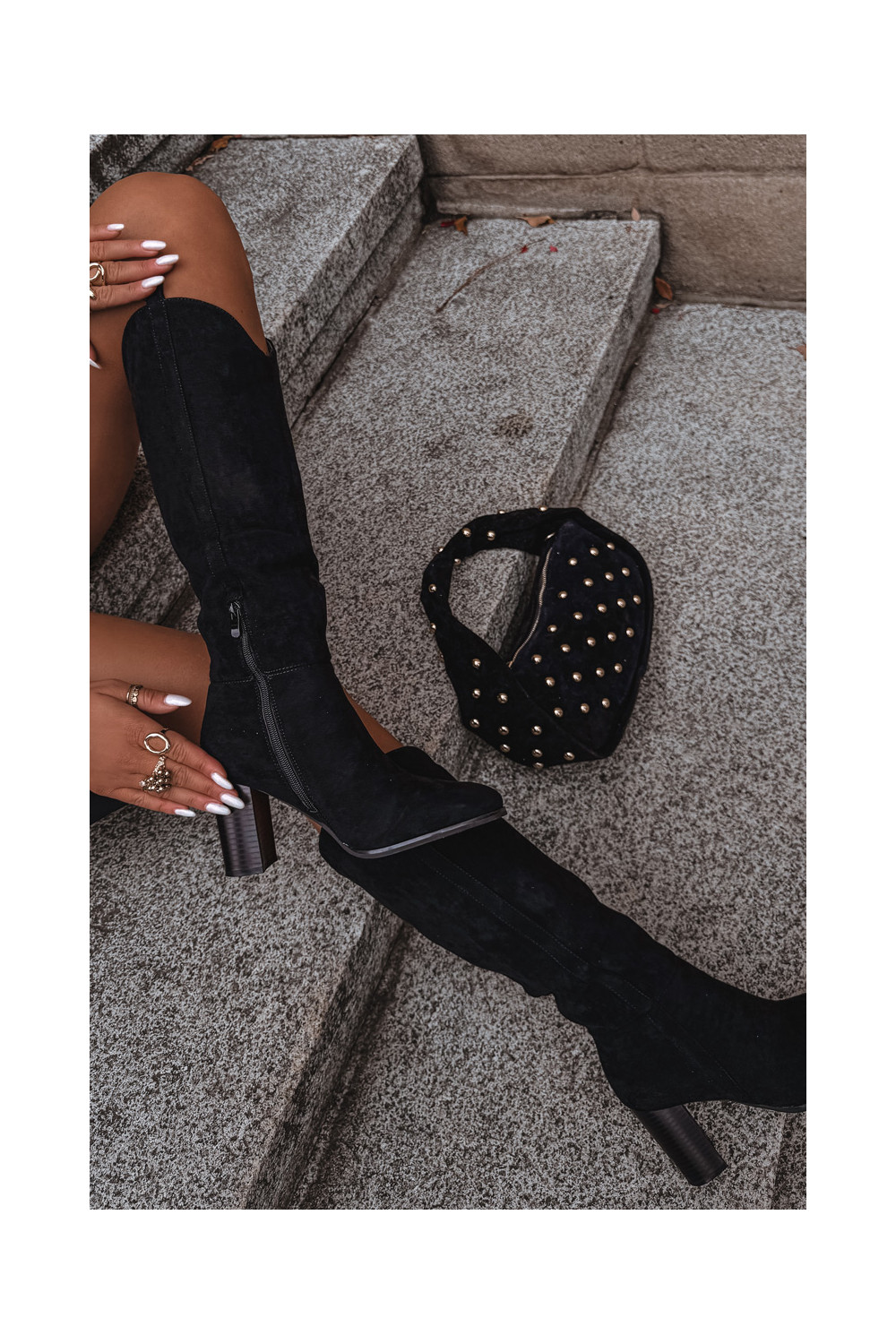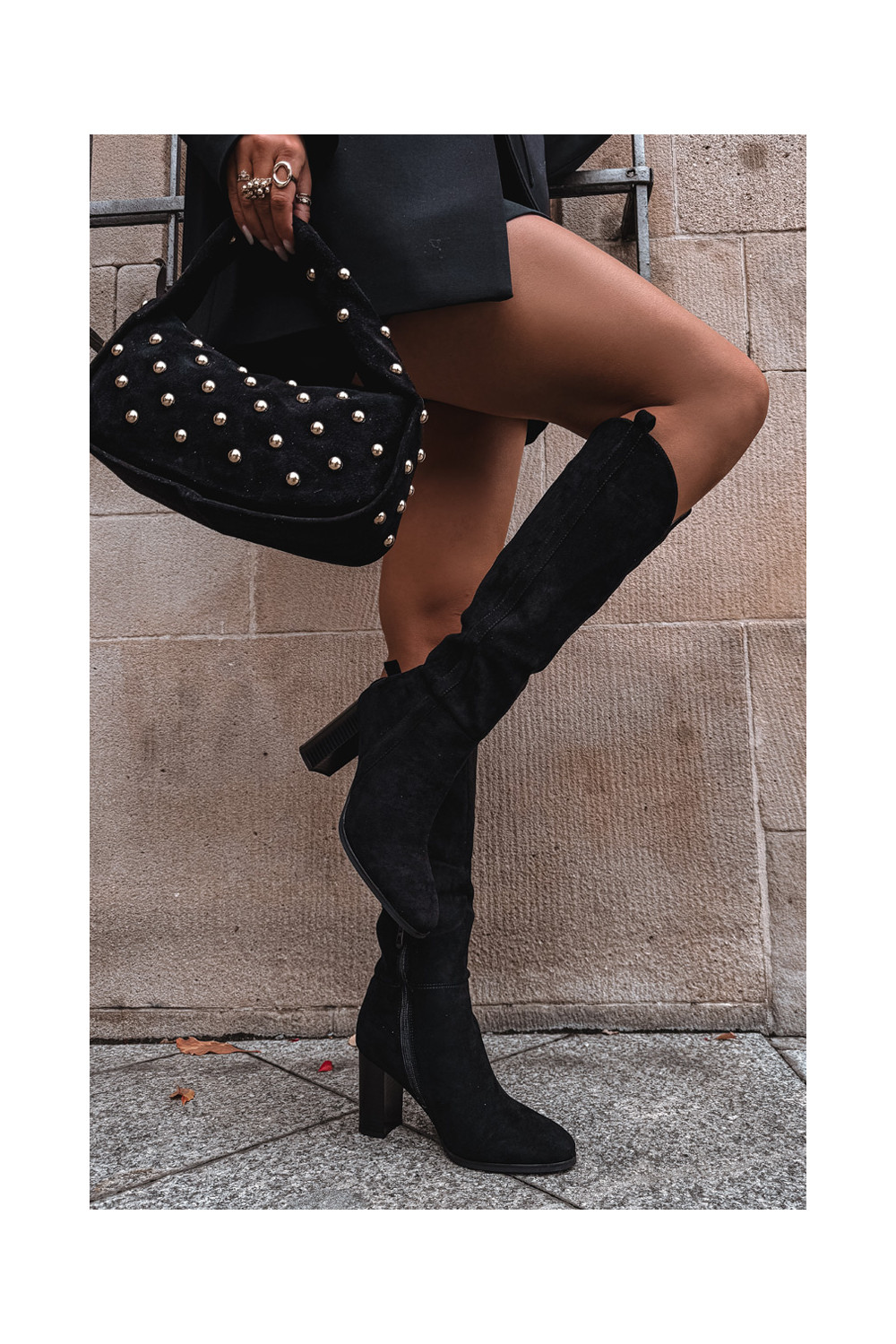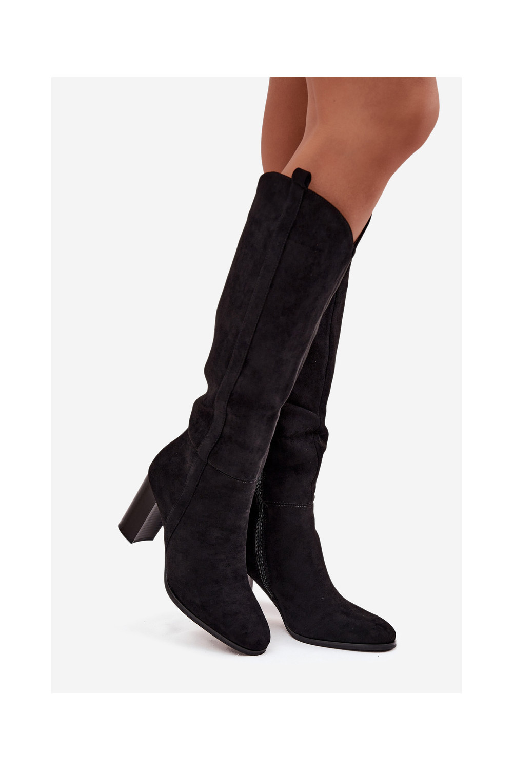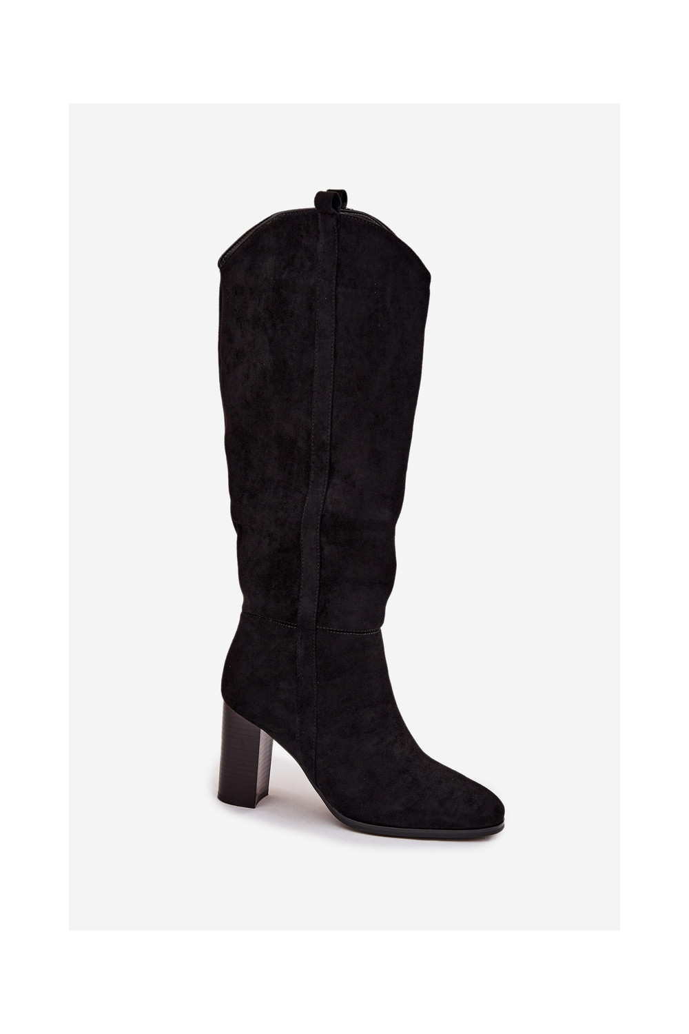 sieviešu garie zābaki ar papēdiEko zamšādau melnas krāsas Prisca