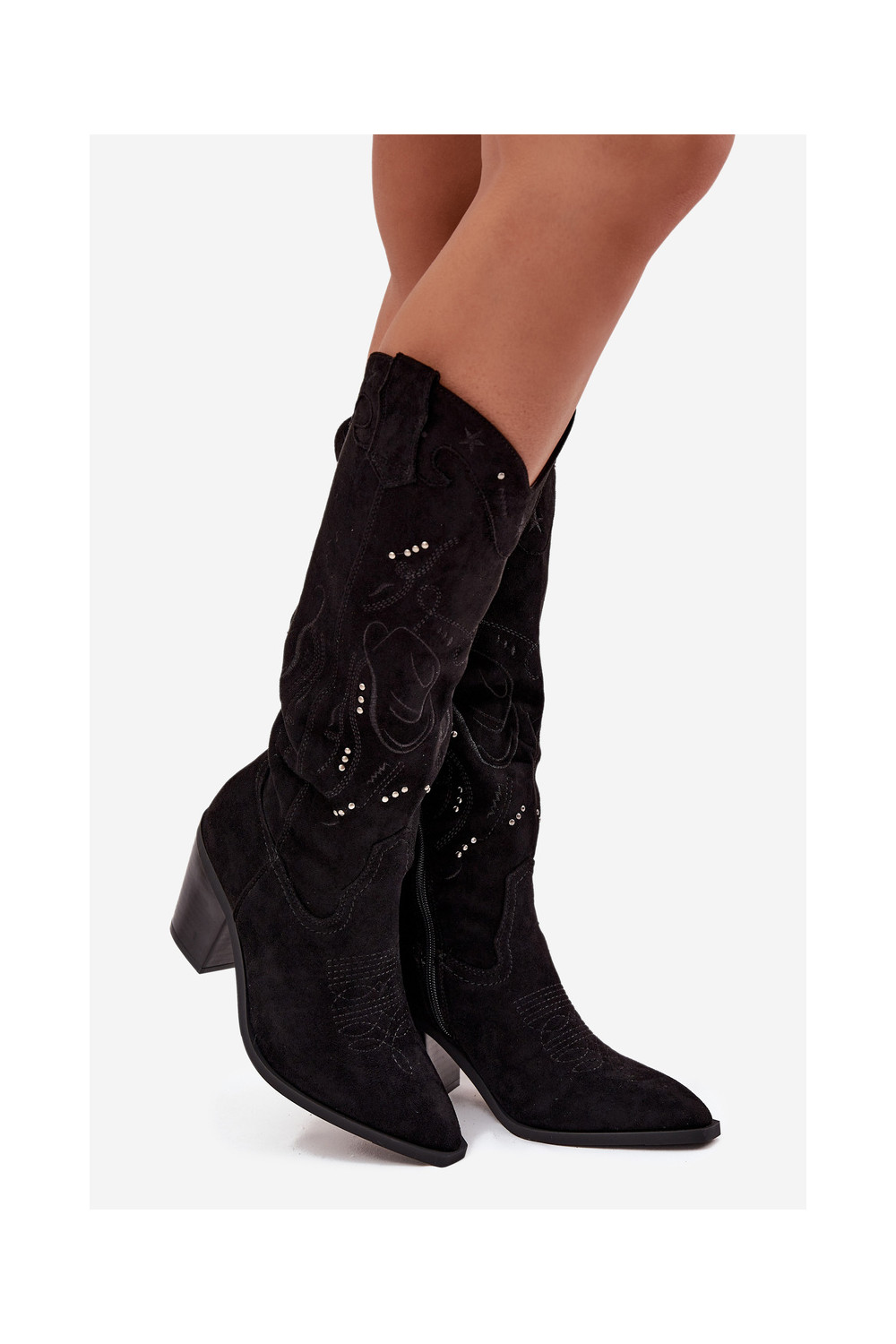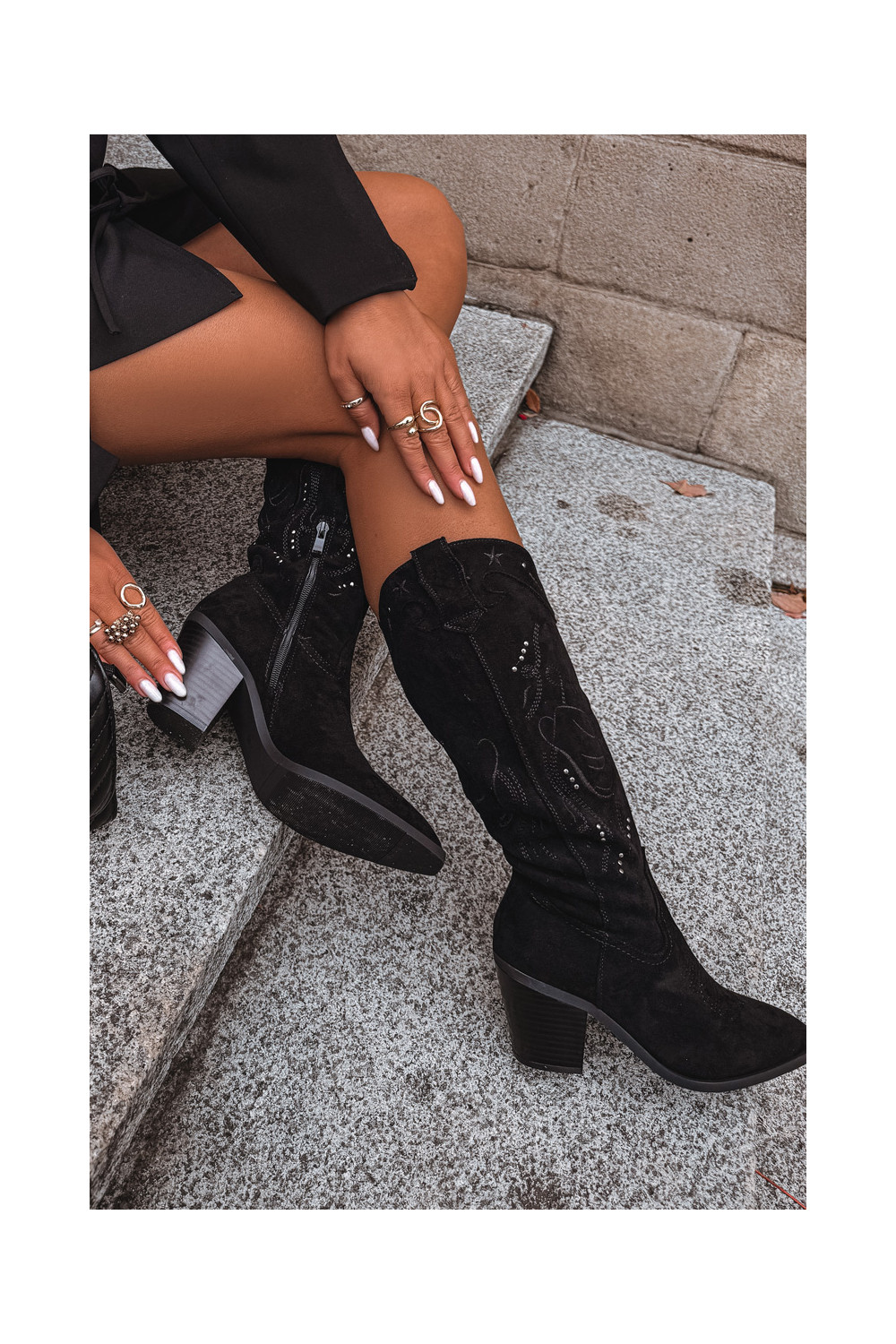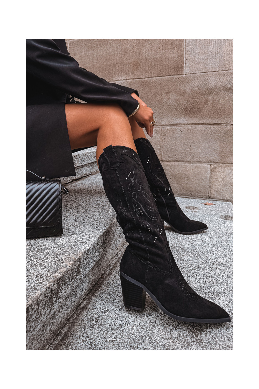 garie zābaki Kovboju zābaki Sieviešu ar papēdiEko zamšādau melnas krāsas Coretta