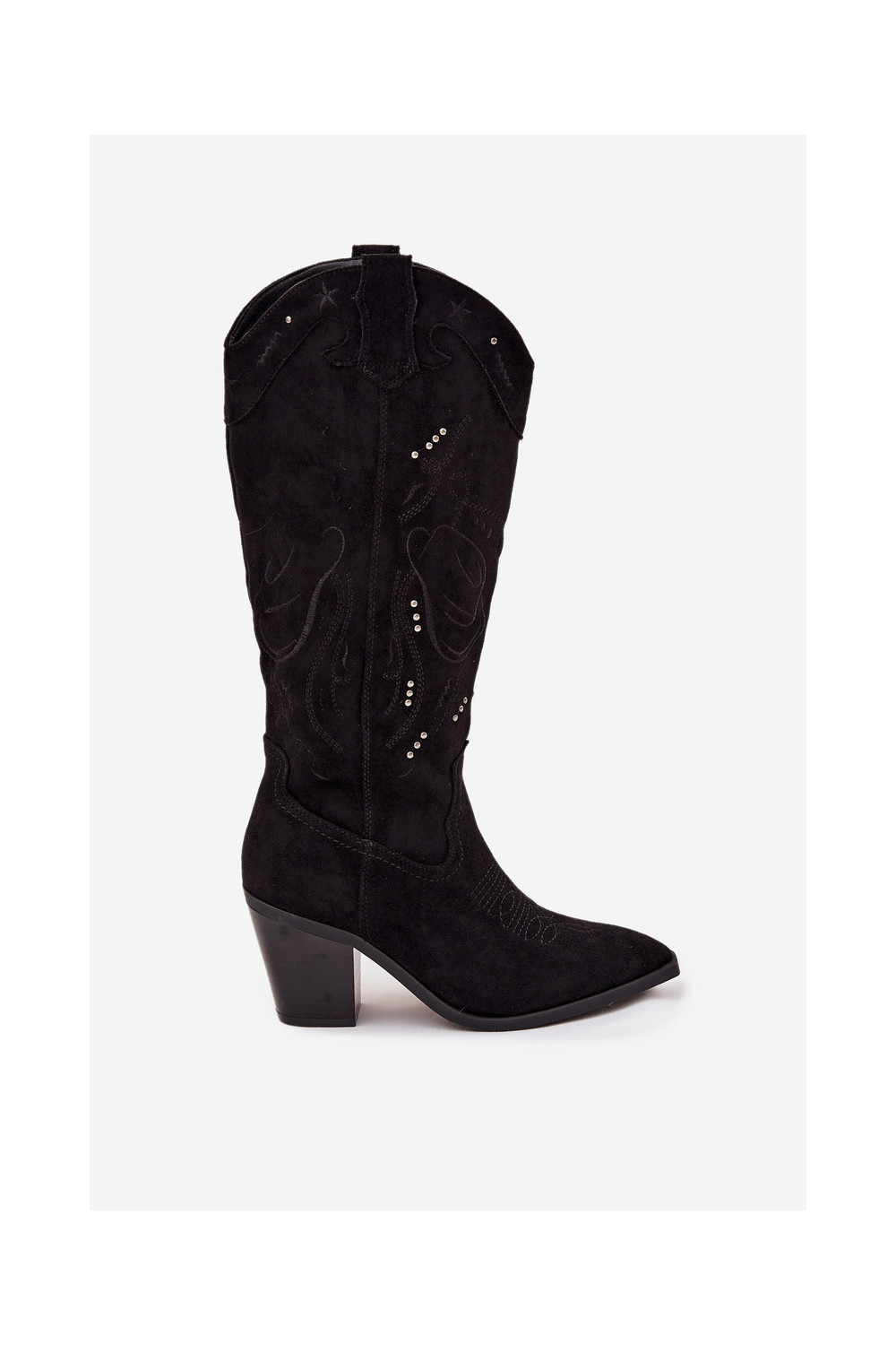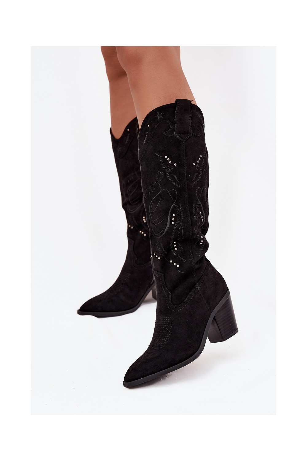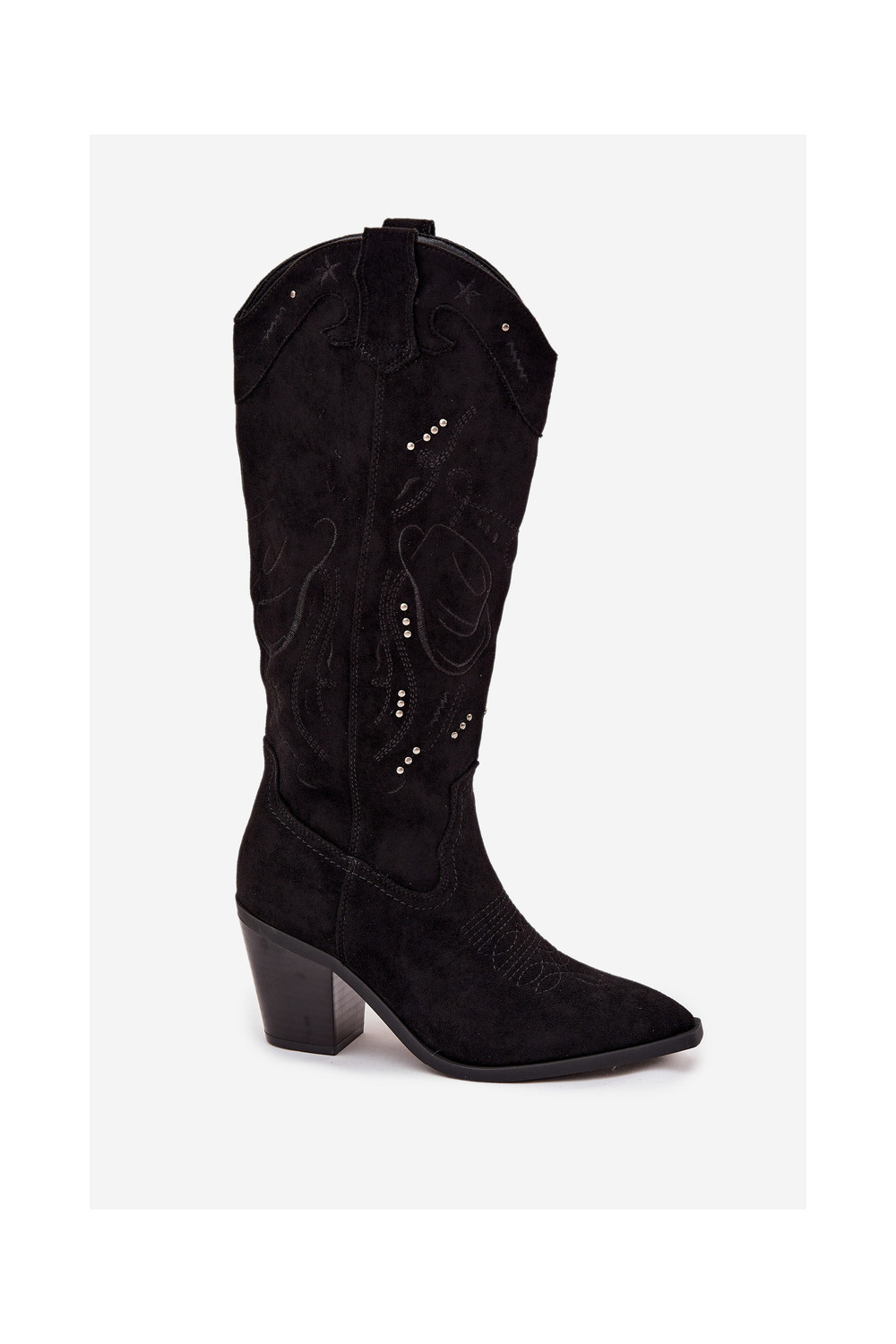 garie zābaki Kovboju zābaki Sieviešu ar papēdiEko zamšādau melnas krāsas Coretta