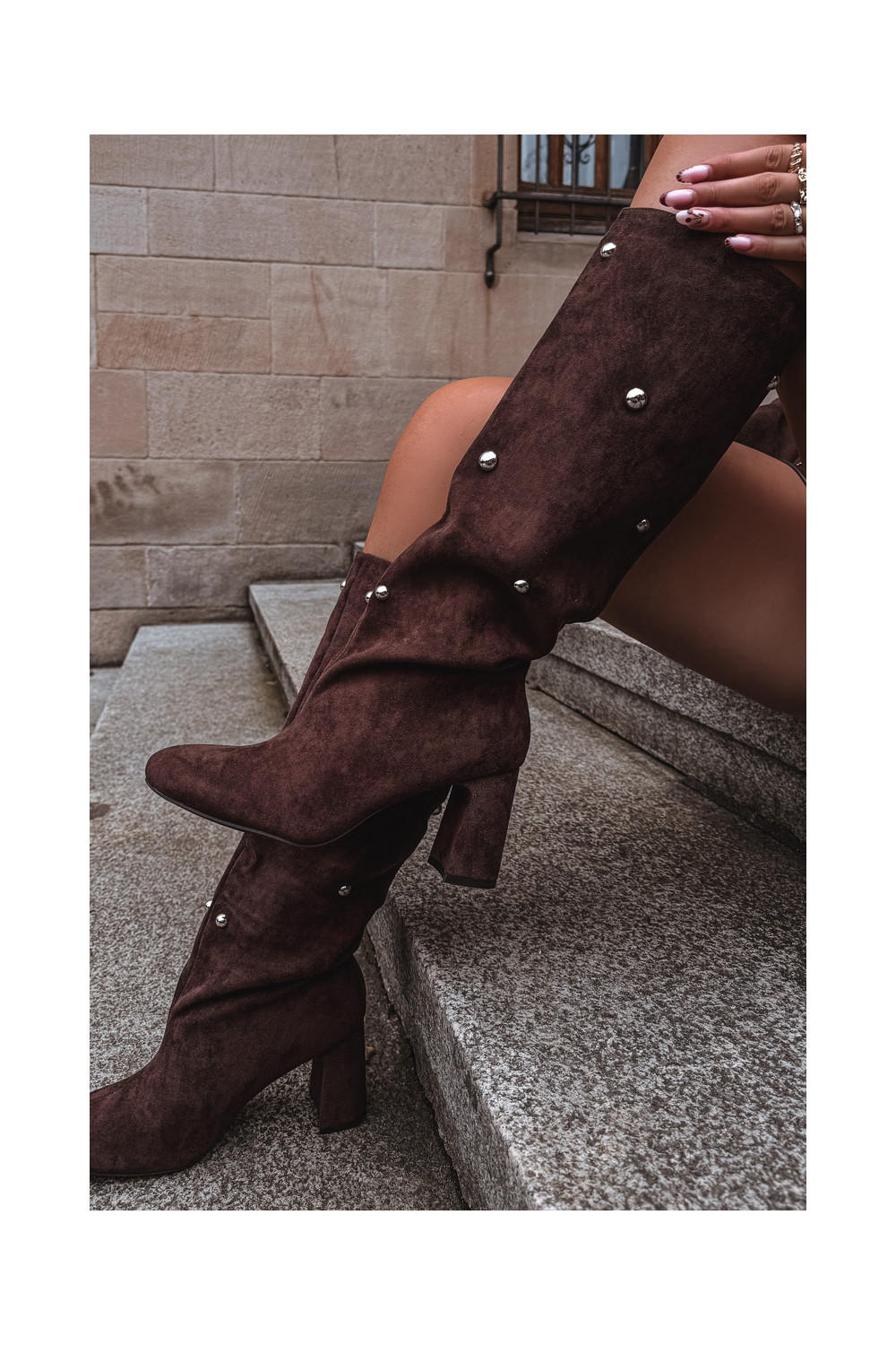 Sieviešu garie zābaki ar papēdi Ar greznui Detalami CzekoladoIne Lucinda