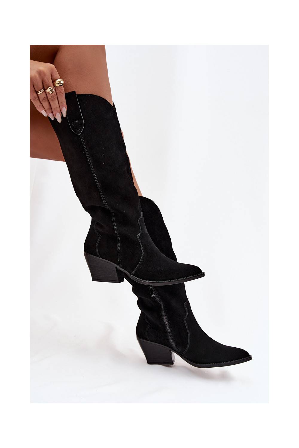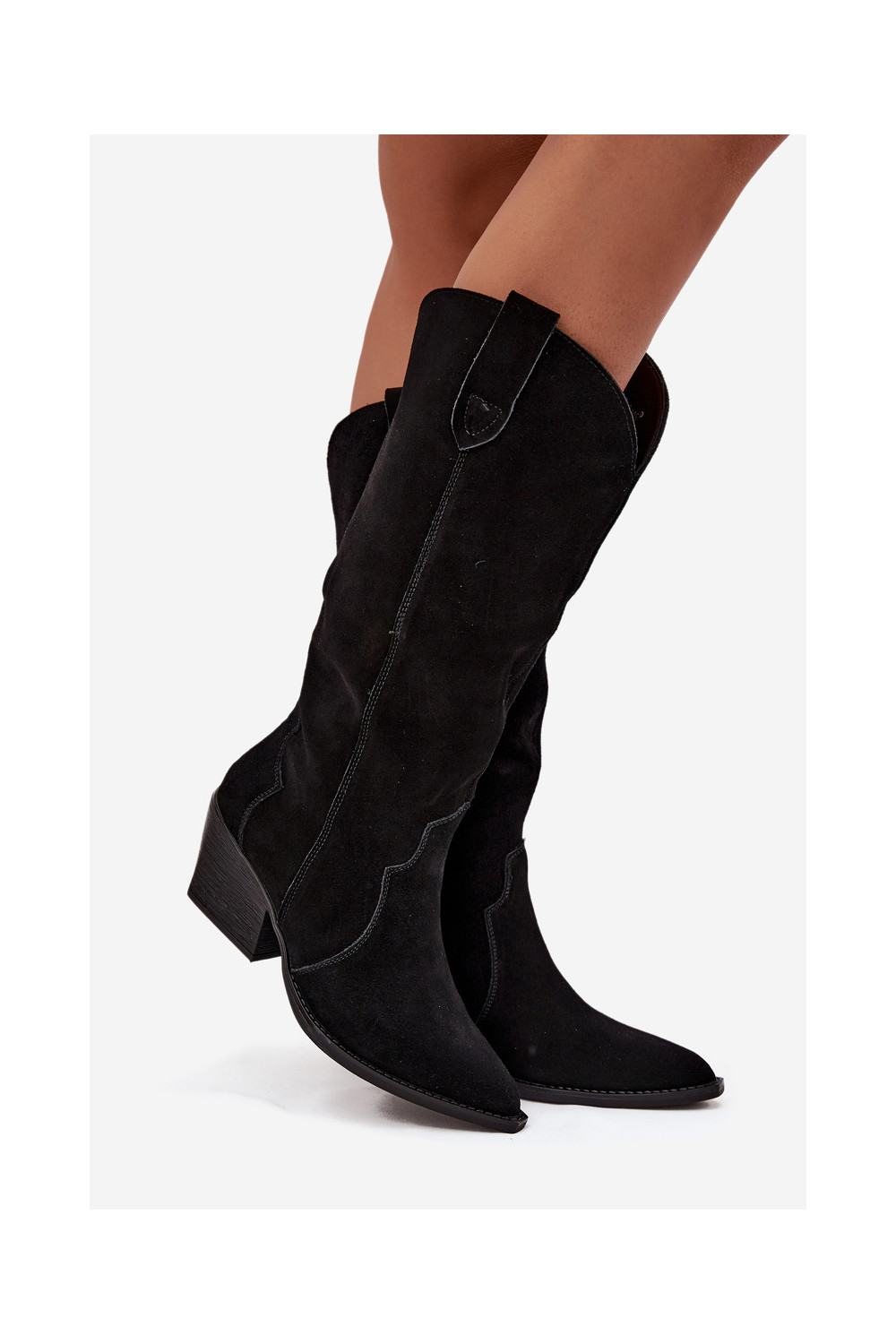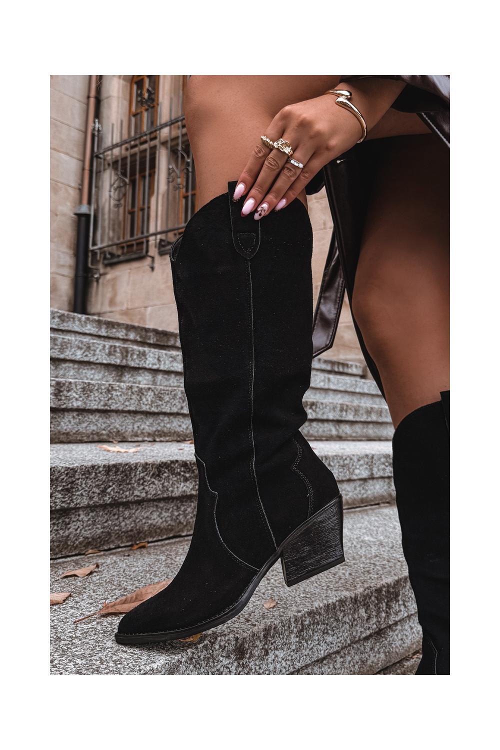 Āda zamšādas garie zābaki Kovboju zābaki Sieviešu siltināti melnas krāsas Urselle