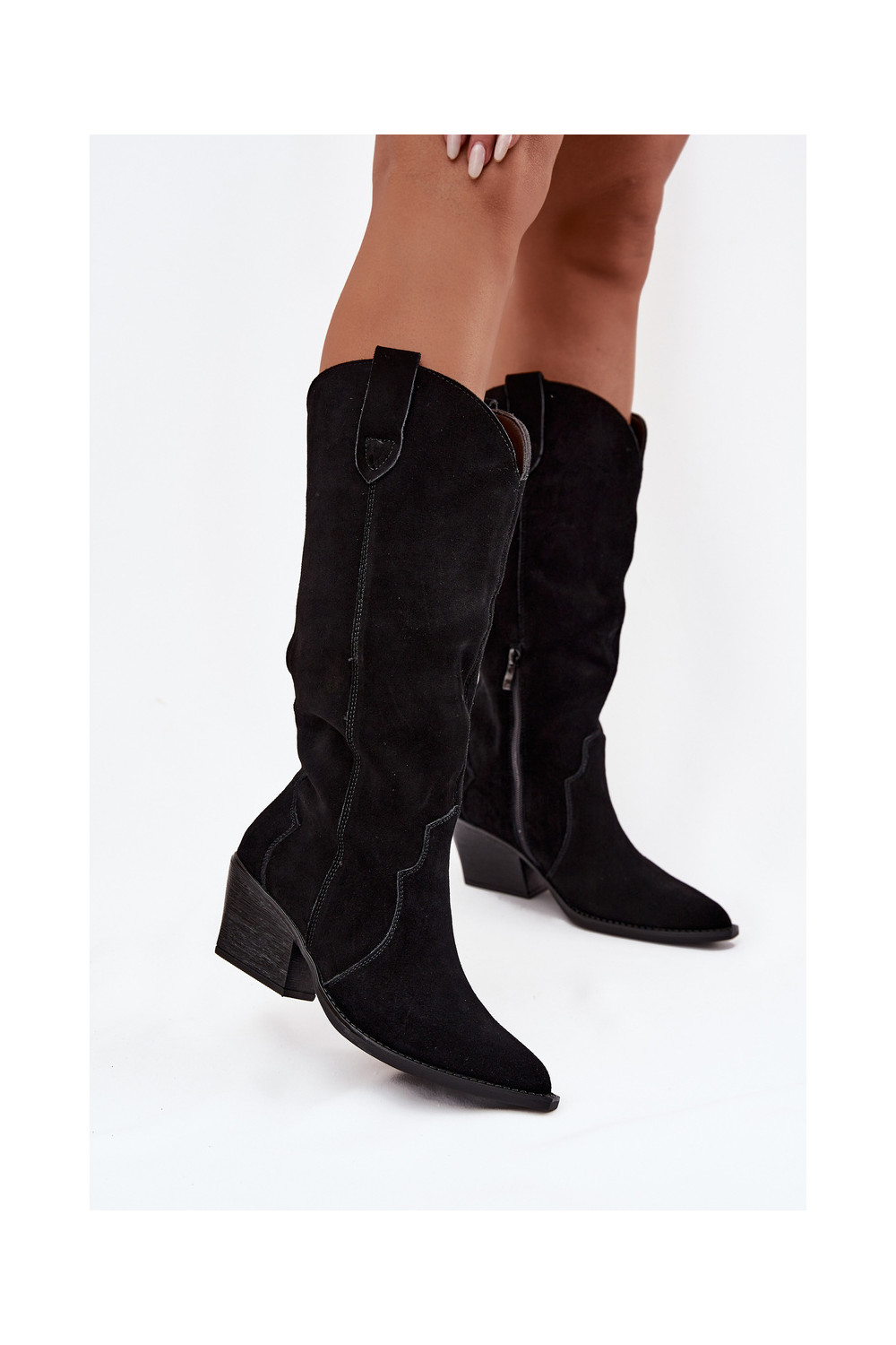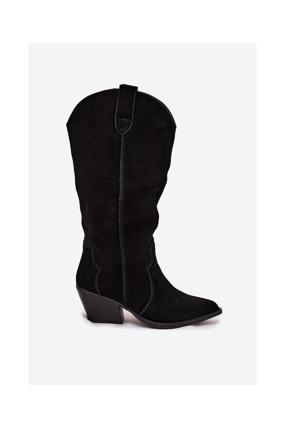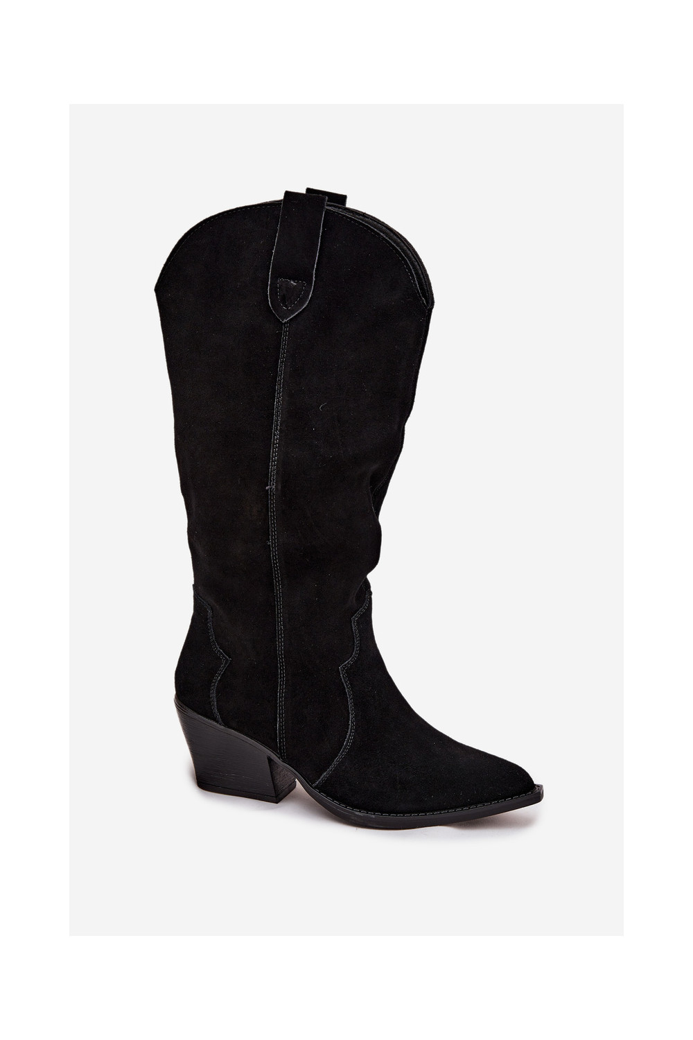 Āda zamšādas garie zābaki Kovboju zābaki Sieviešu siltināti melnas krāsas Urselle