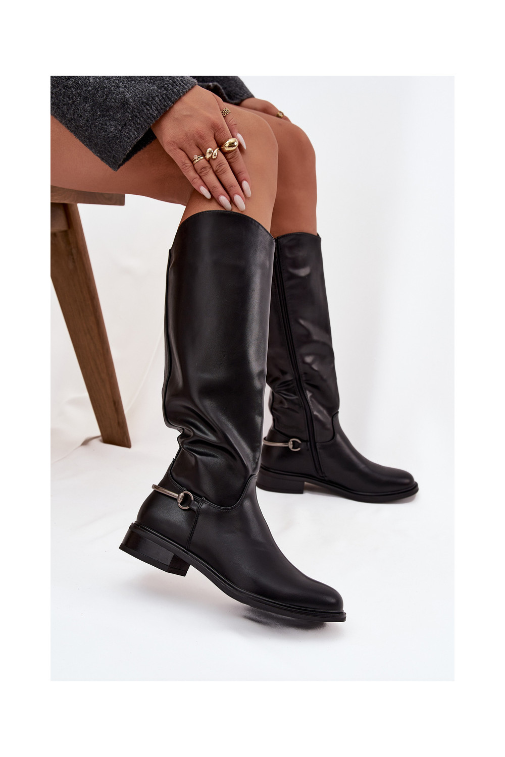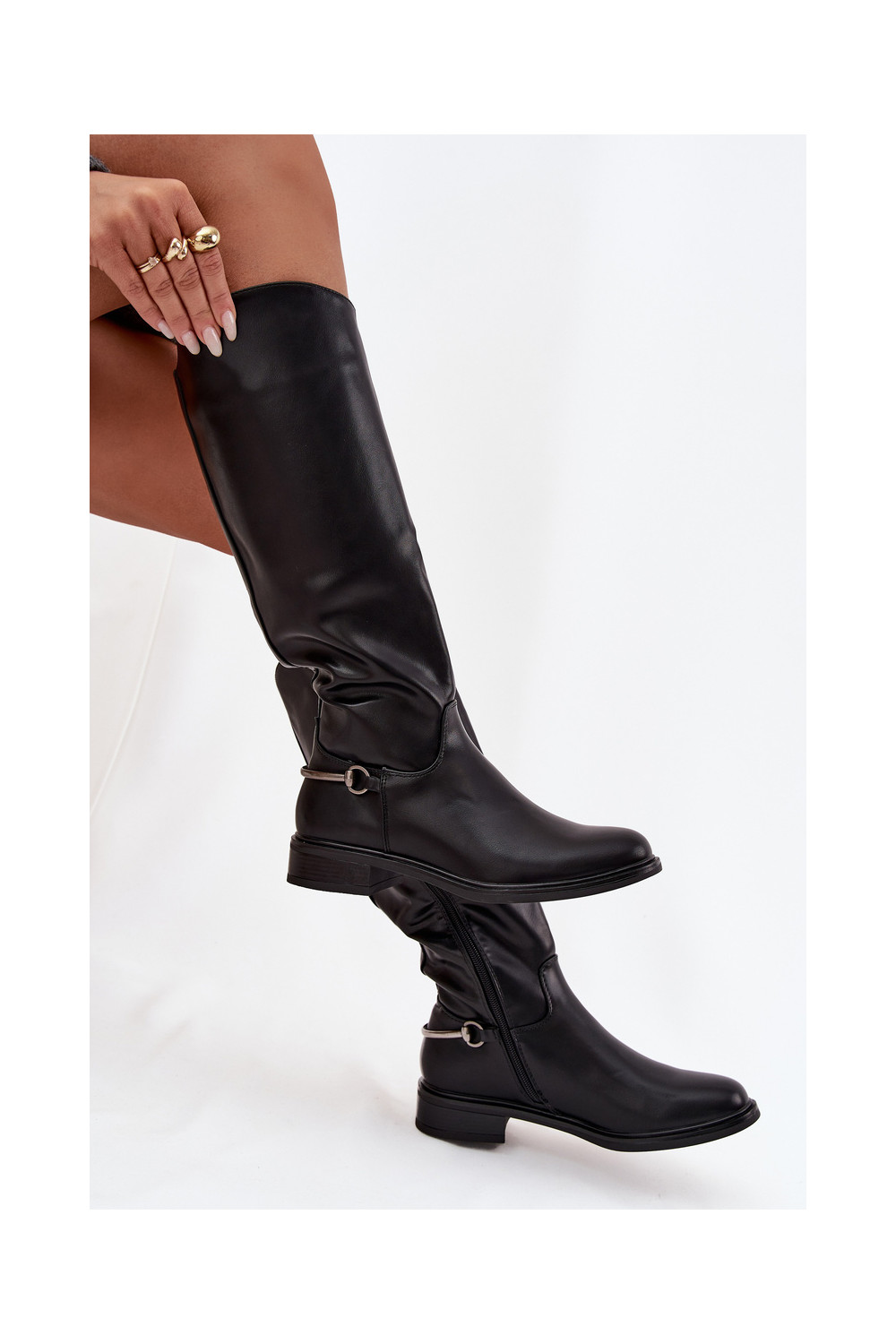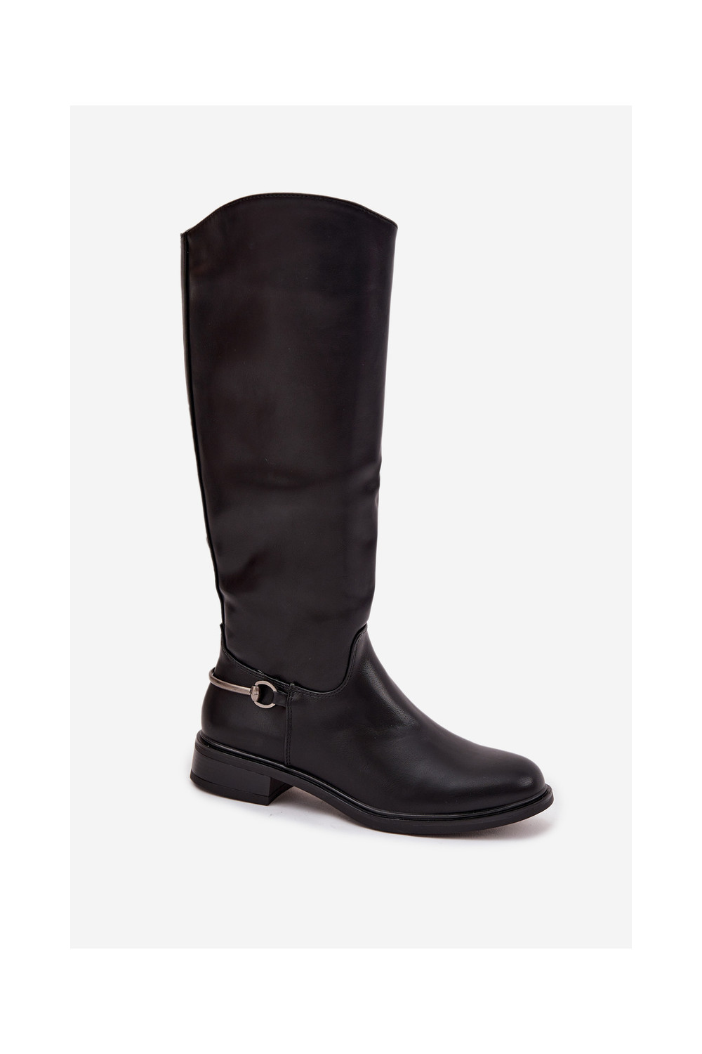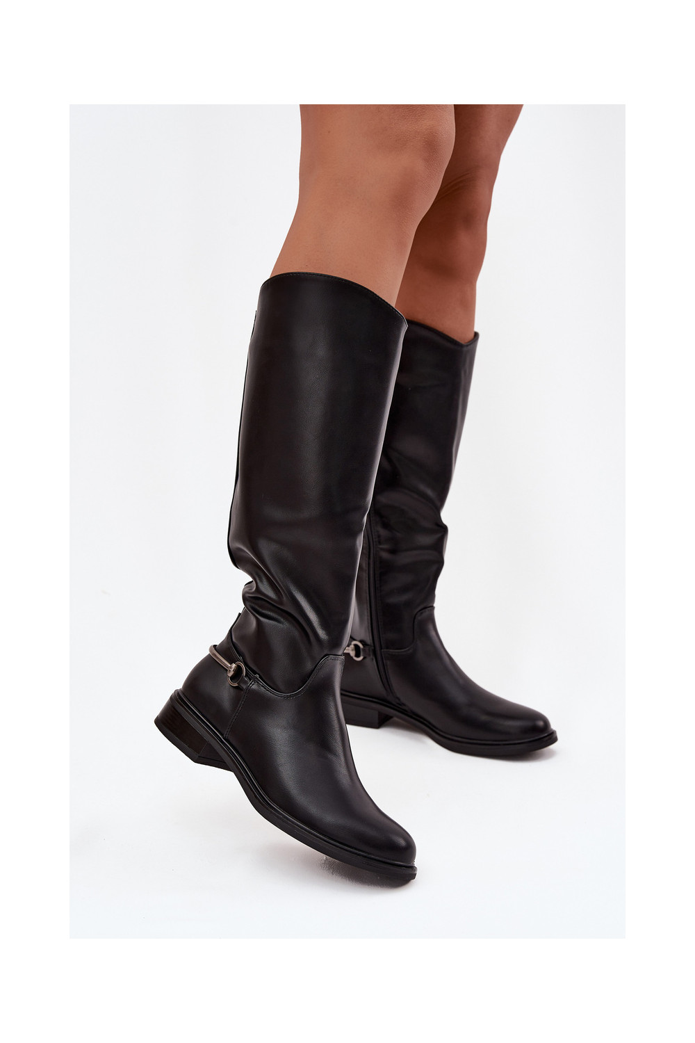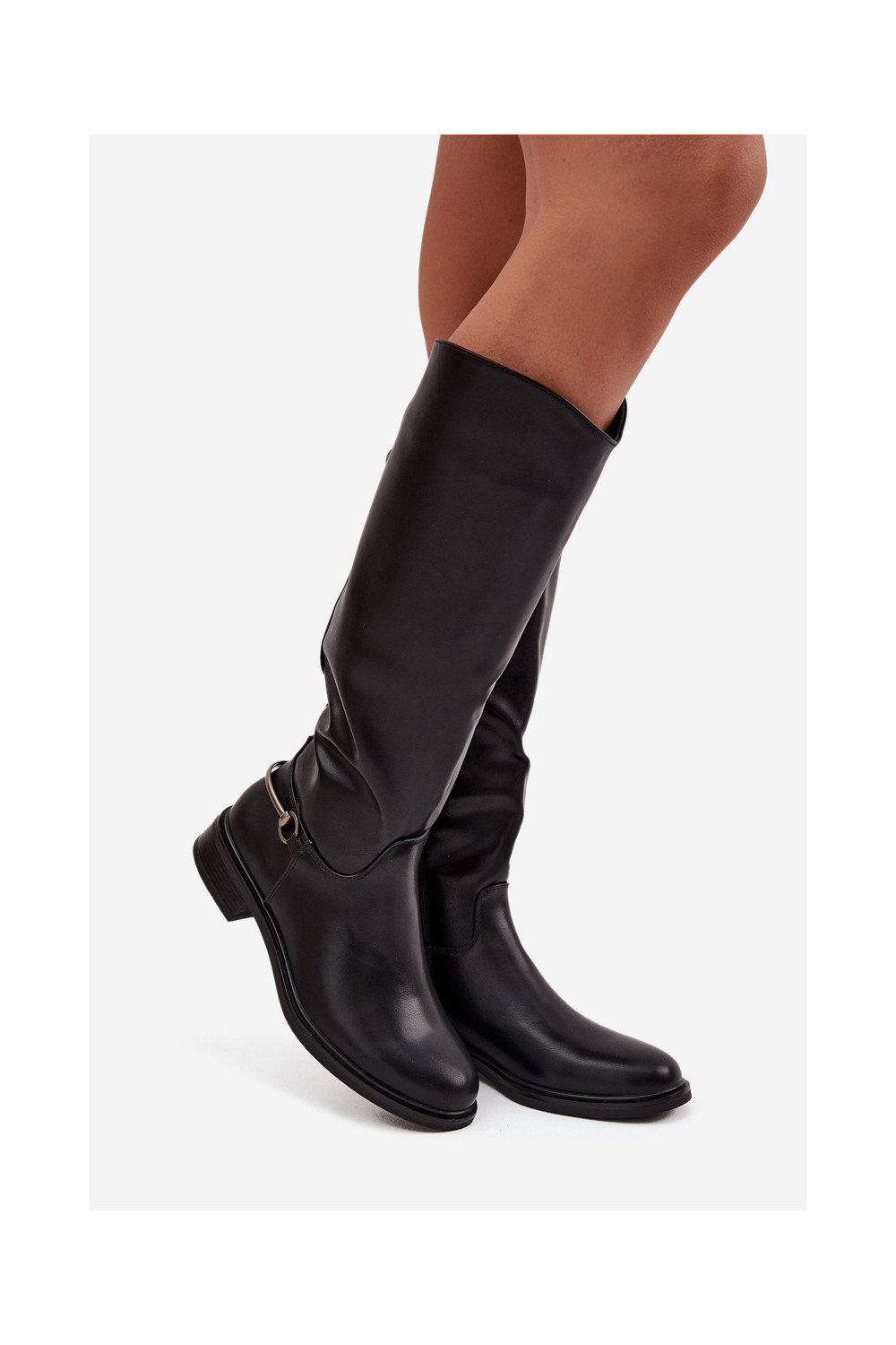 siltināti sieviešu garie zābaki ar platiem papēžiem Ar greznu Detalem melnas krāsas Renaya