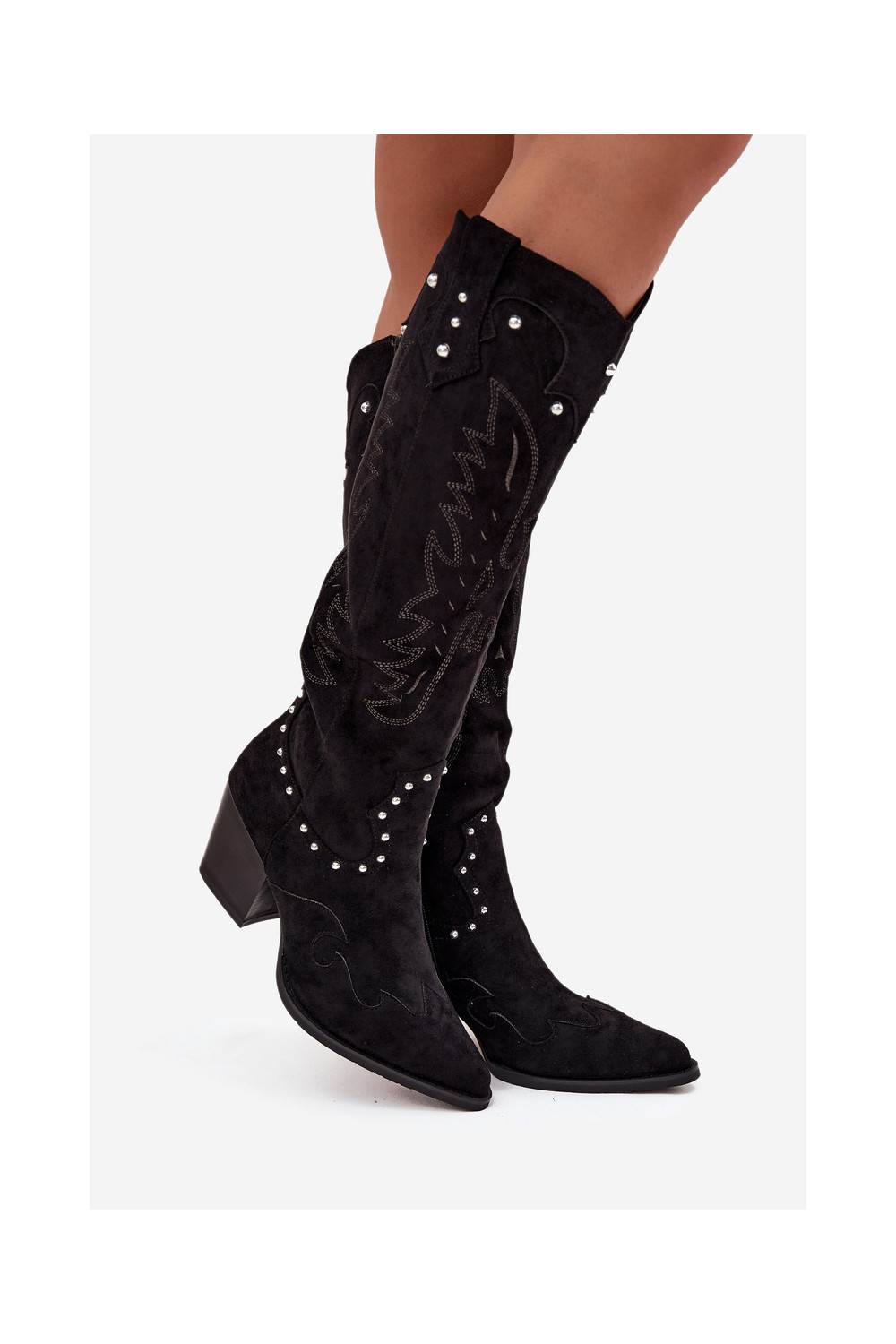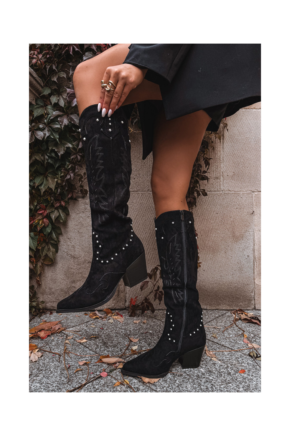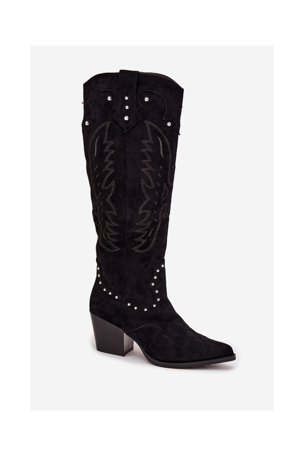 Sieviešu garie zābaki Kovboju zābaki Ar Dekorāciju ar papēdi melnas krāsas Darella
