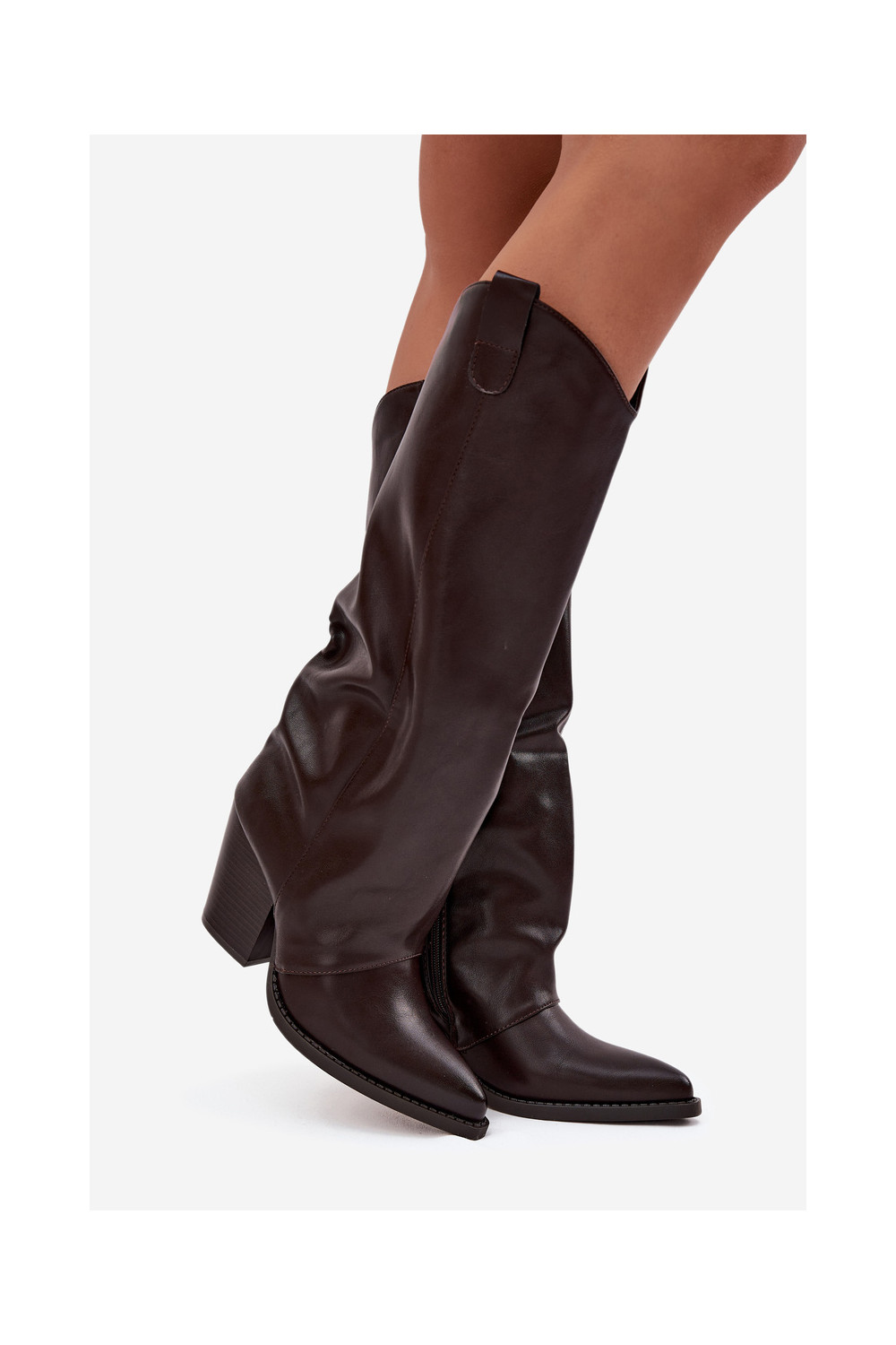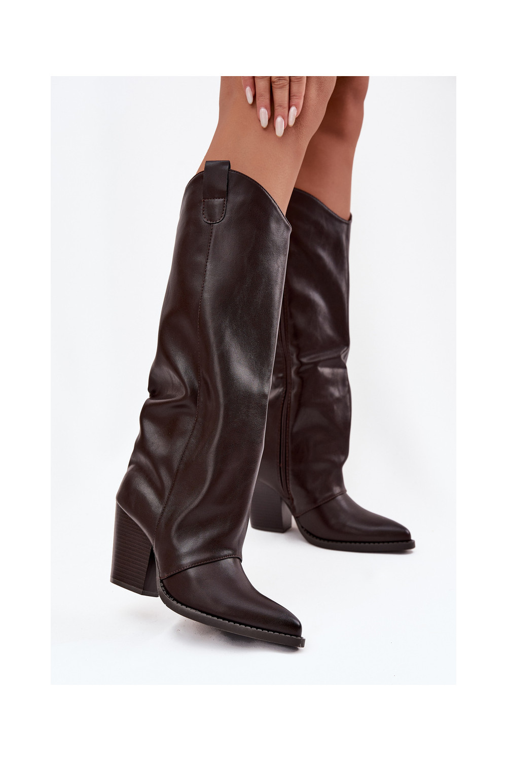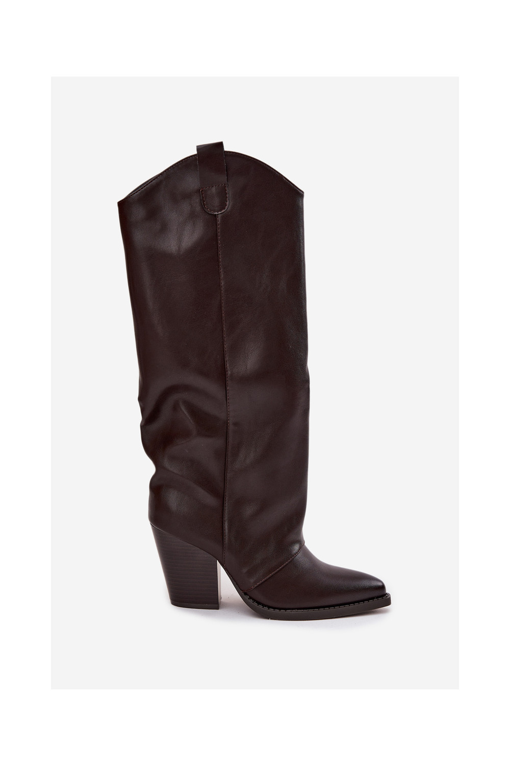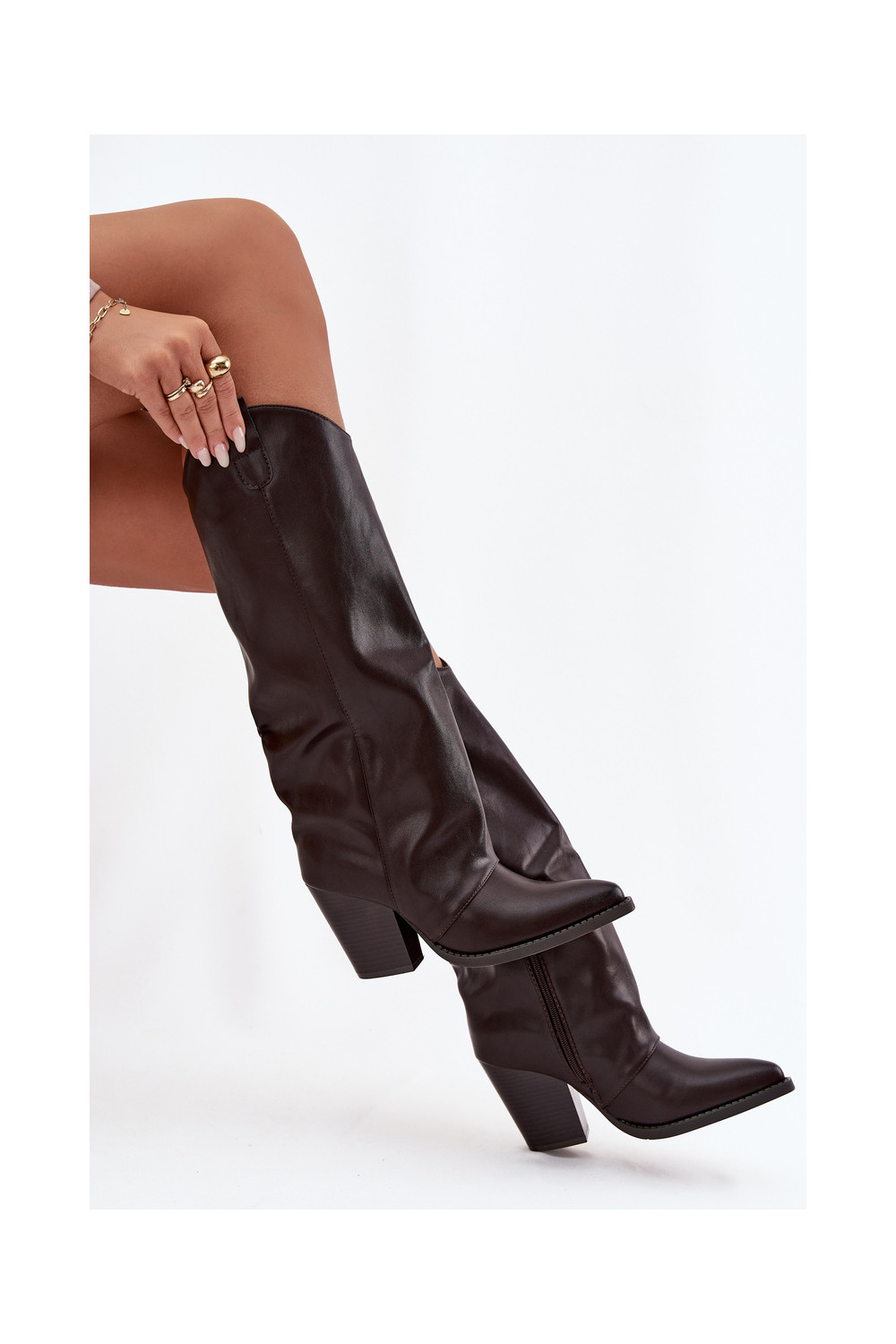 siltināti garie zābaki ar papēdi no eko ādas Czekoladowe Mavine