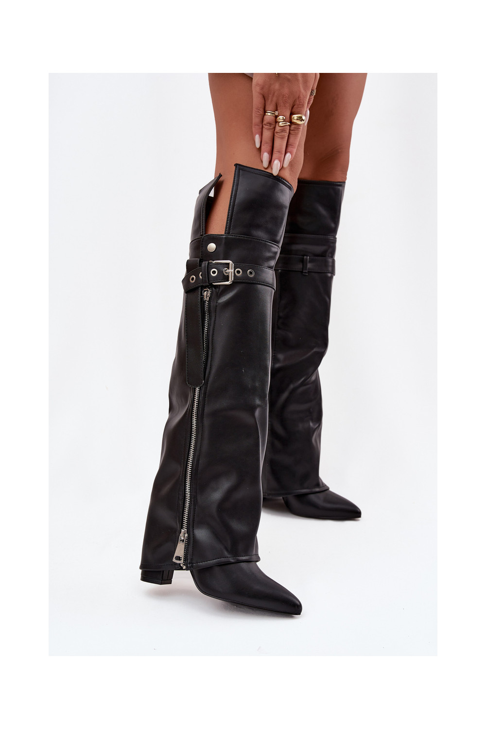 siltināti sieviešu garie zābaki ar papēdi ar siksniņām ar sprādzēm I Sudraba krāsasm Zamkiem Melns Reisa
