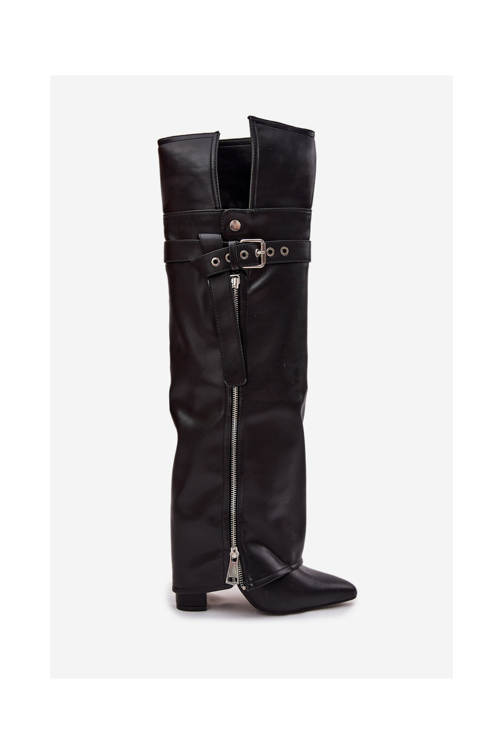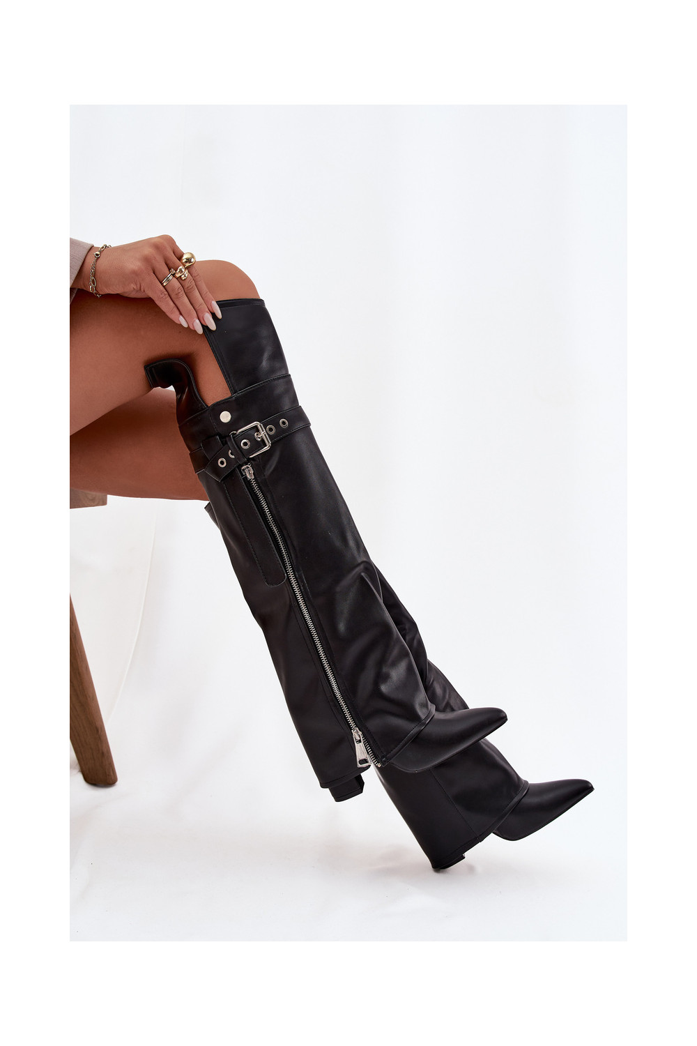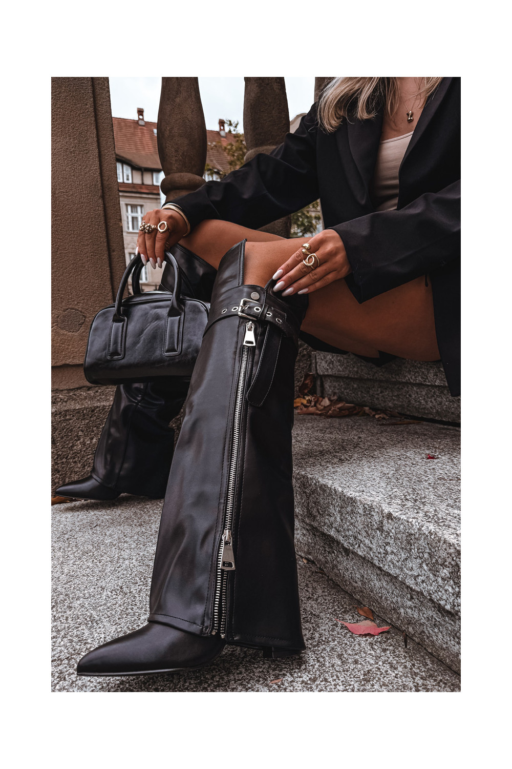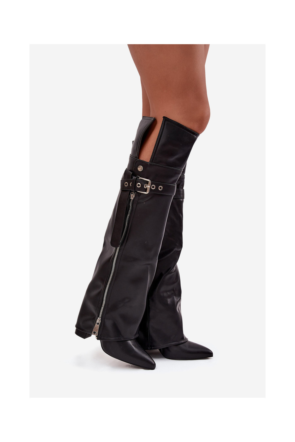 siltināti sieviešu garie zābaki Par ceļgalu ar papēdi ar siksniņām ar sprādzēm I Sudraba krāsasm Zamkiem melnas krāsas Reisa