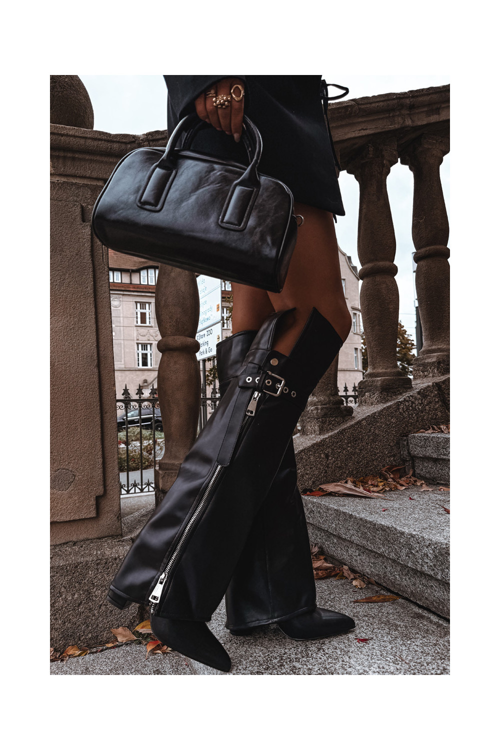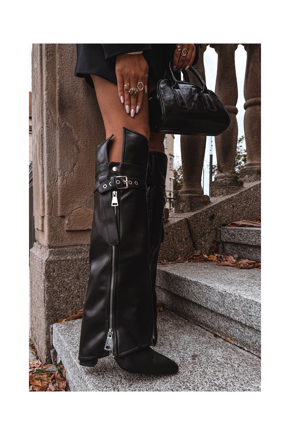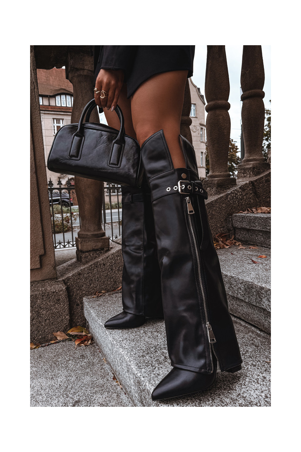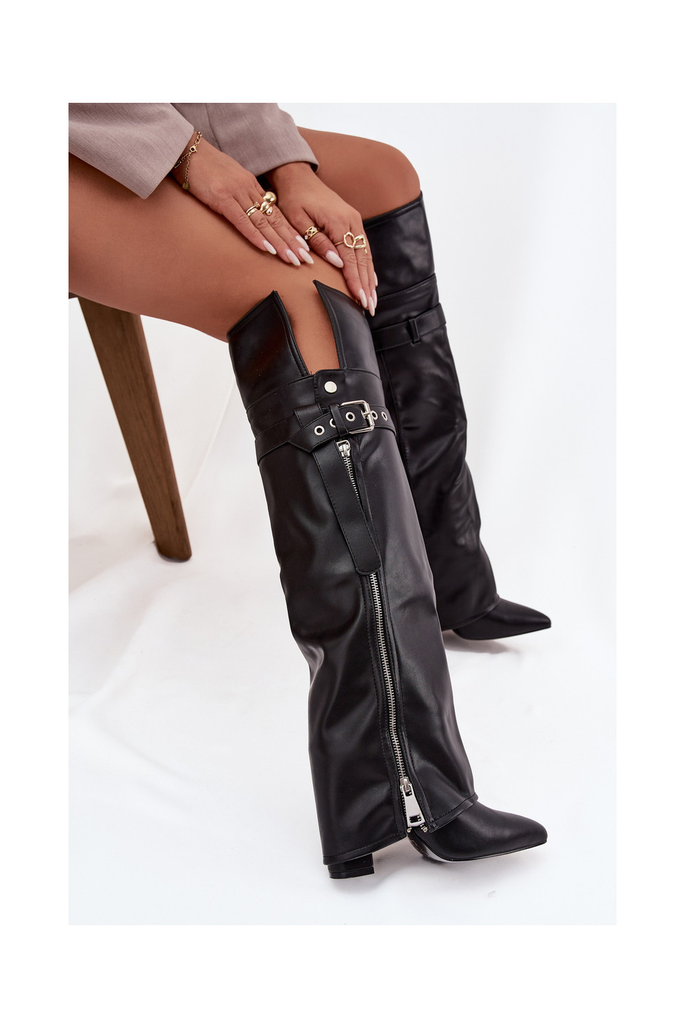 siltināti sieviešu garie zābaki Par ceļgalu ar papēdi ar siksniņām ar sprādzēm I Sudraba krāsasm Zamkiem melnas krāsas Reisa