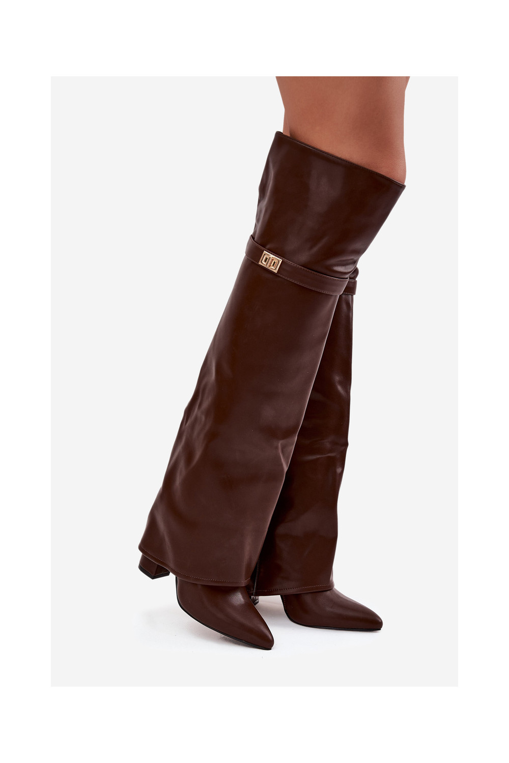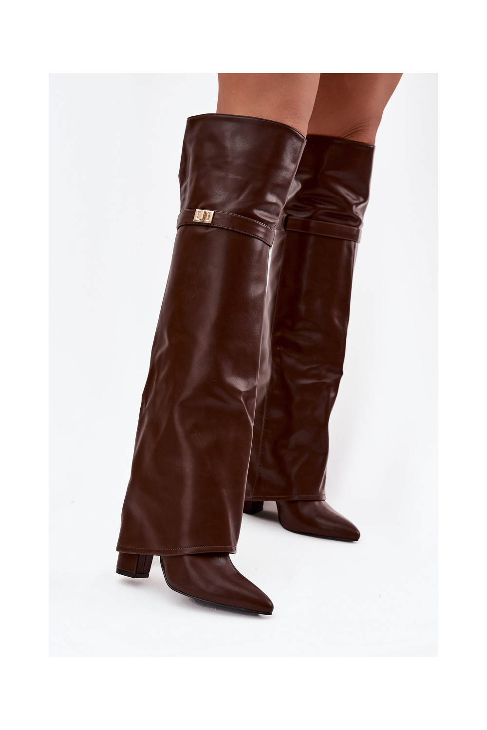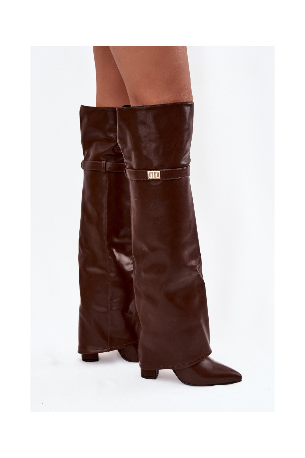 siltināti garie zābaki Z Wywiniętą Cholewką Obcas Słupek brūnas krāsas Serelle