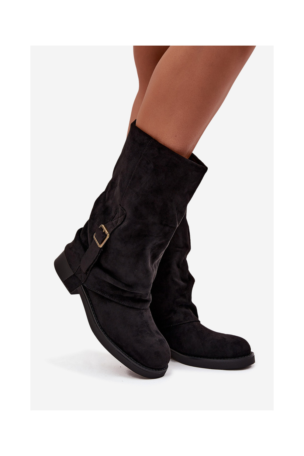 sieviešu garie zābaki Z Wywiniętą Cholewką  ar sprādzēm Melns Minelle